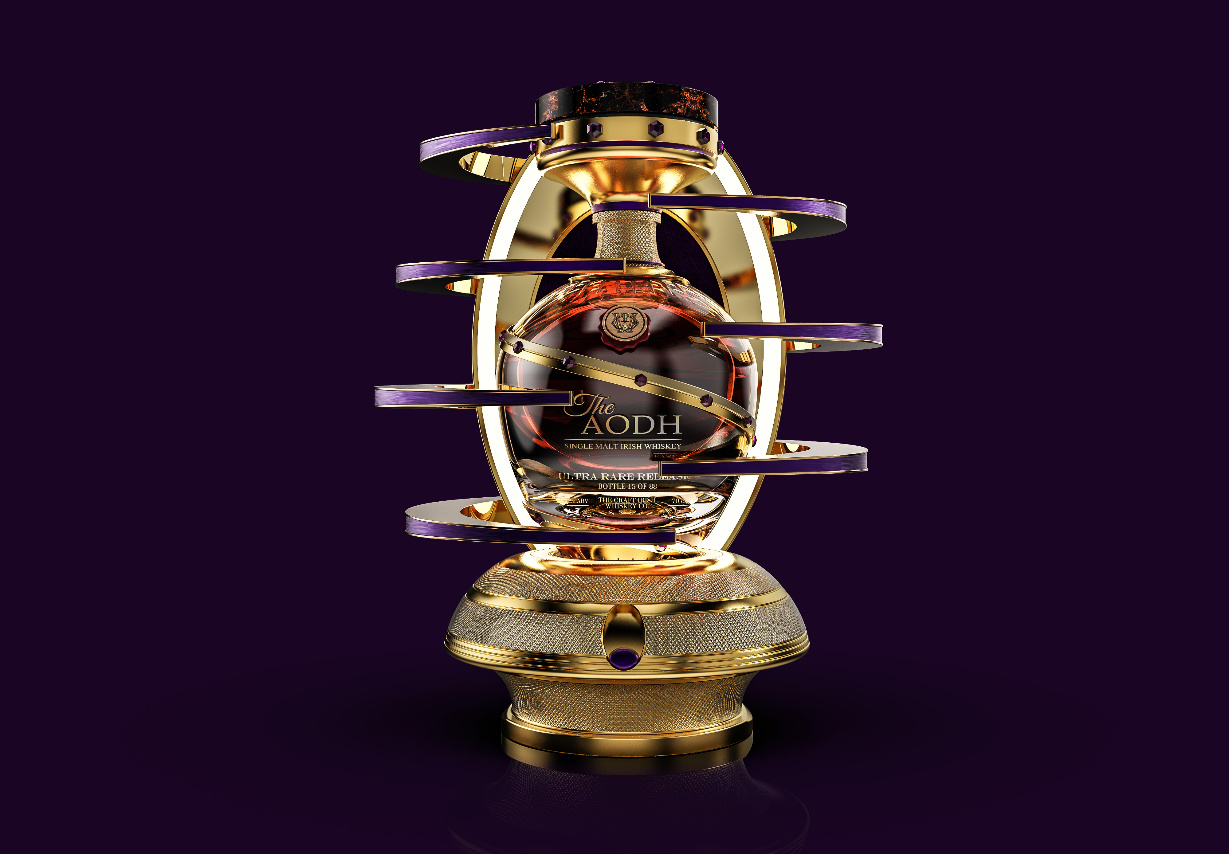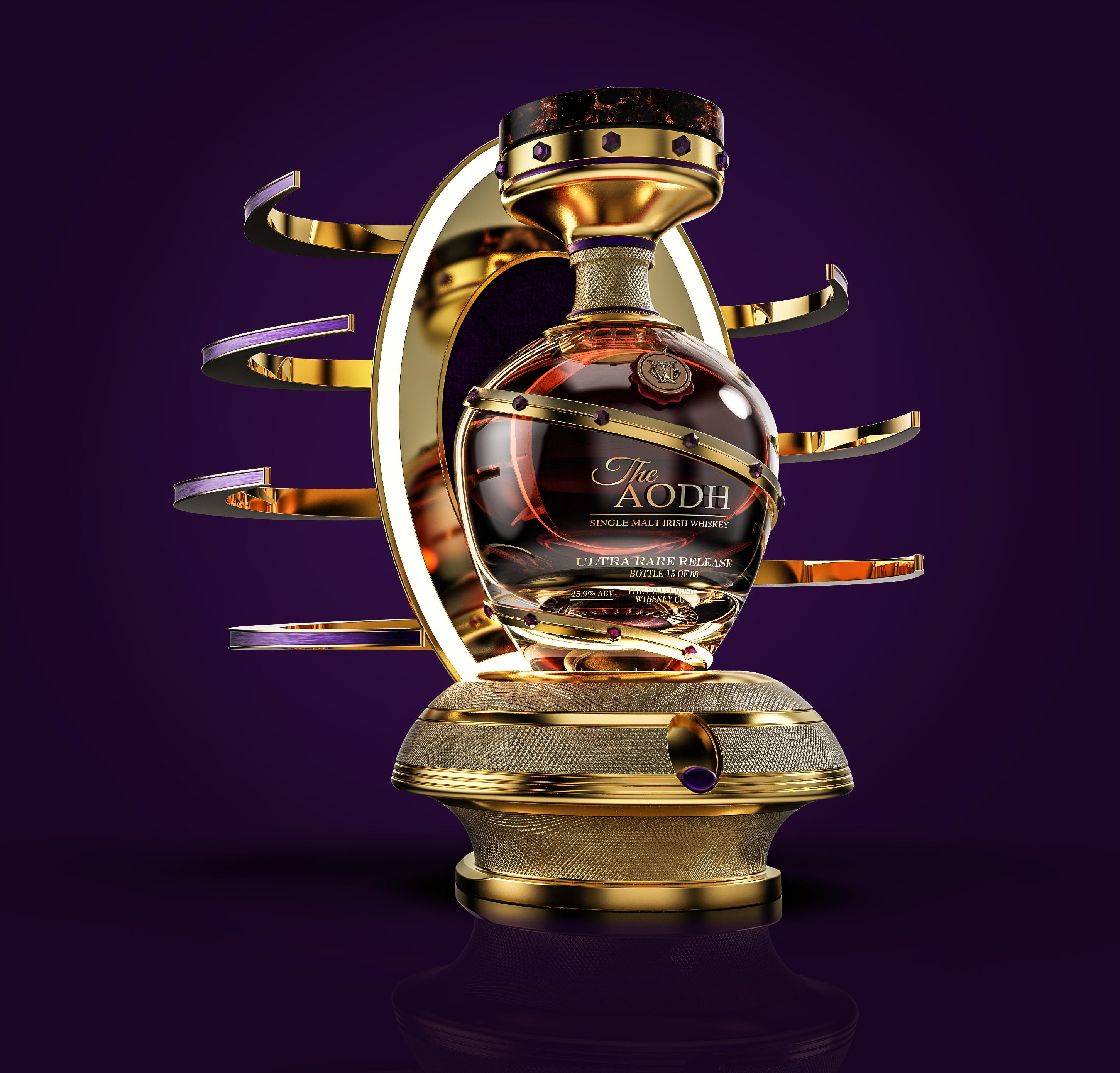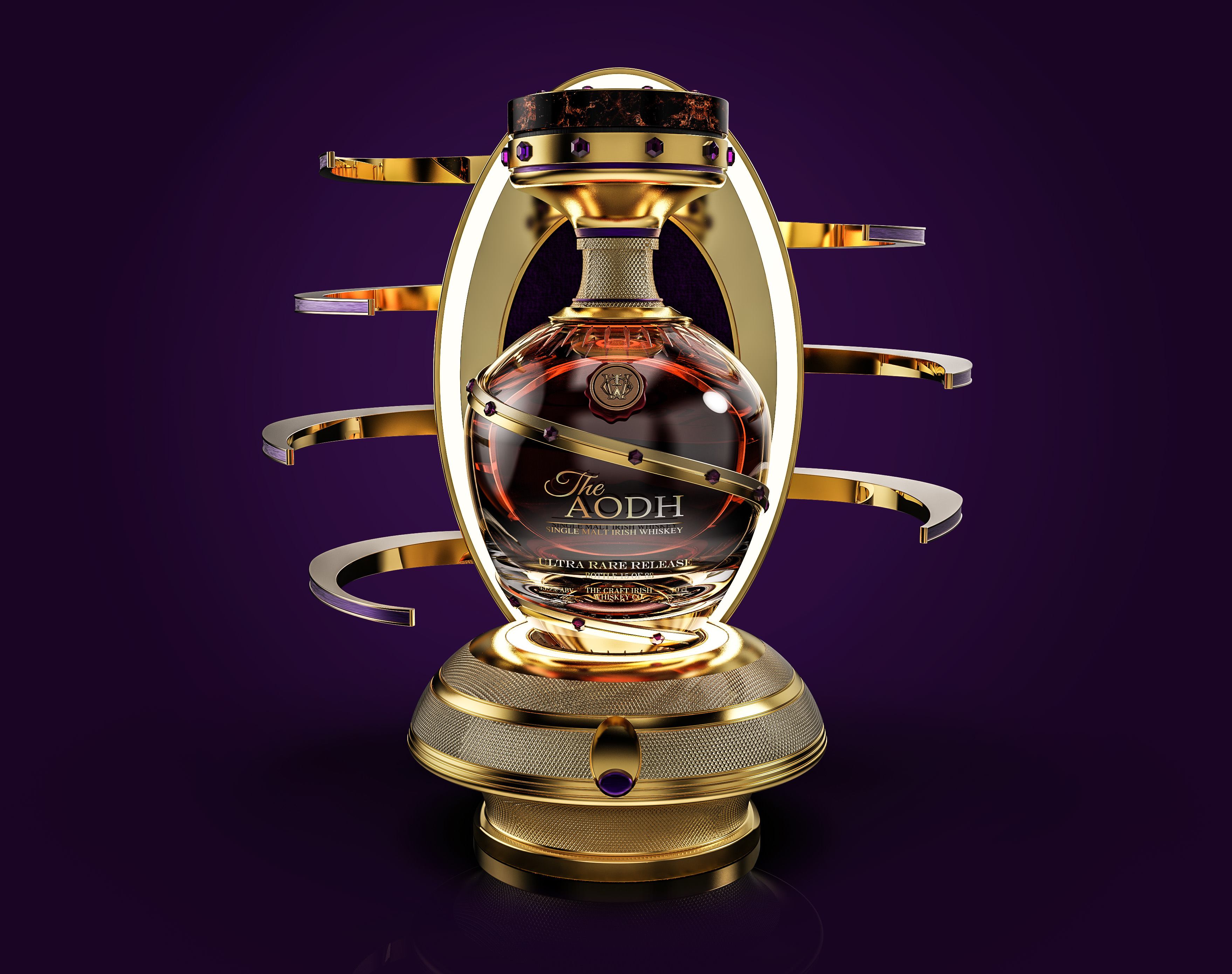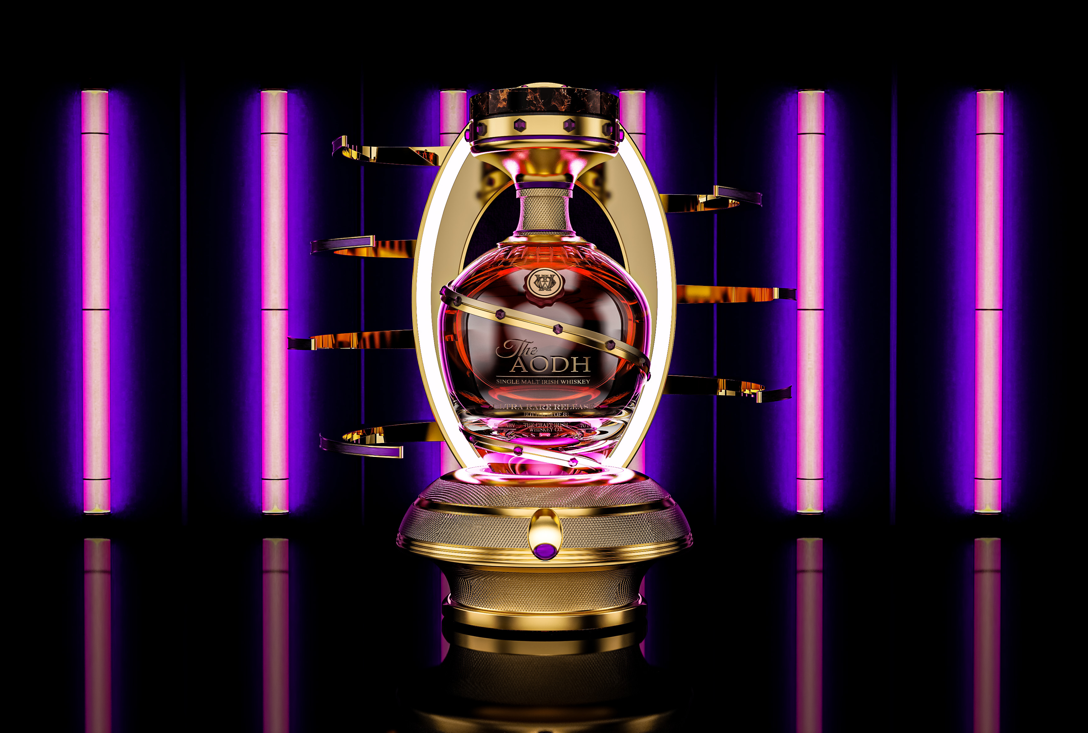 Personal and meaningful, The Aodh’s bottle is held in an innovative electronic exo-display unit - the ultimate vessel of desirability and mythology.