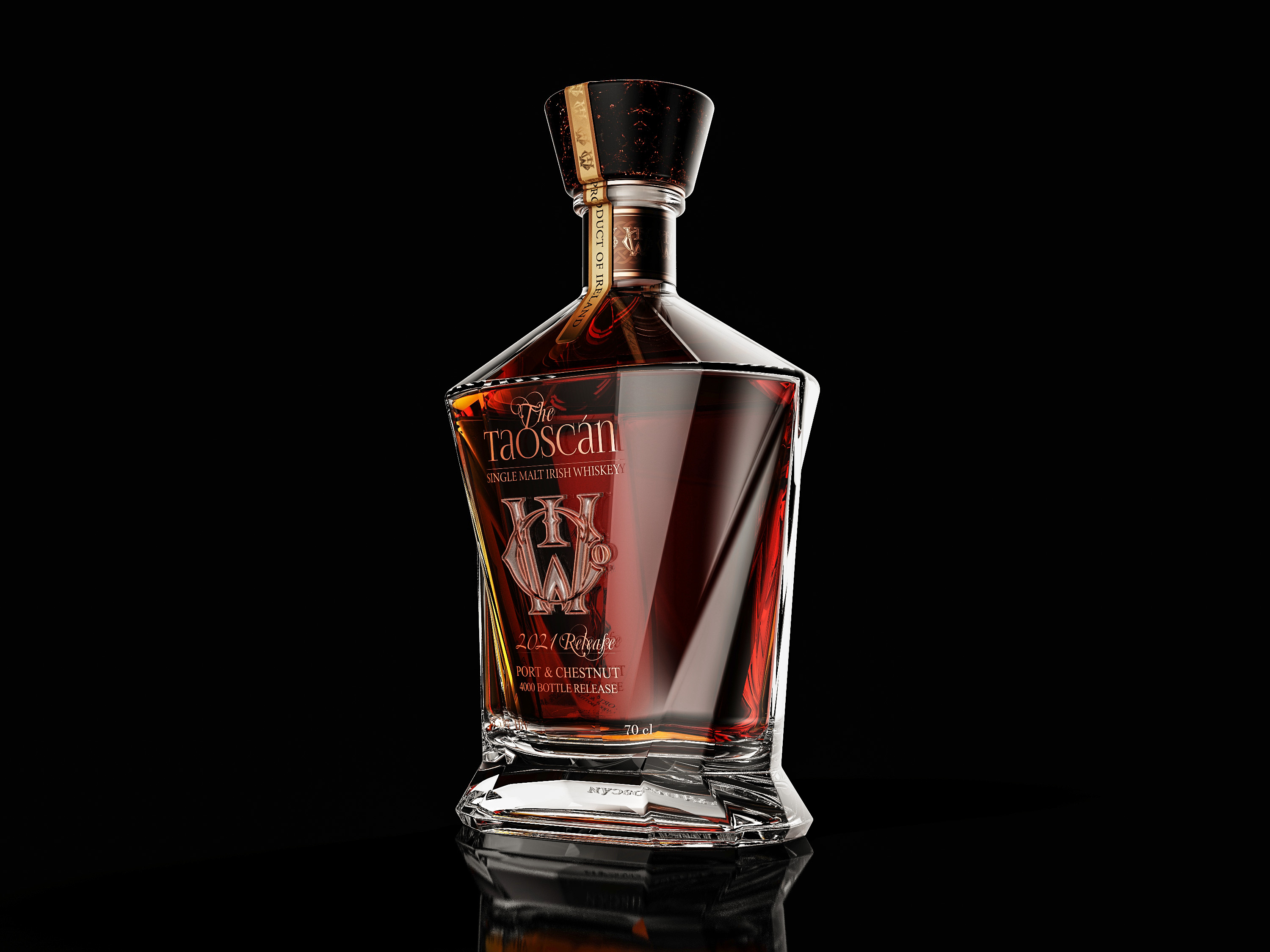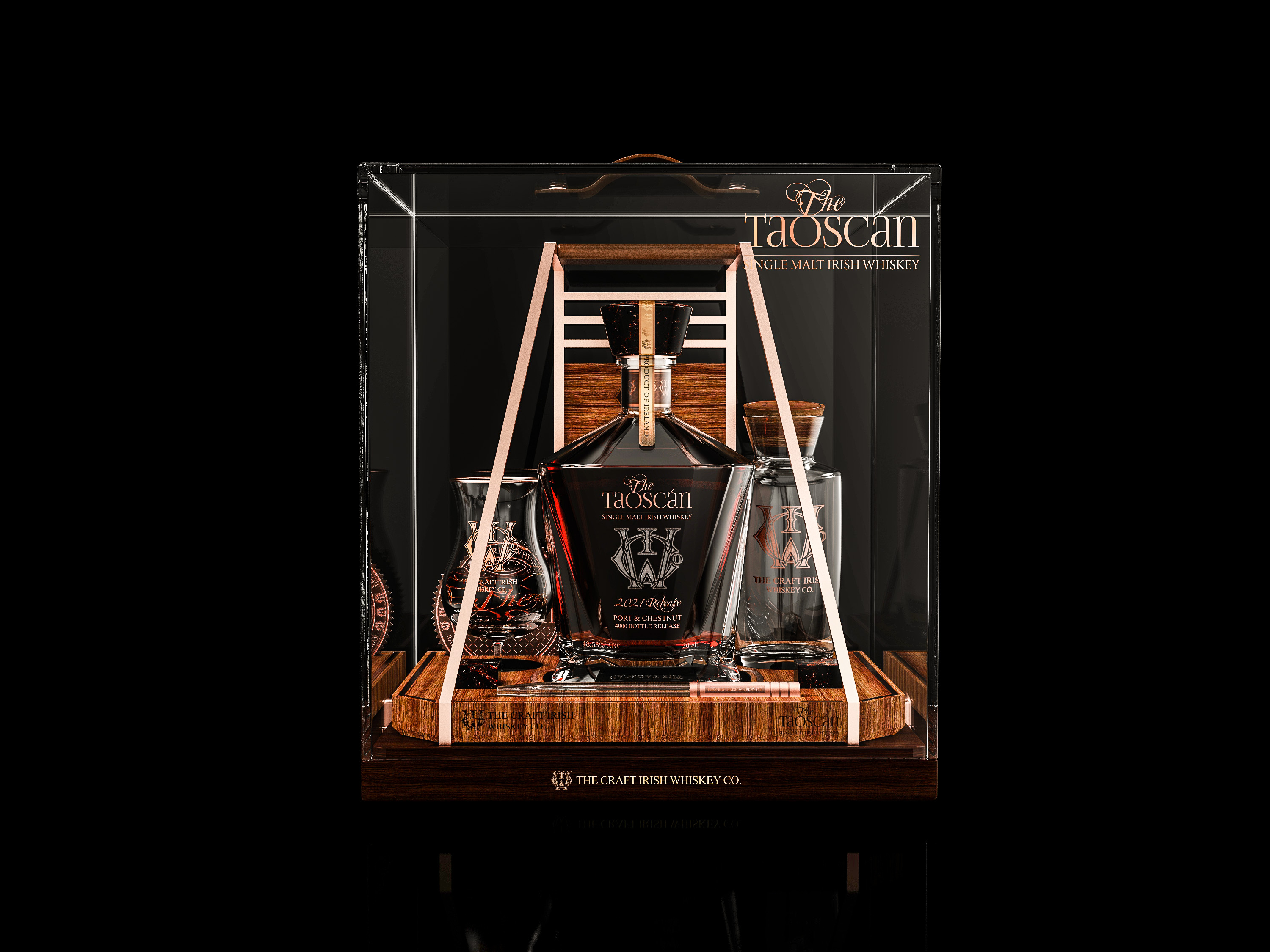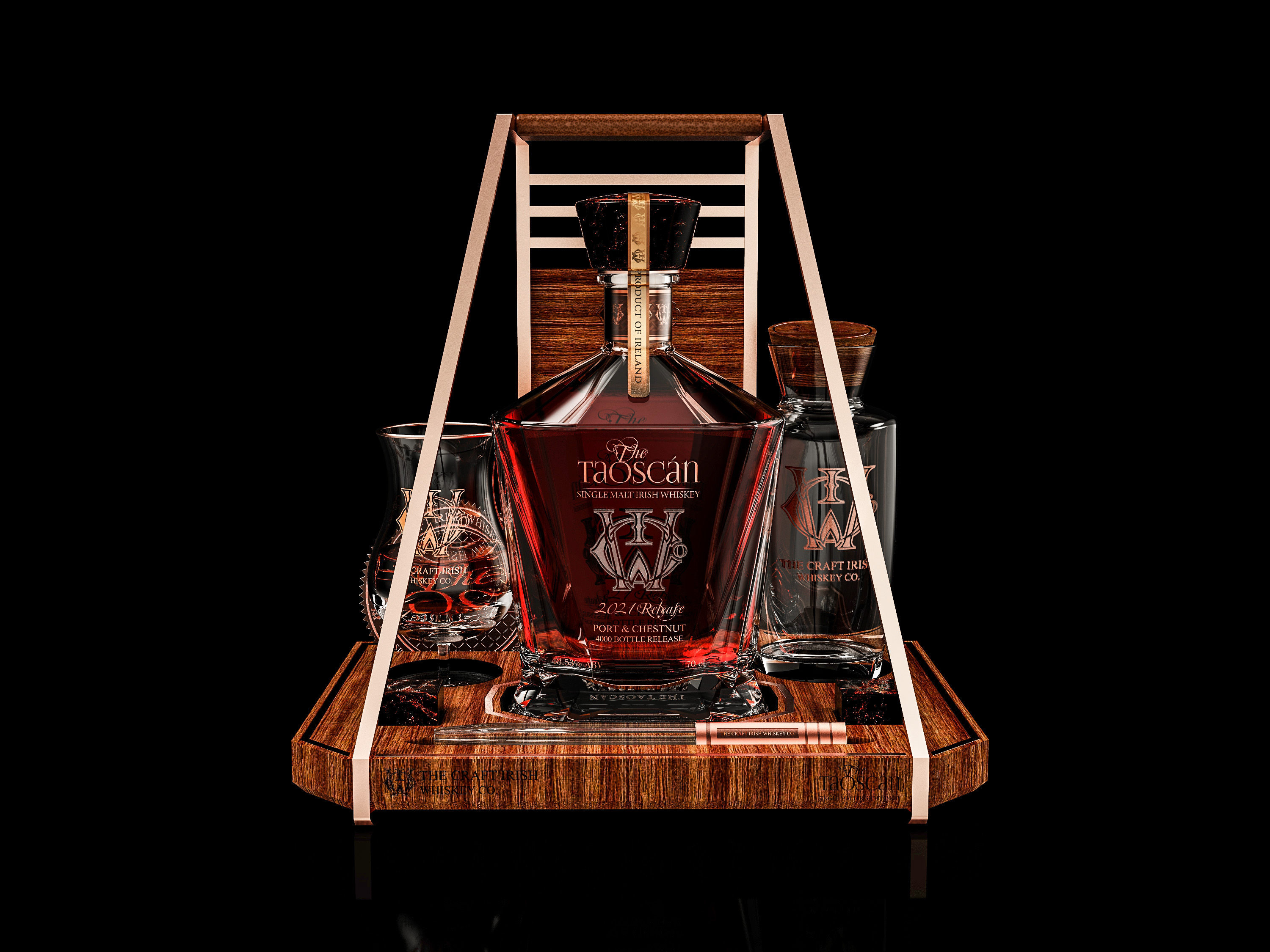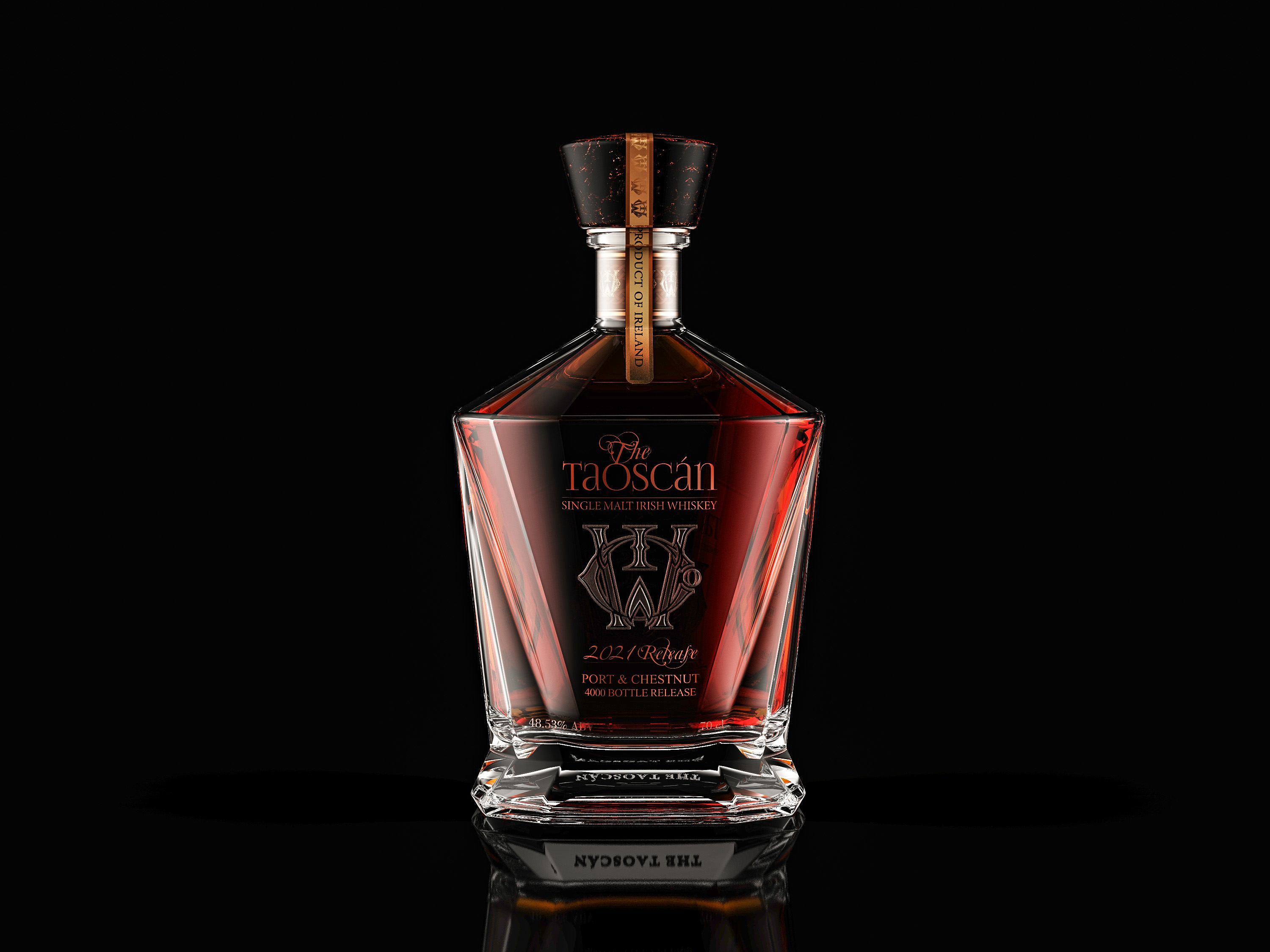 The world’s first whiskey to be finished in Port & Chestnut, The Taoscán is a showstopping single malt, destined to restore Irish whiskey to a world stage in a rare, limited-edition release of just 4,000 bottles.