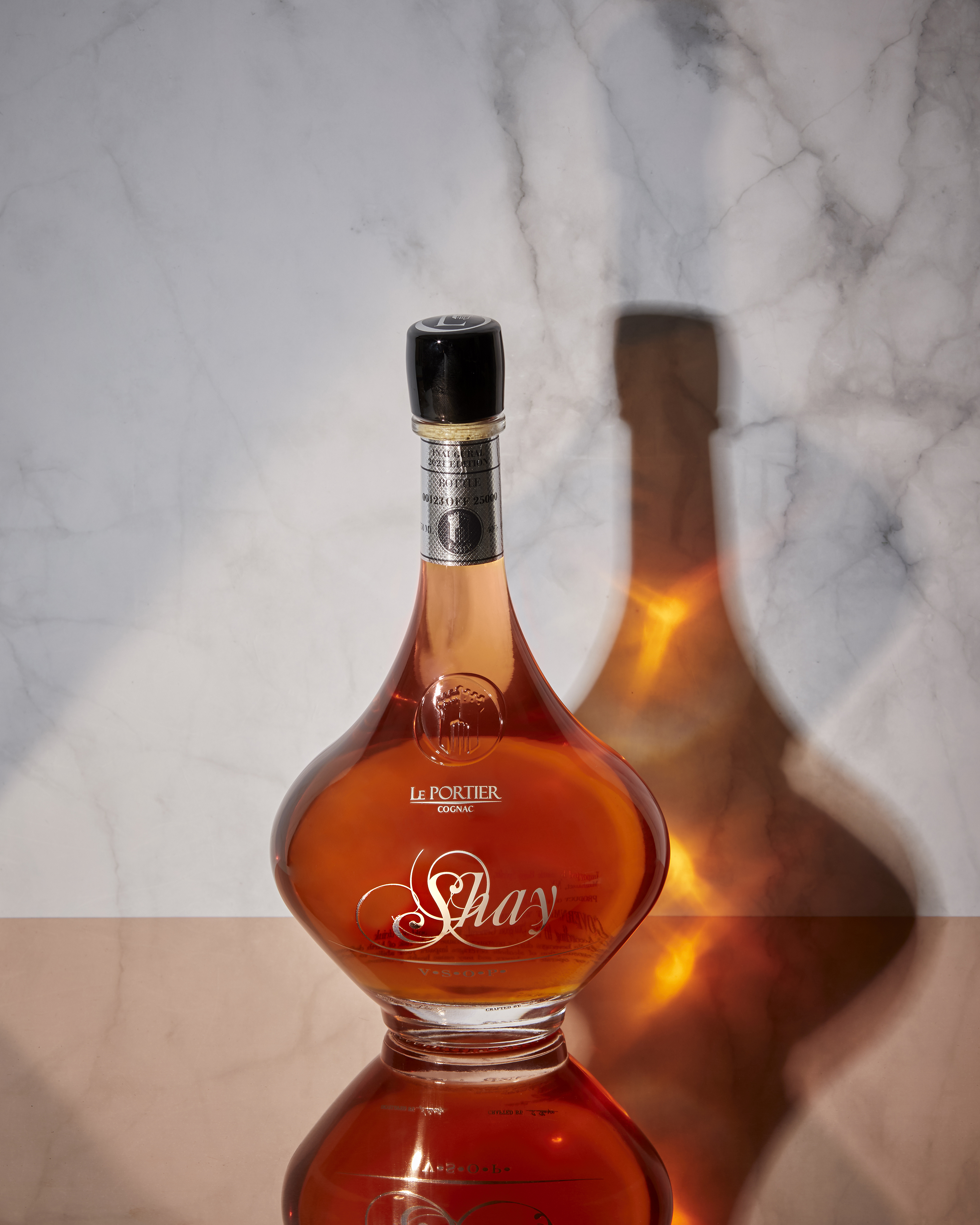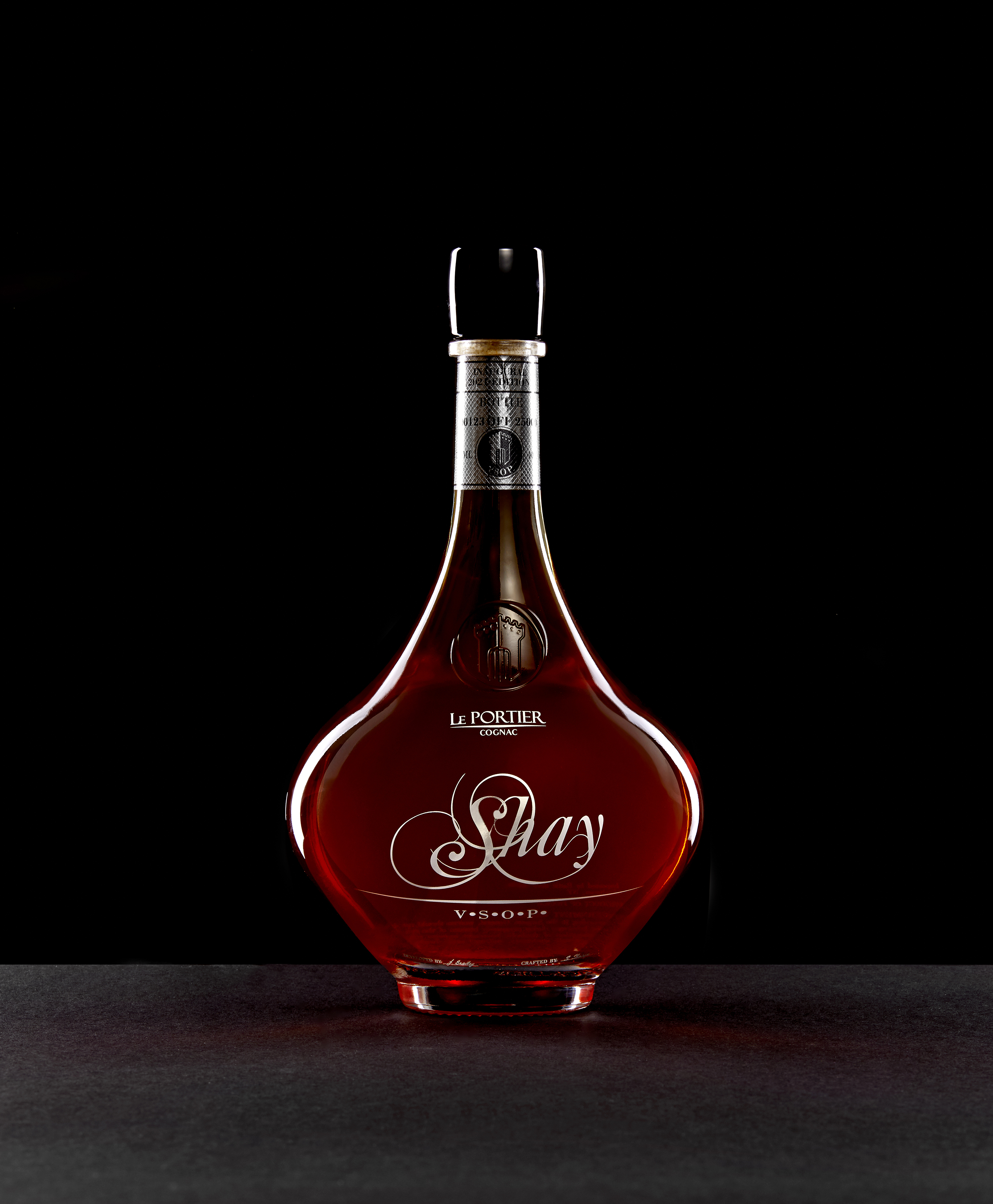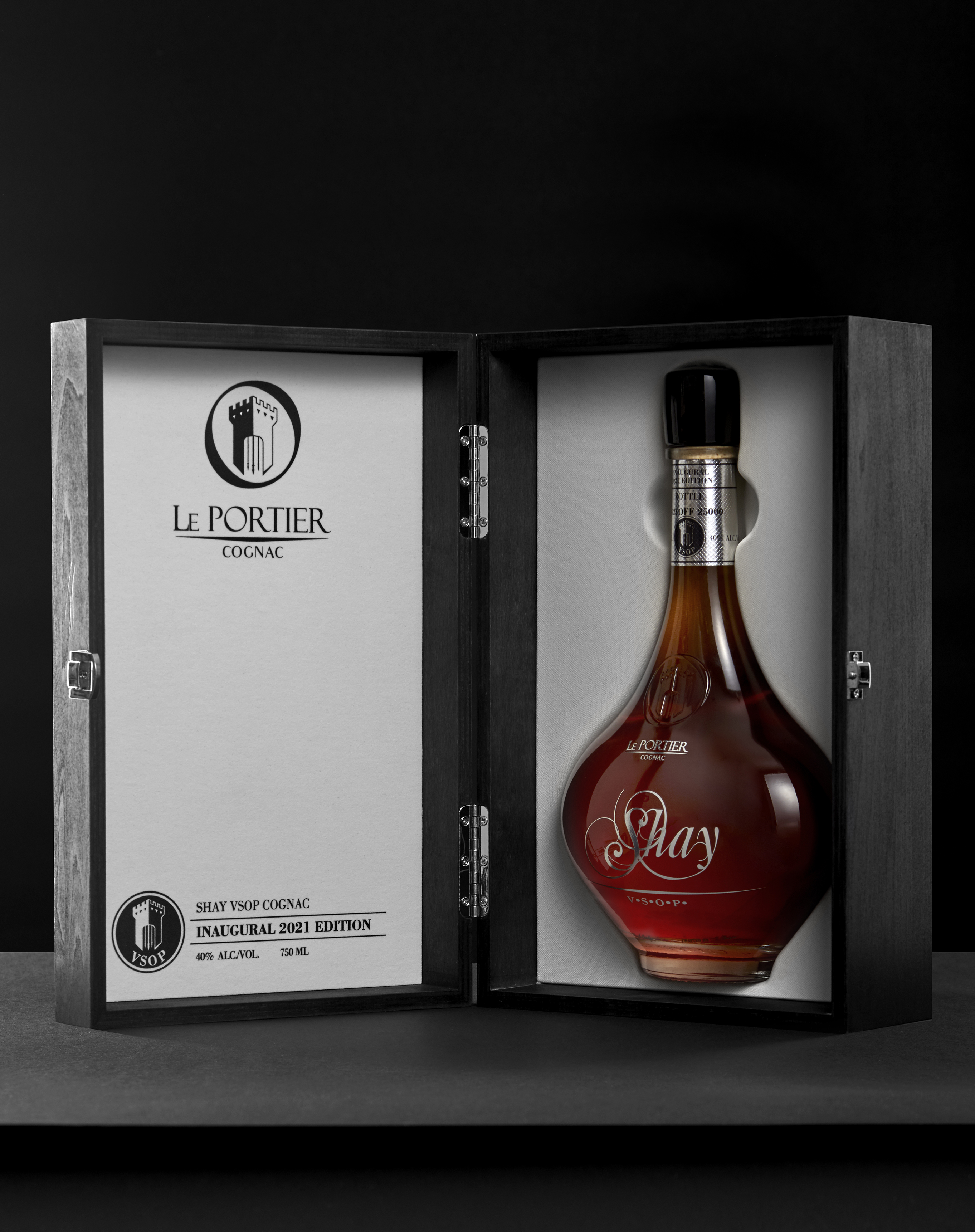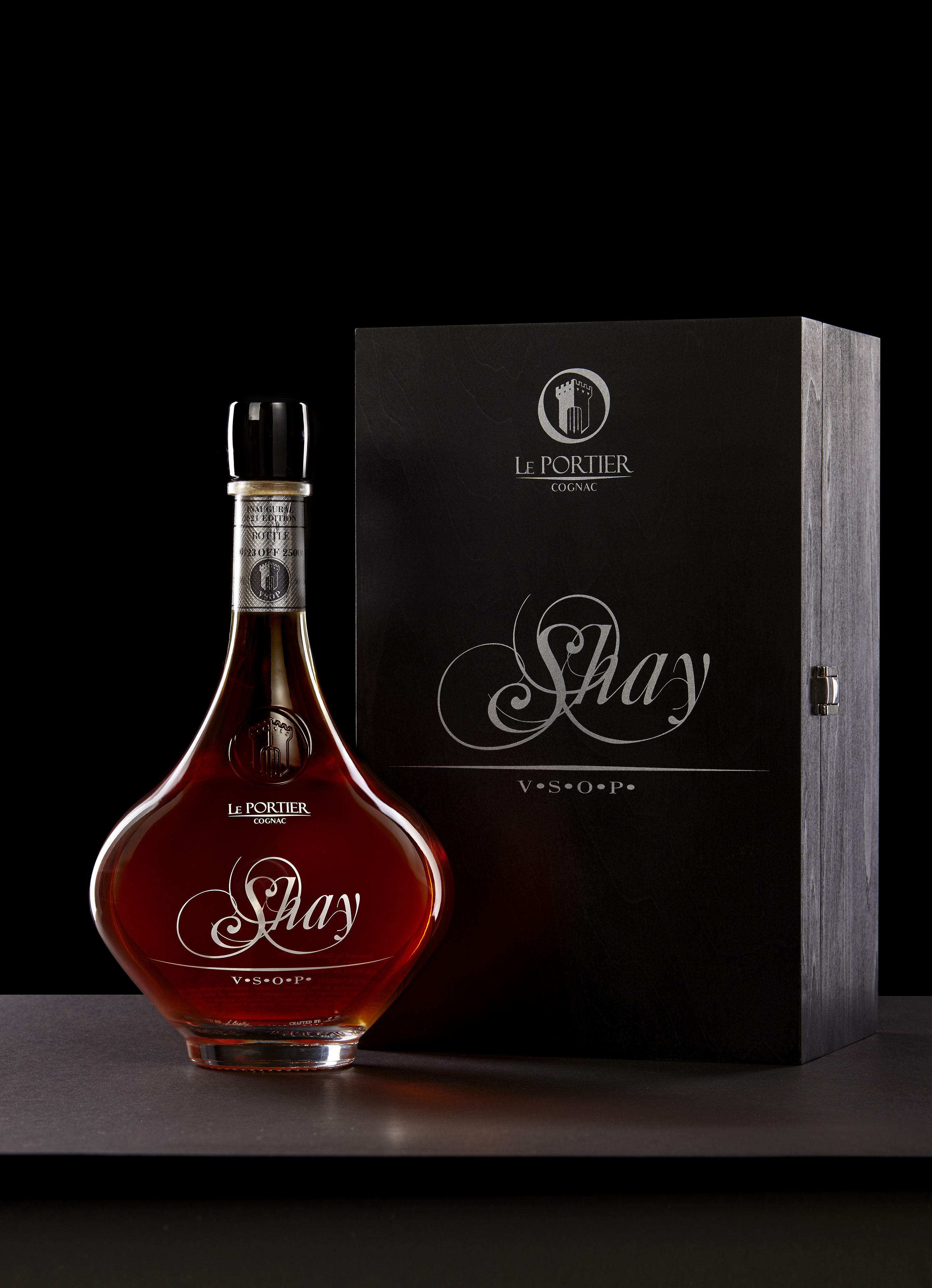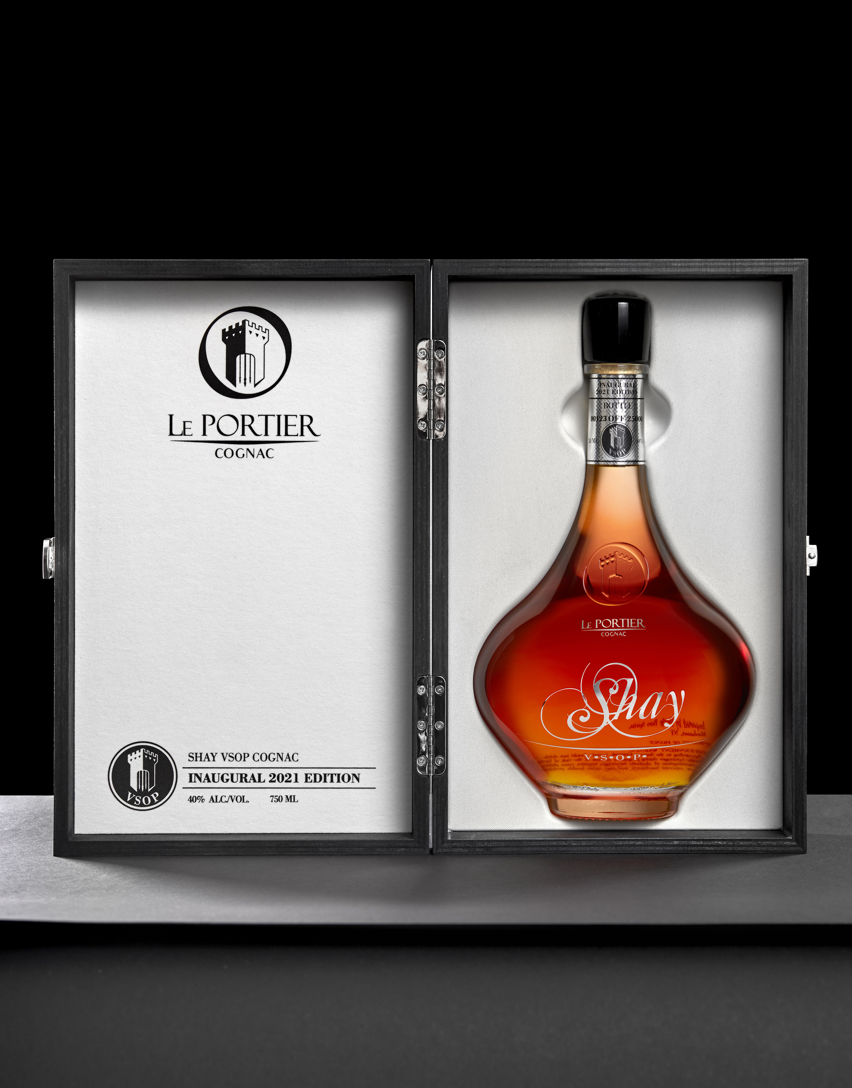 Shay is the first product for the new Cognac brand Le Portier, and gathers a combination of the classic cognac heritage with a contemporary approach, culminating in a beautiful bespoke bottle with black obsidian and a black-tinted luxurious box.