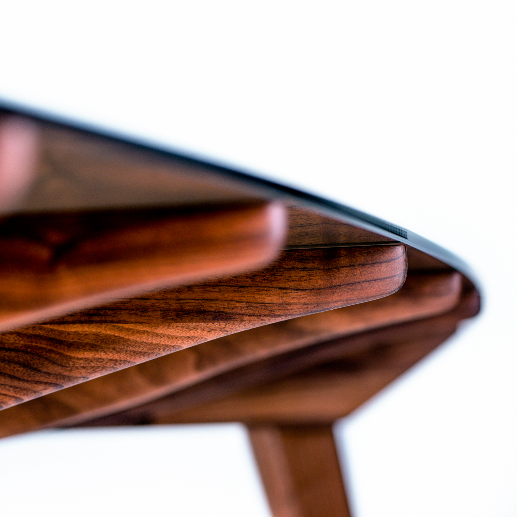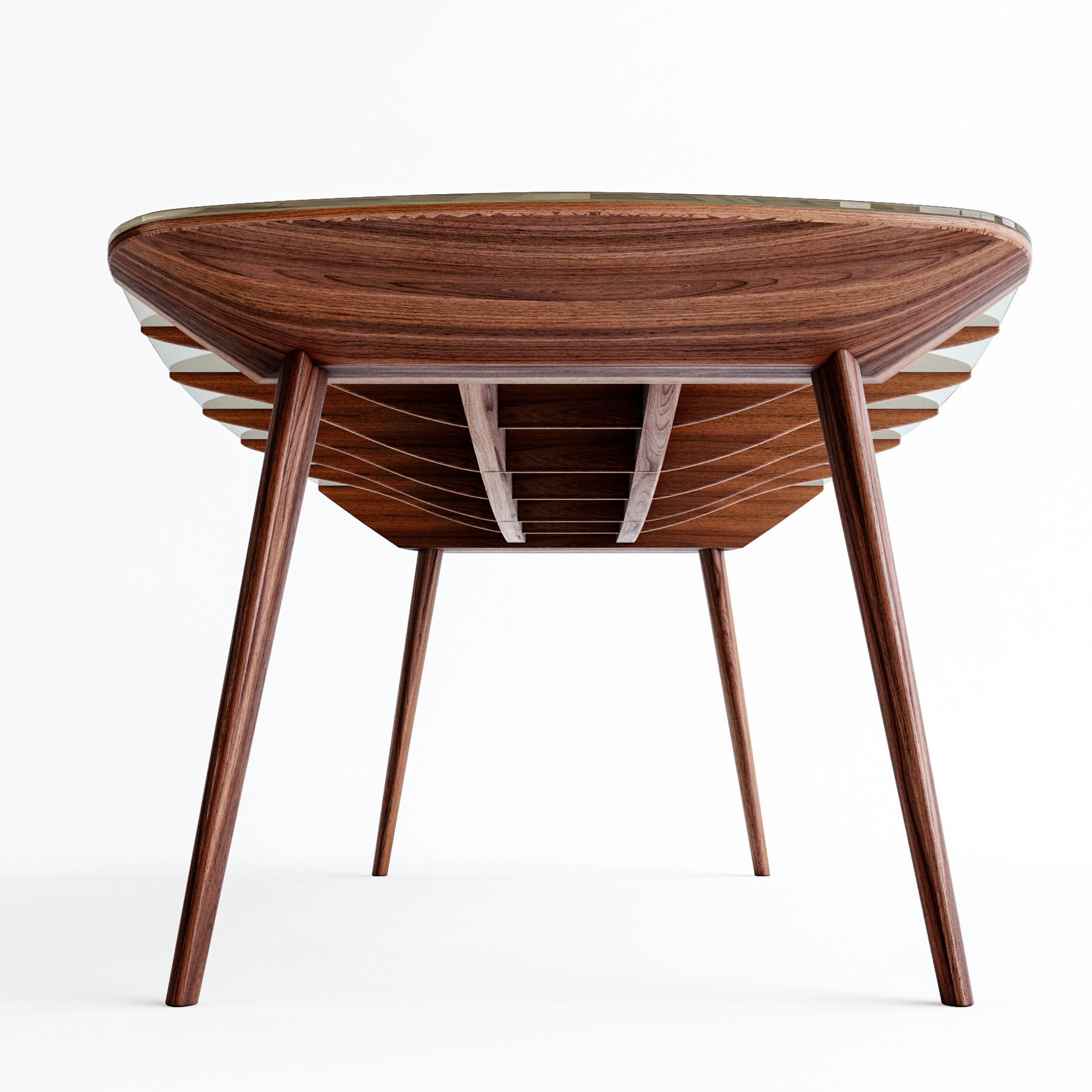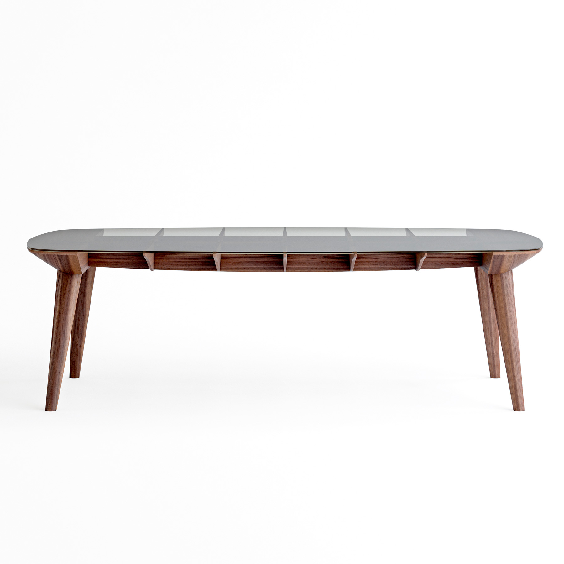 Inspired by the structure of leaves (Herringbone) and by the desire to eliminate what is superfluous, the internal structure of the table and its simple and beautiful silhouette is all exposed to the lovers of this type of construction. Using certified solid wood, fitting and using the least amount of glue possible, combining one of the world's most recycled resources (glass), and using only the know-how of master craftsmen with traditional woodworking techniques, we accomplish our mission perfectly ...