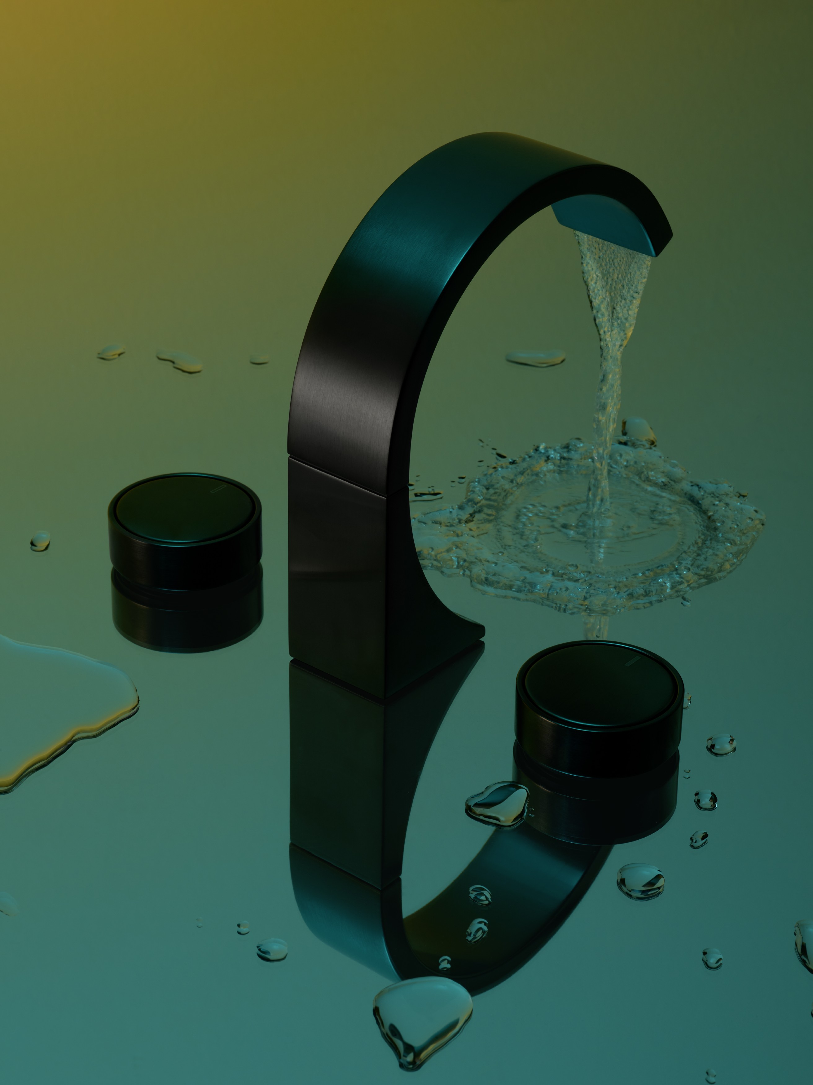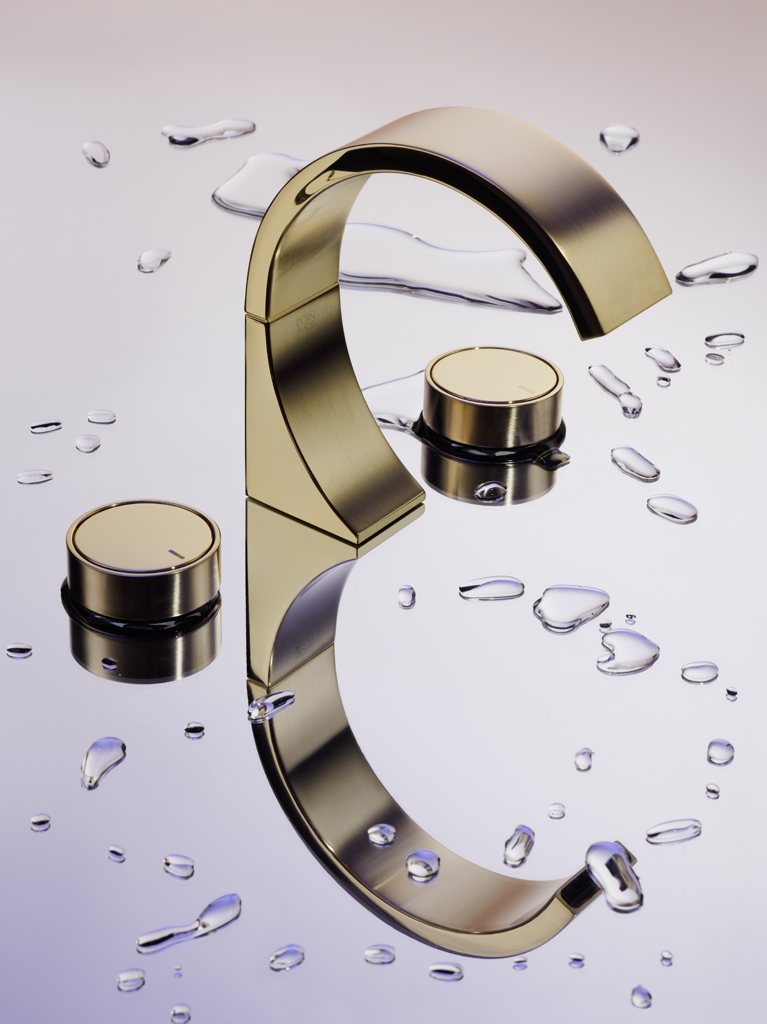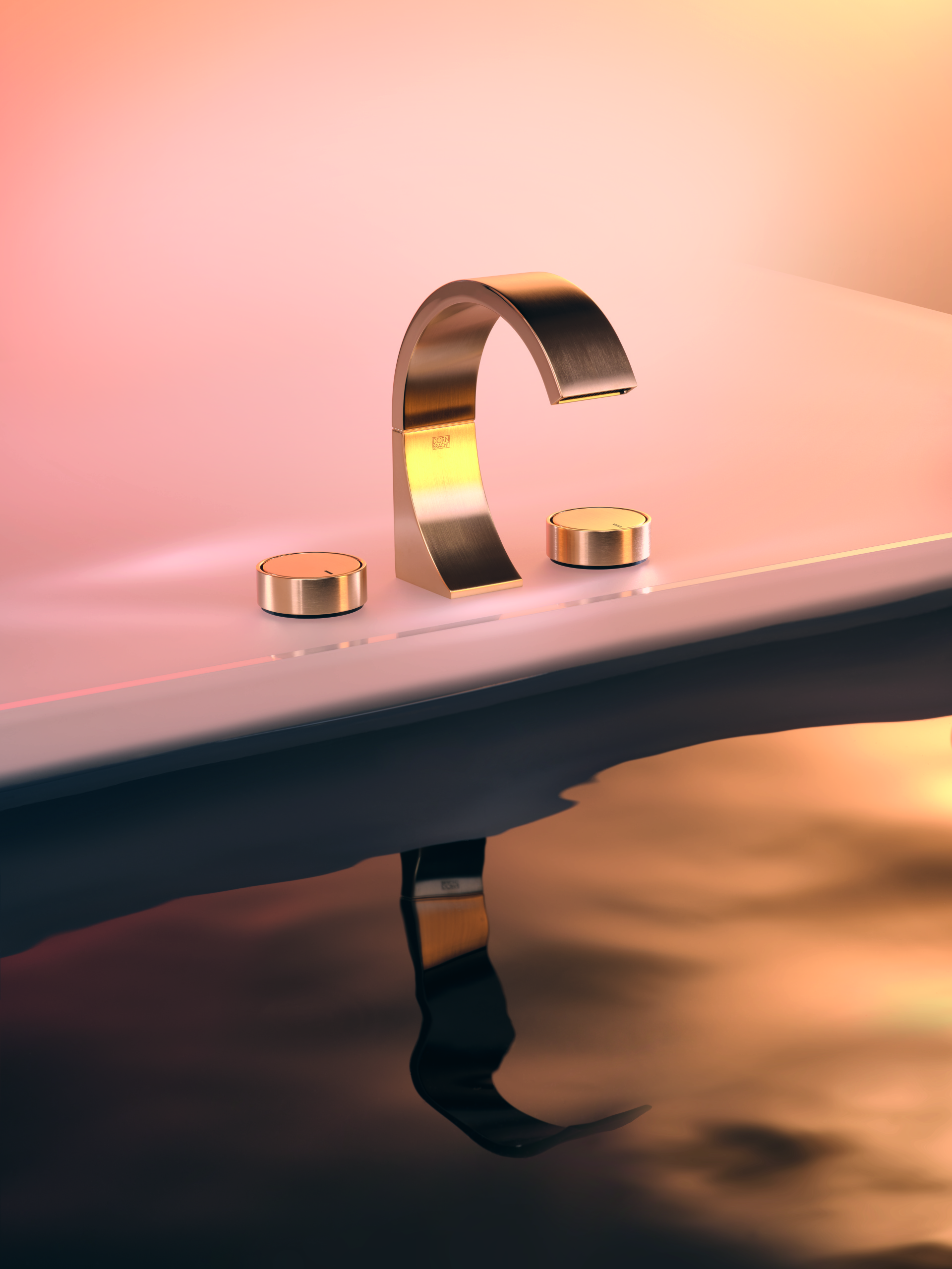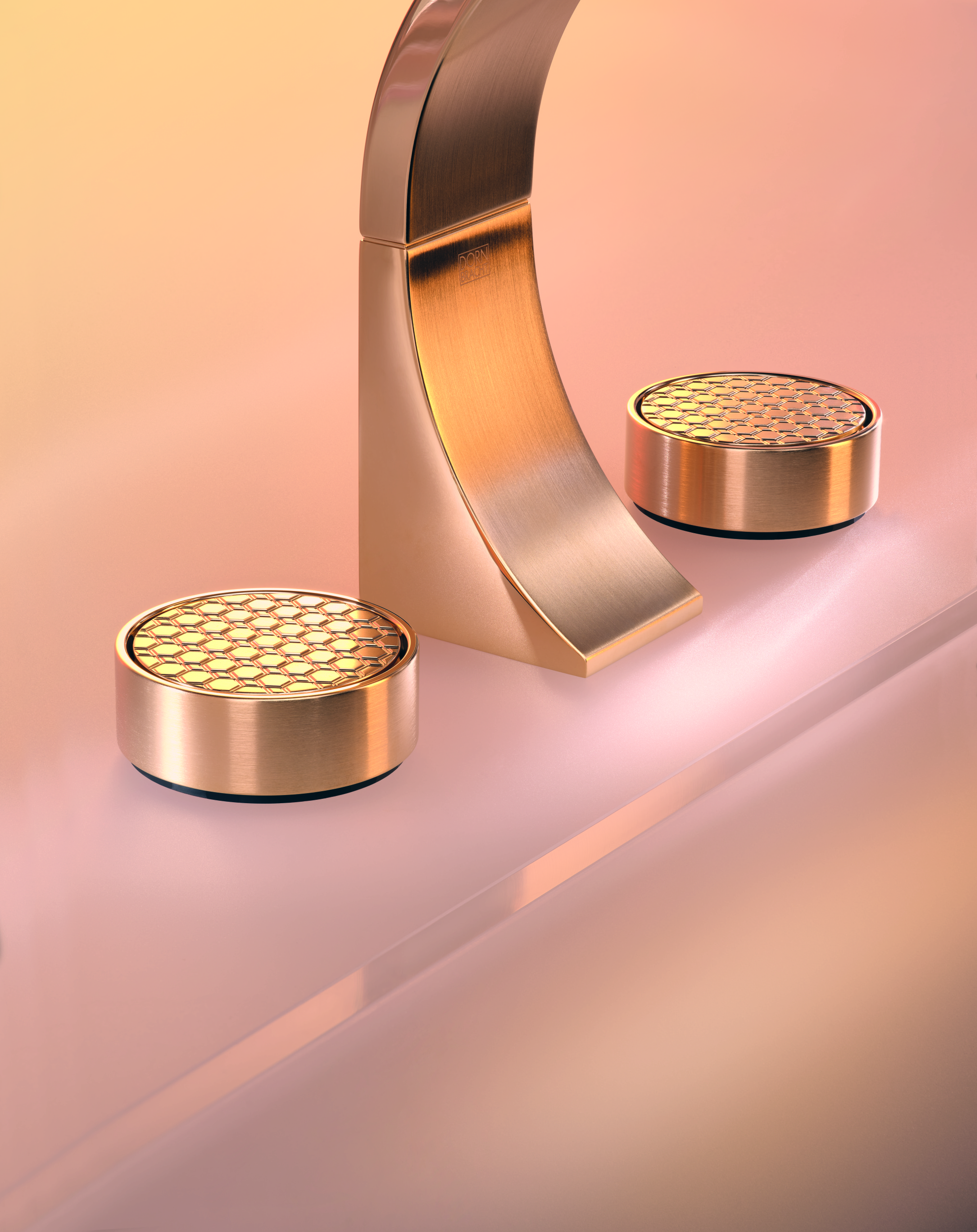 Operation is carried out via a rotatable outer ring whose fine markings offer the user affirmative haptic feedback. Six special finishes and a multifaceted inlay concept for the handle elements create new possibilities for individualisation. Materials such as natural stone or metal reliefs can be integrated here. Alongside the three-hole fitting, an additional product type in the form of a single-lever mixer extends the series with a further alternative.
