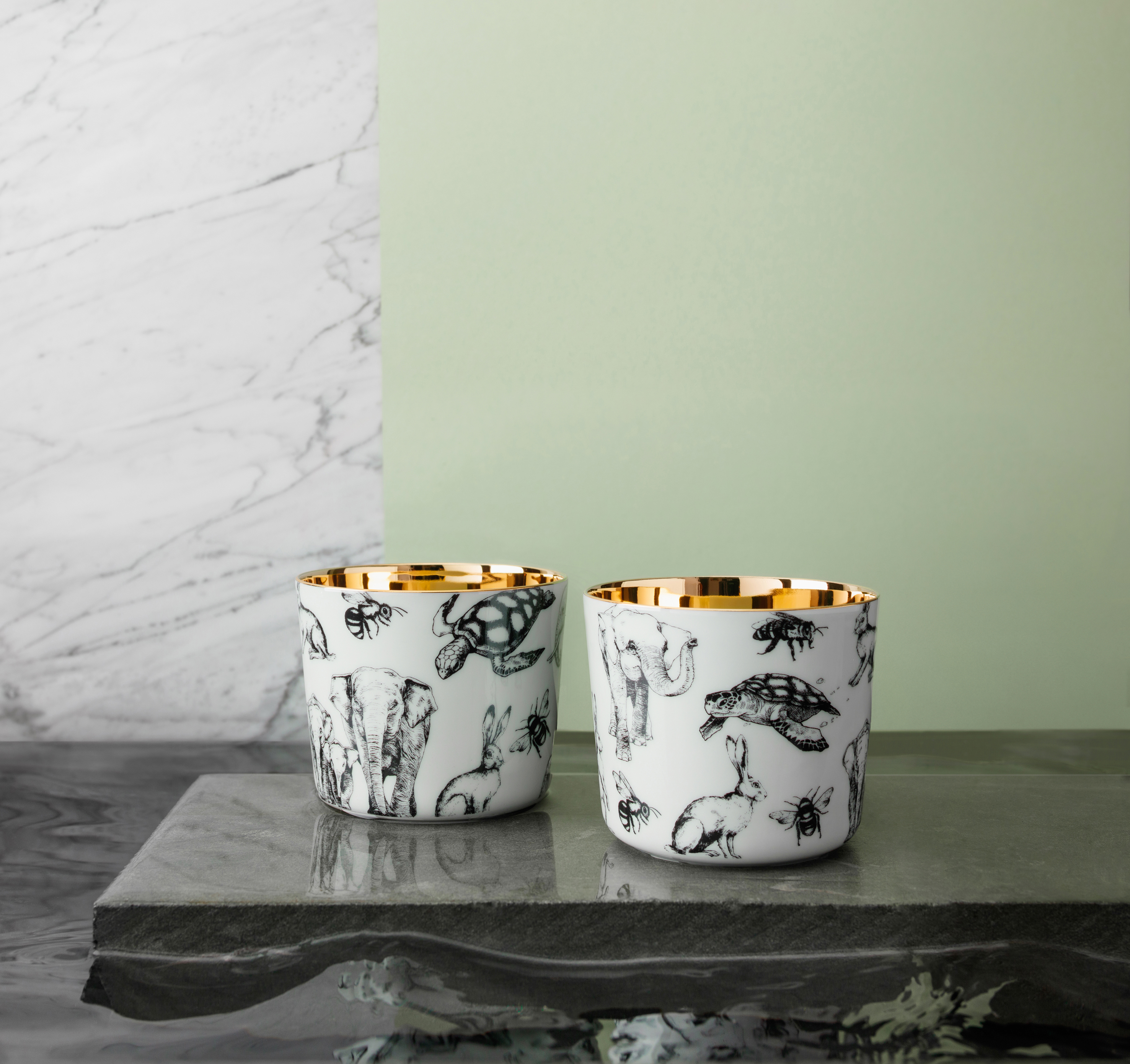 The tumbler series Beautiful Creatures from SIEGER by FÜRSTENBERG pays tribute to the beauty and variety of animal species. The wafer-thin porcelain tumblers with gold-plated interiors are colourfully decorated with elephants, tigers, polar bears, blue whales and octopuses. They also send an important message: wild animals living in their natural habitats are endangered and need our protection. That’s why part of the proceeds will be donated to the wildlife rescue organisation National Park Rescue.
