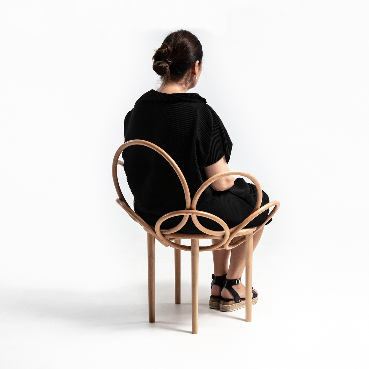 We admit it, we flirt shamelessly. With the past, icons, traditional products and techniques which never fall out of trend. A circle is in itself a perfect form, but we have multiplied it and assembled it into a functional seating unit – a chair, a throne, in fact. The combination of materiality, high-quality craftsmanship and the visually almost sculptural form makes it a welcome accent in (almost) any room. Placed in the entrance hall, at the dressing table or at the head of the dining table, it will serve for various fleeting or more significant stops.