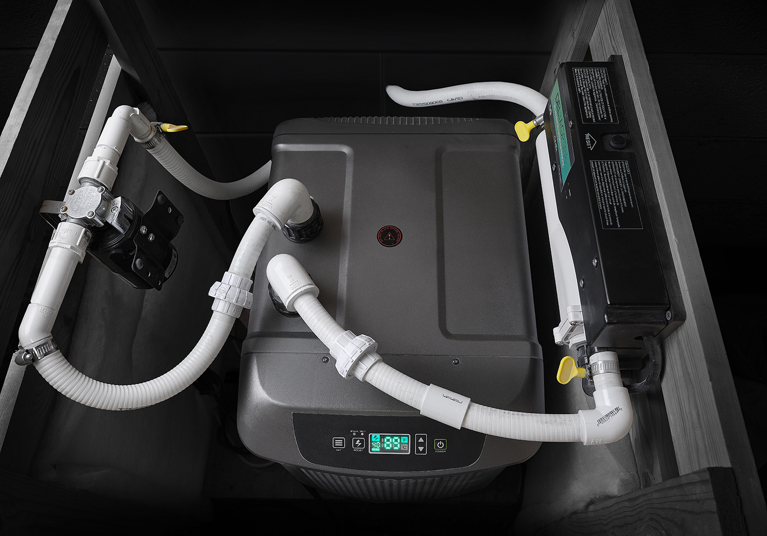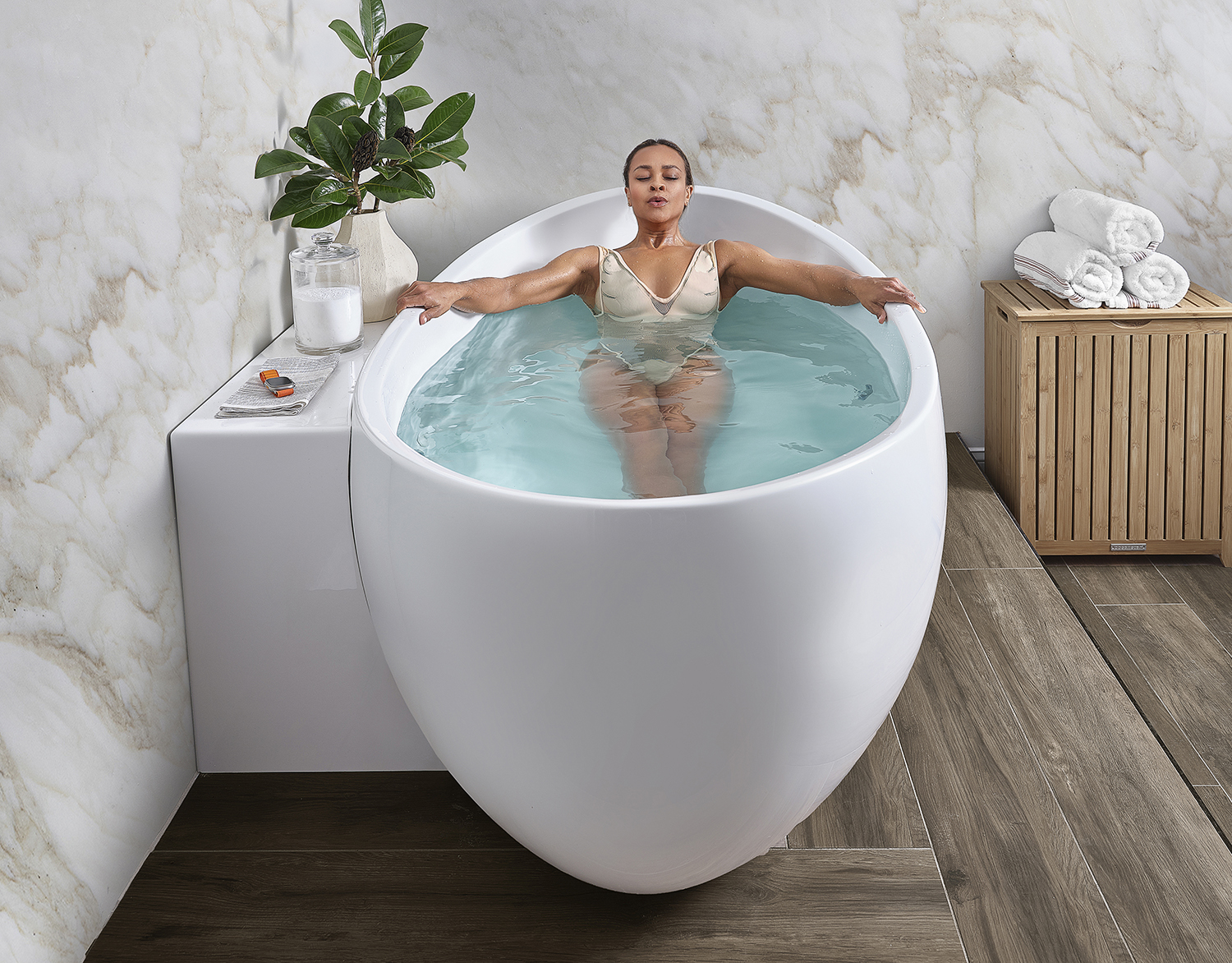 Hydro Systems leads the industry in Cold Plunge technology – the only luxury bath manufacturer offering an integrated water-chilling system with built-in UV and ozone sanitization and filtered water. Cold water therapy, or cold hydrotherapy, is the practice of soaking in water that is 59°F (15°C) or less. The benefits of this state-of-the-art spa and wellness experience have been known to reduce pain and inflammation, provide faster post-workout muscle and joint recovery, strengthen the immune system, enhance mindfulness, and improve blood circulation. For the private home spa environment, it provides a convenient and efficient use of the space, because the same bathing vessel can be a soaking tub, a hydrotherapy tub, or a cold plunge tub. Cold Plunge can be integrated into virtually any of Hydro Systems’ freestanding, alcove, or drop-in tubs, and can be combined with any other Hydro Systems therapeutic system options, creating endless possibilities for customization. Hydro Systems is the first and only manufacturer to fully integrate cold hydrotherapy across all hydro-therapeutic and holistic wellness product system options. The Cold Plunge chiller unit is a work of meticulous craftsmanship and accessible engineering that can be installed in a concealed cabinet, custom enclosure or storage space, and operated via remote control. The system uses powerful UV light and ozone to continuously and safely sanitize bathwater while maintaining its desired temperature.