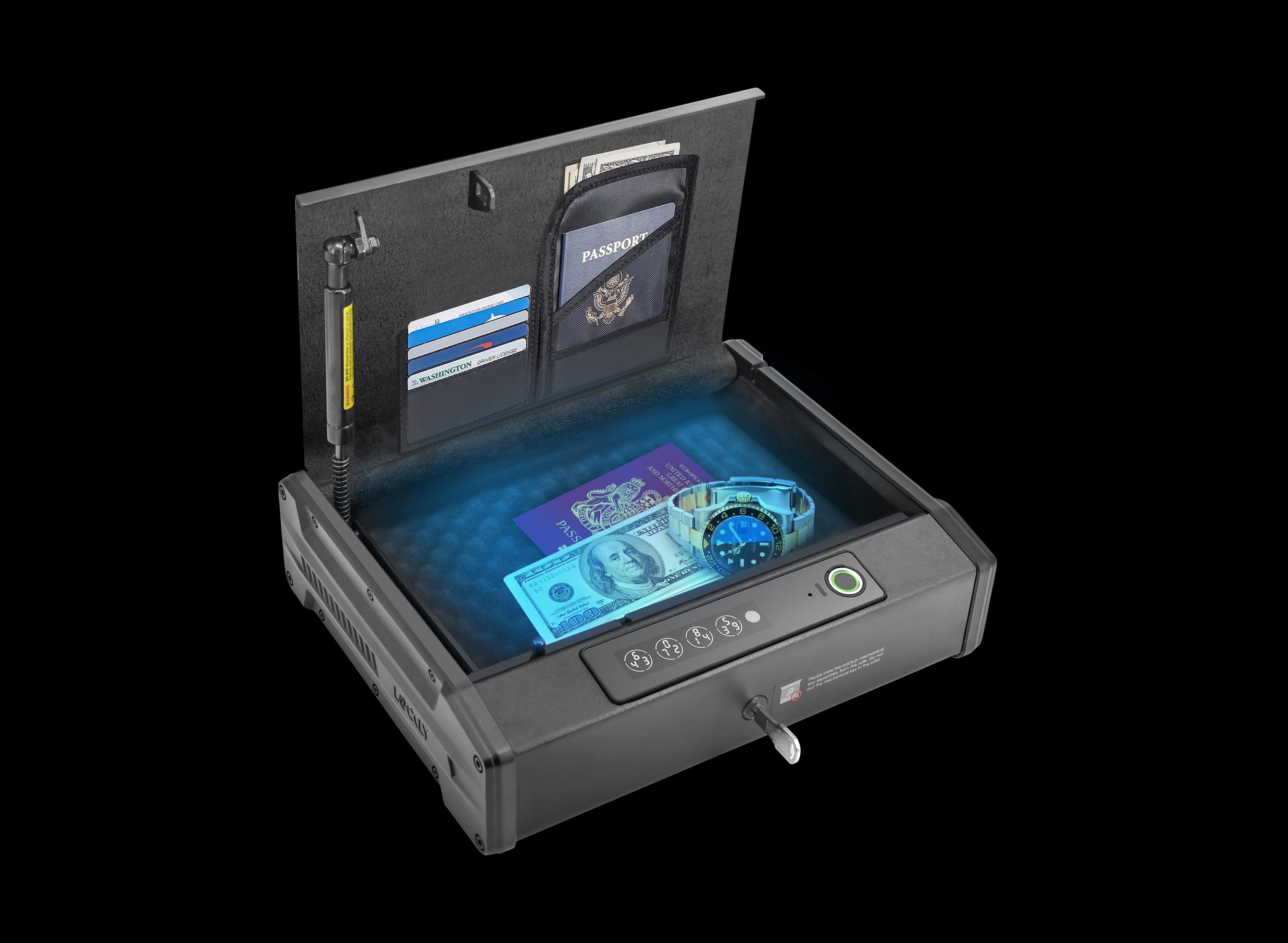 Lockly Smart Safe is the first of its kind device that allows real-time monitoring and control over your secured valuables directly from a smartphone. Utilizing Lockly’s patented PIN Genie® rotating keypad that randomizes the numbers every time the safe is approached, and Lockly’s 3D biometric sensor technology that recognizes a user’s fingerprint in up to 0.3 seconds for quick and discreet identification, users have unparalleled access and security of their possessions. With the Lockly mobile app, users can view the safe’s open/closed status, set tamper notifications, and unlock/lock it from anywhere in the world utilizing the included WiFi hub. The safe also has a duress finger alert to assign one or two fingers for the safe to recognize and send duress notifications for extra security. Lockly Smart Safe’s sturdy, premium build and compact assembly are designed to protect valuable goods and what matters most.