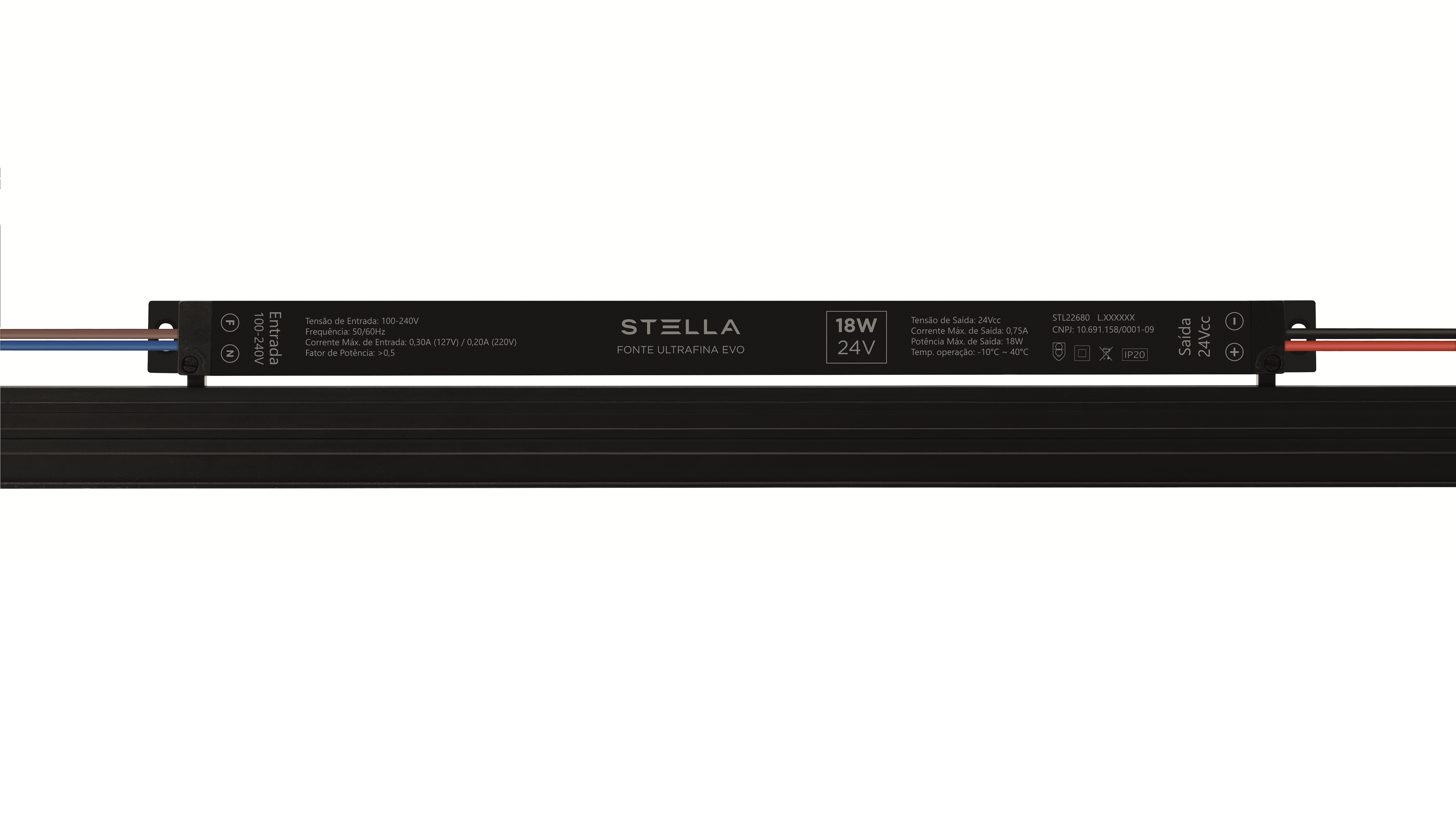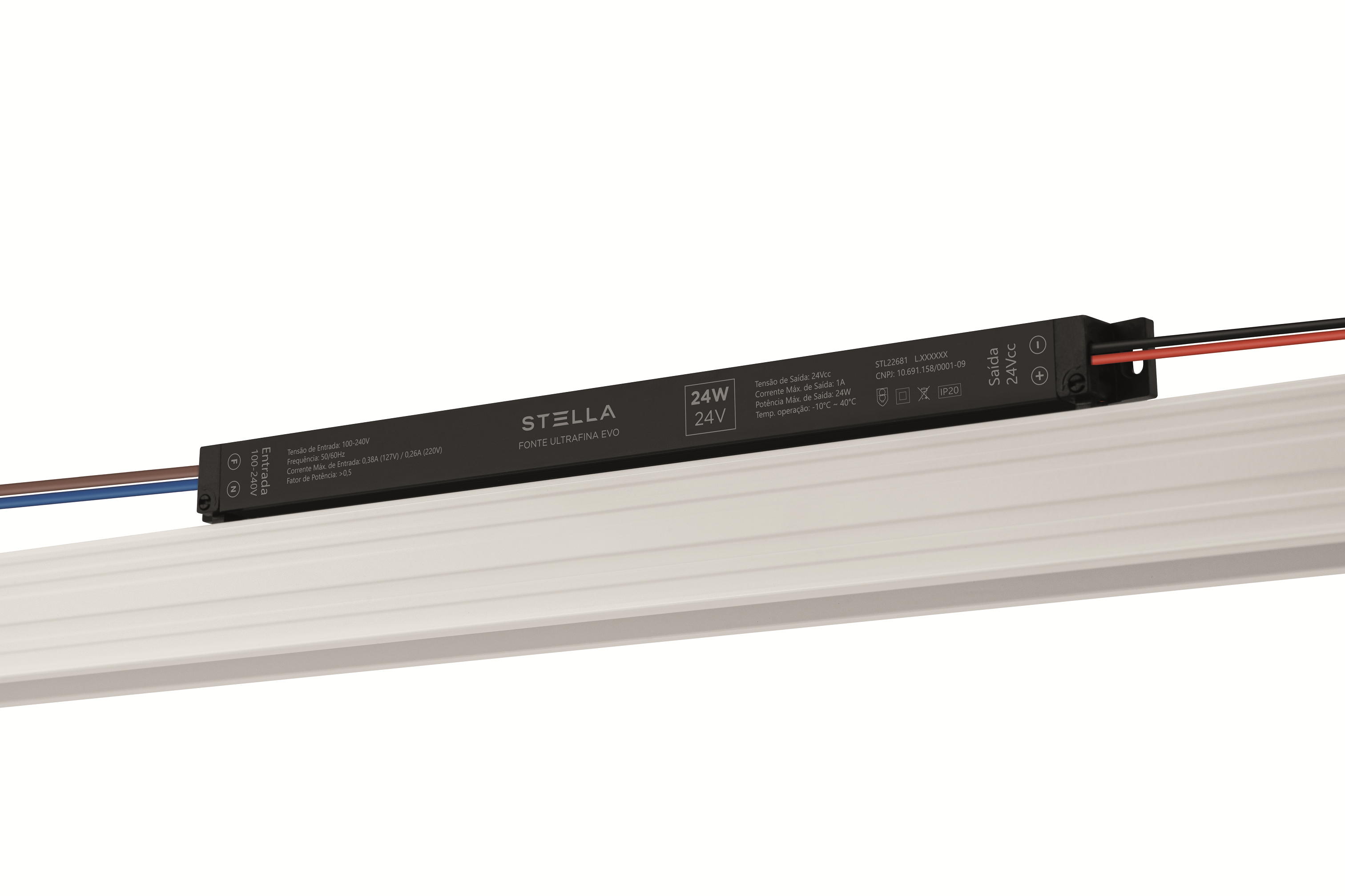 With an ultra-thin design and anodized painting, the Fontes Ultrafinas EVO line offers greater strength and total electrical safety, as they feature the True Power system, which delivers 100% of the power indicated on the packaging and ensures optimal performance. They are available in 12V/24V with power of 18W/25W/36W/48W/60W for low-voltage LED lamps and strips.