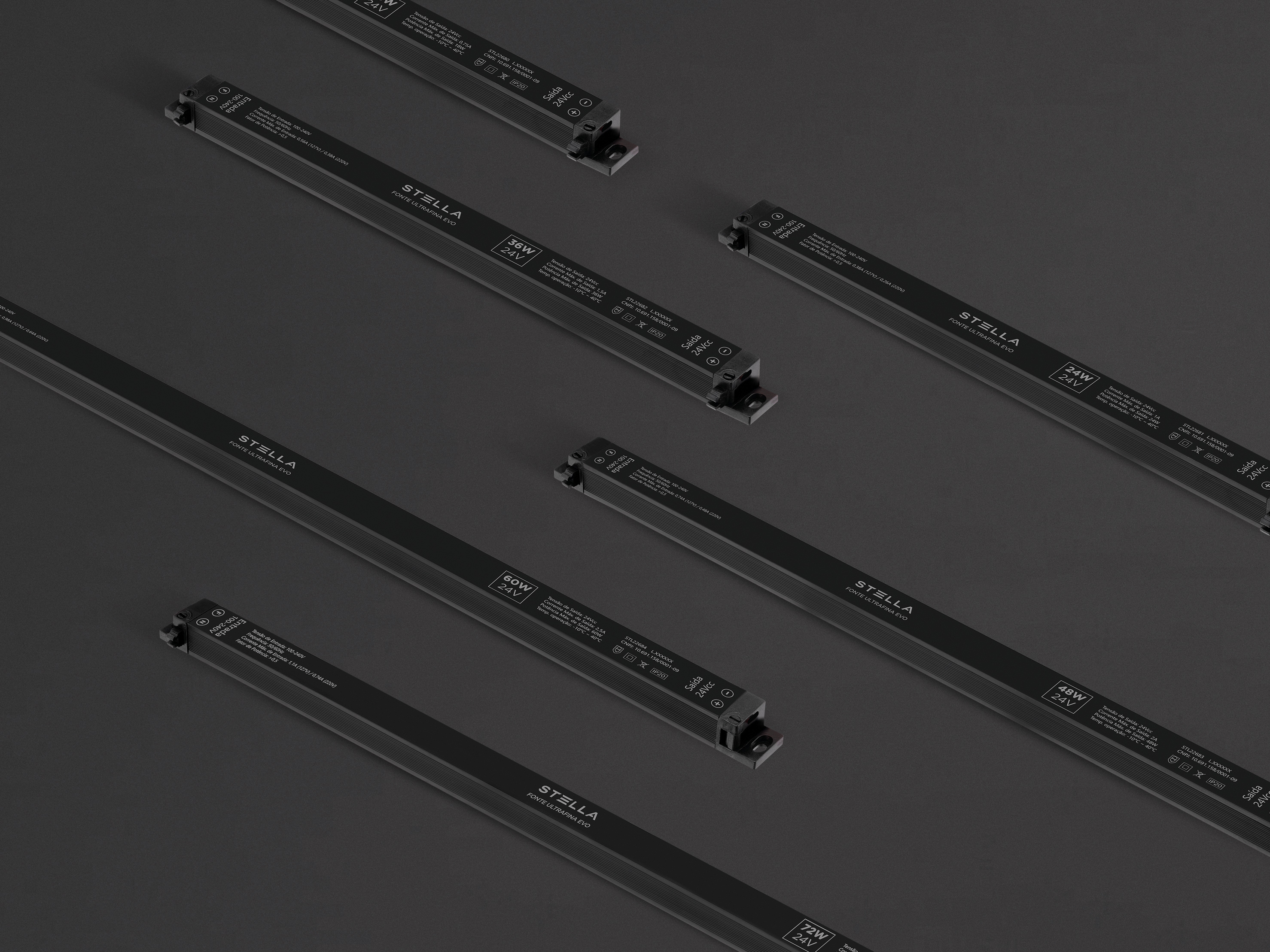 With elongated design, and elegant lines, a characteristic visual of Stella products, even the display of technical information was developed to convey a reliable and well-finished product image. The body of the power supply profile is made of anodized aluminum, and the technical information is laser-applied in gray color to convey the information clearly and discreetly.