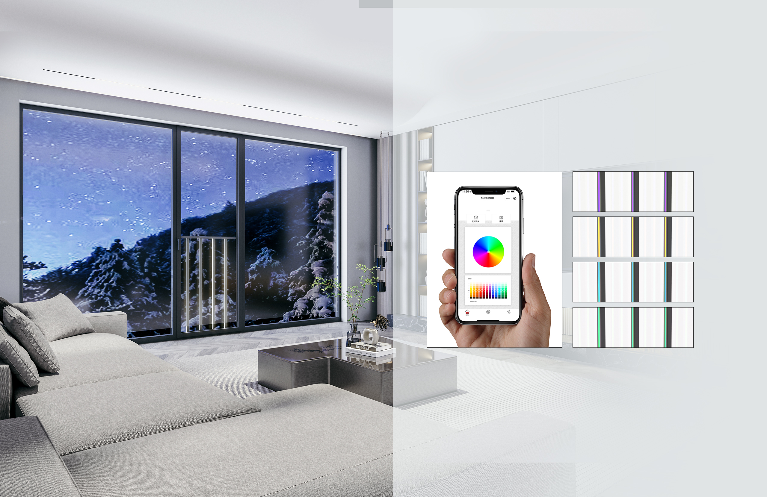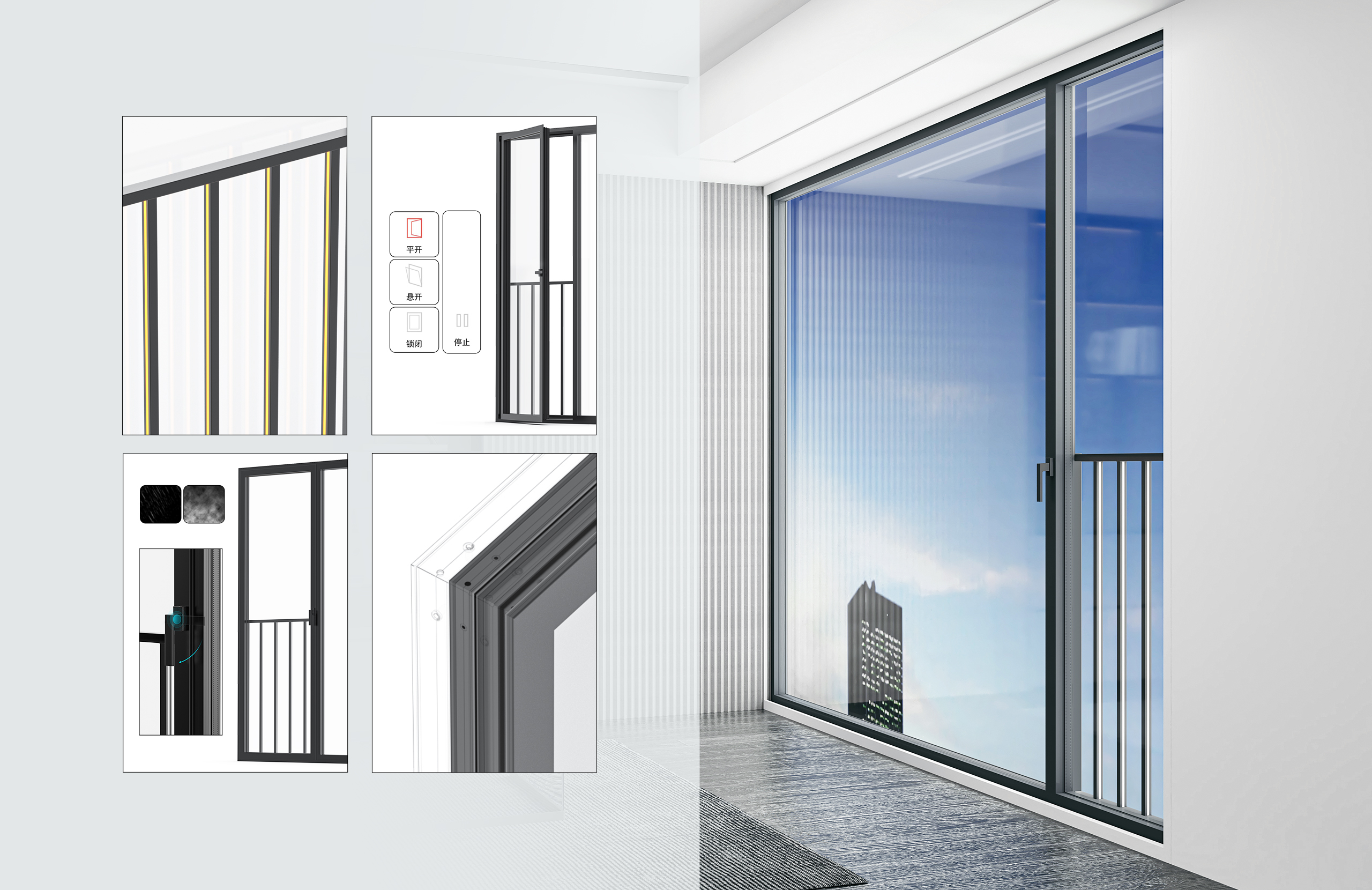 This is the industry's first intelligent sashless window with illuminated railings. Apart from the new structure of intelligent sashless windows, a built-in micromotor is hidden inside. Driven by the control system, it allows the electric opening function of horizontal pivoting. Additionally, the external side is equipped with wind and rain sensors, which can automatically close the window in case of bad weather; the internal side is equipped with smoke detectors to automatically open windows for ventilation when monitoring smoke, which fully demonstrates the innovation and application of science and technology in the modern smart home. Introduced by the brand new structure design of the sashless window, the openable window is hidden in the frame to avoid the impact on the field of vision. Its external visual effect is completely consistent with the fixed windows to ensure a terse and decent indoor visual effect, harmonious and unified, reflecting the beauty of order in modern architecture. This illuminated railing of the French window adopts the design of a 20mm narrow frame, and is fixed by a nut type connection, which ensures the stable structure and the safety of users without the effect on the user's view of the sight, giving users a worry-free experience. Combining the LED light strip with the railing, users can choose different colors and brightness through the mobile App to achieve step-less dimming. The full sense of technology brings great visual impact, minimalist but not simple, which conforms to the design requirements of modern aesthetics, and can be perfectly blended into various application places. This combination of sashless French window and illuminated railing satisfies users' requirements of ventilation at the same time provides a wide range of view, making the field of view wider and extending the space, and providing them a comfortable and safe experience.