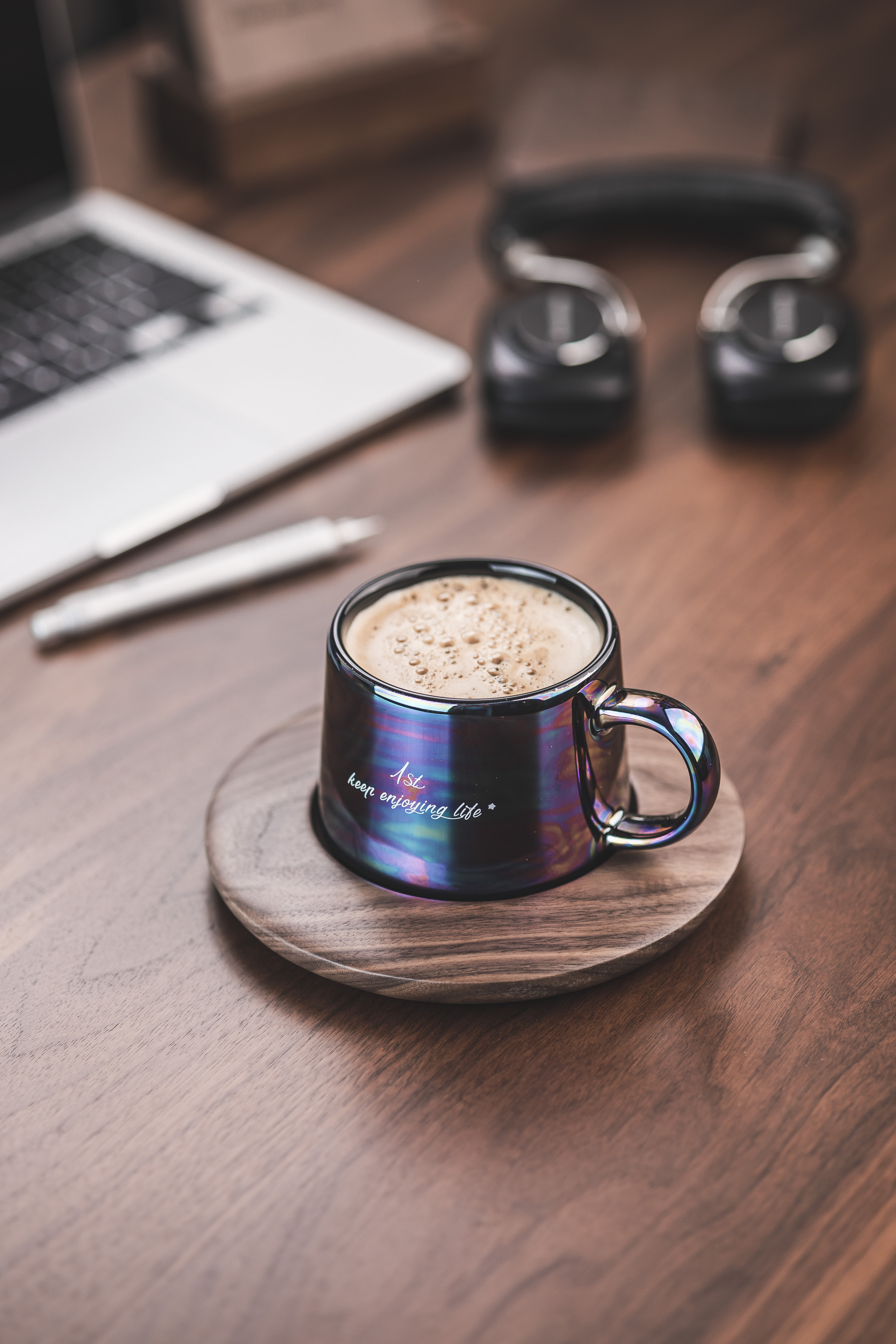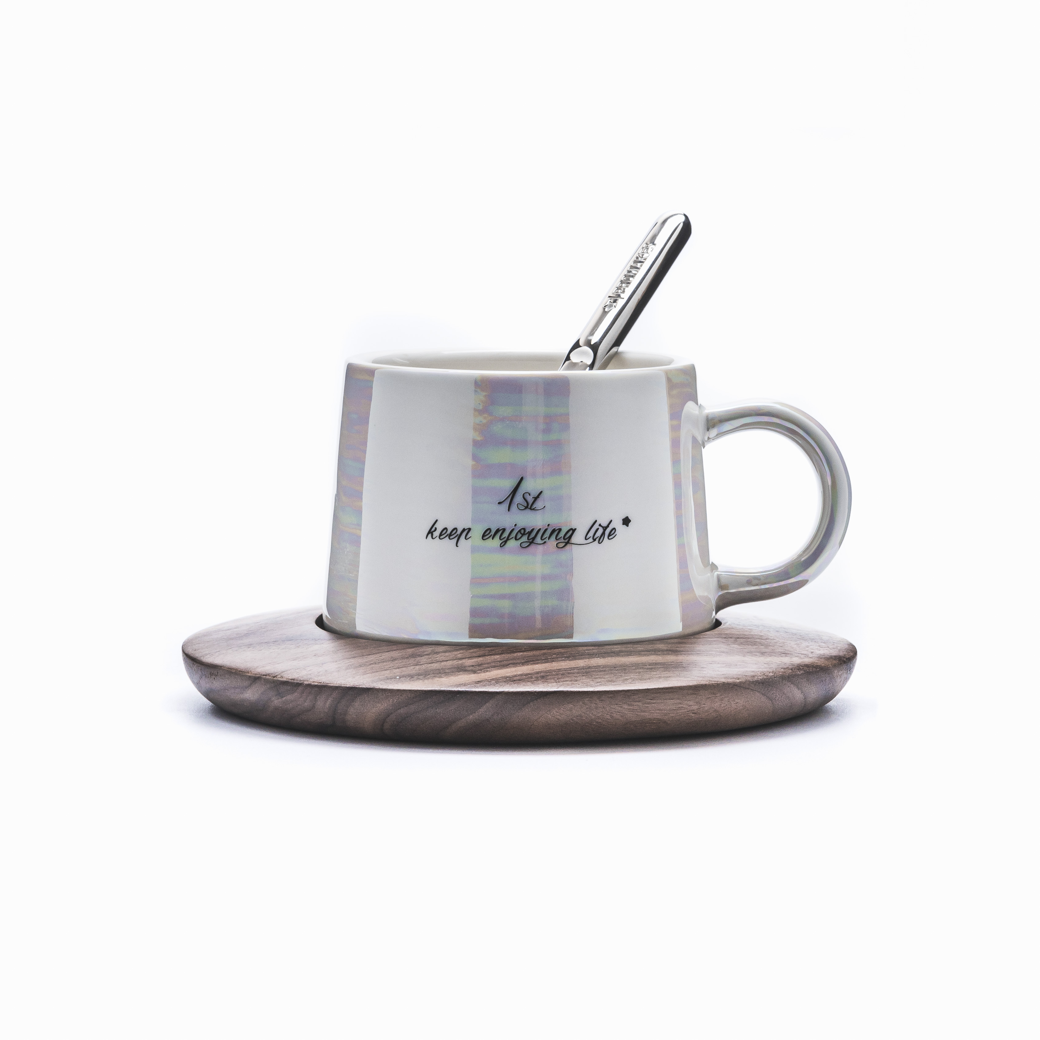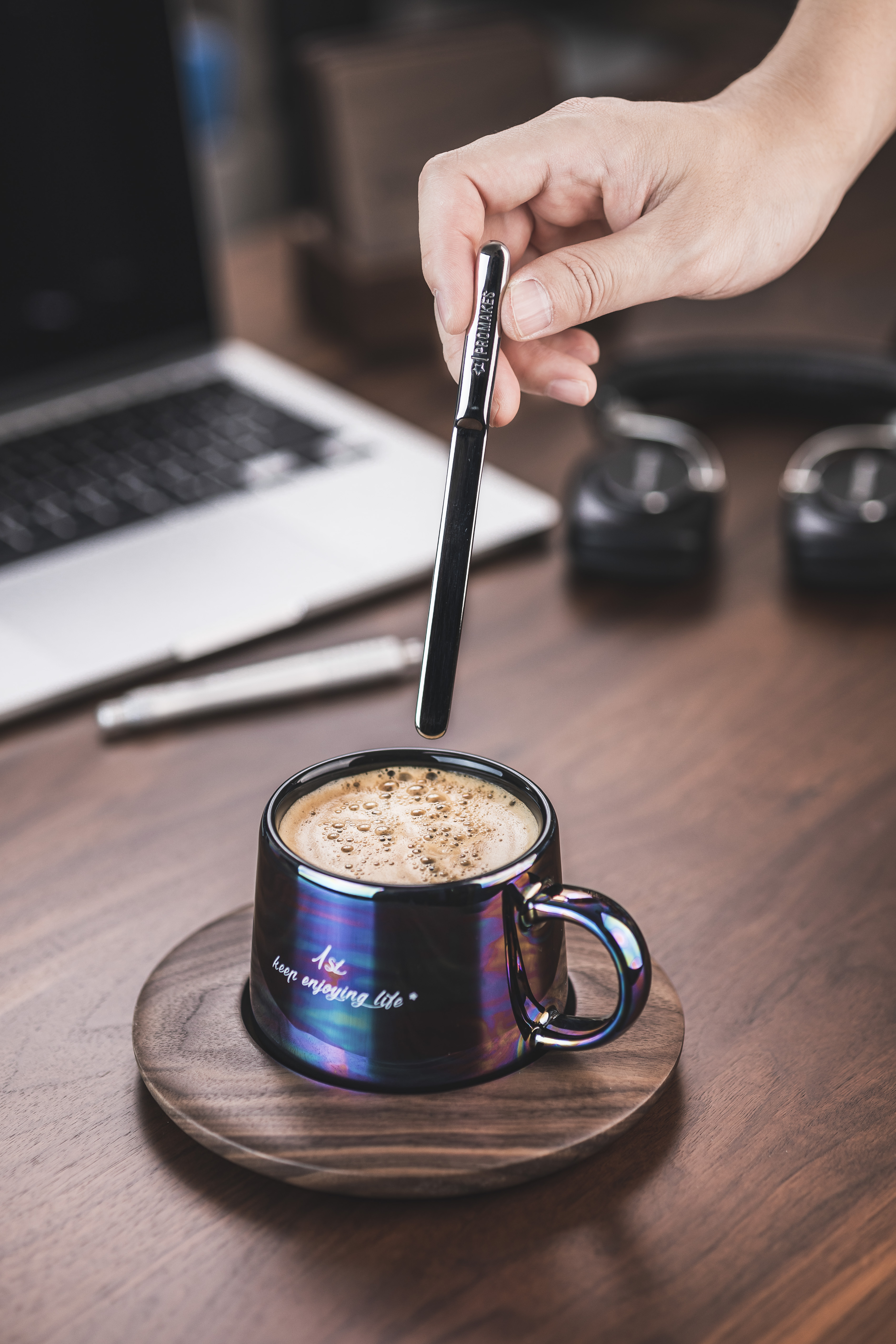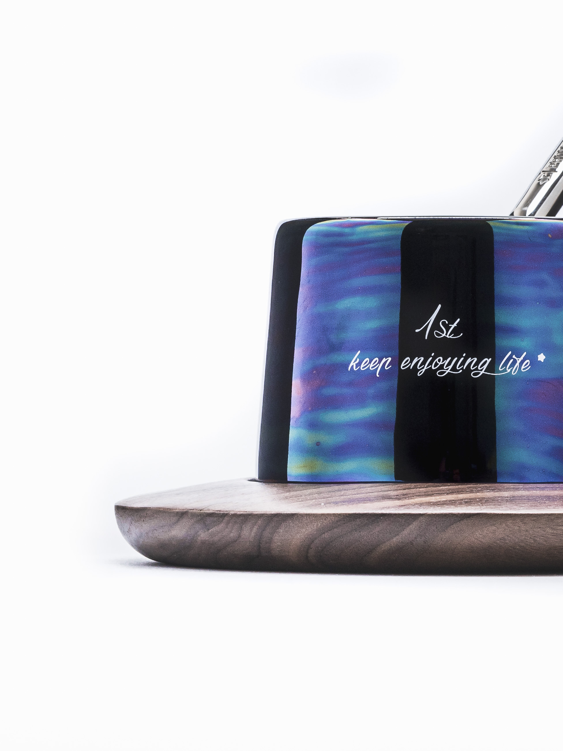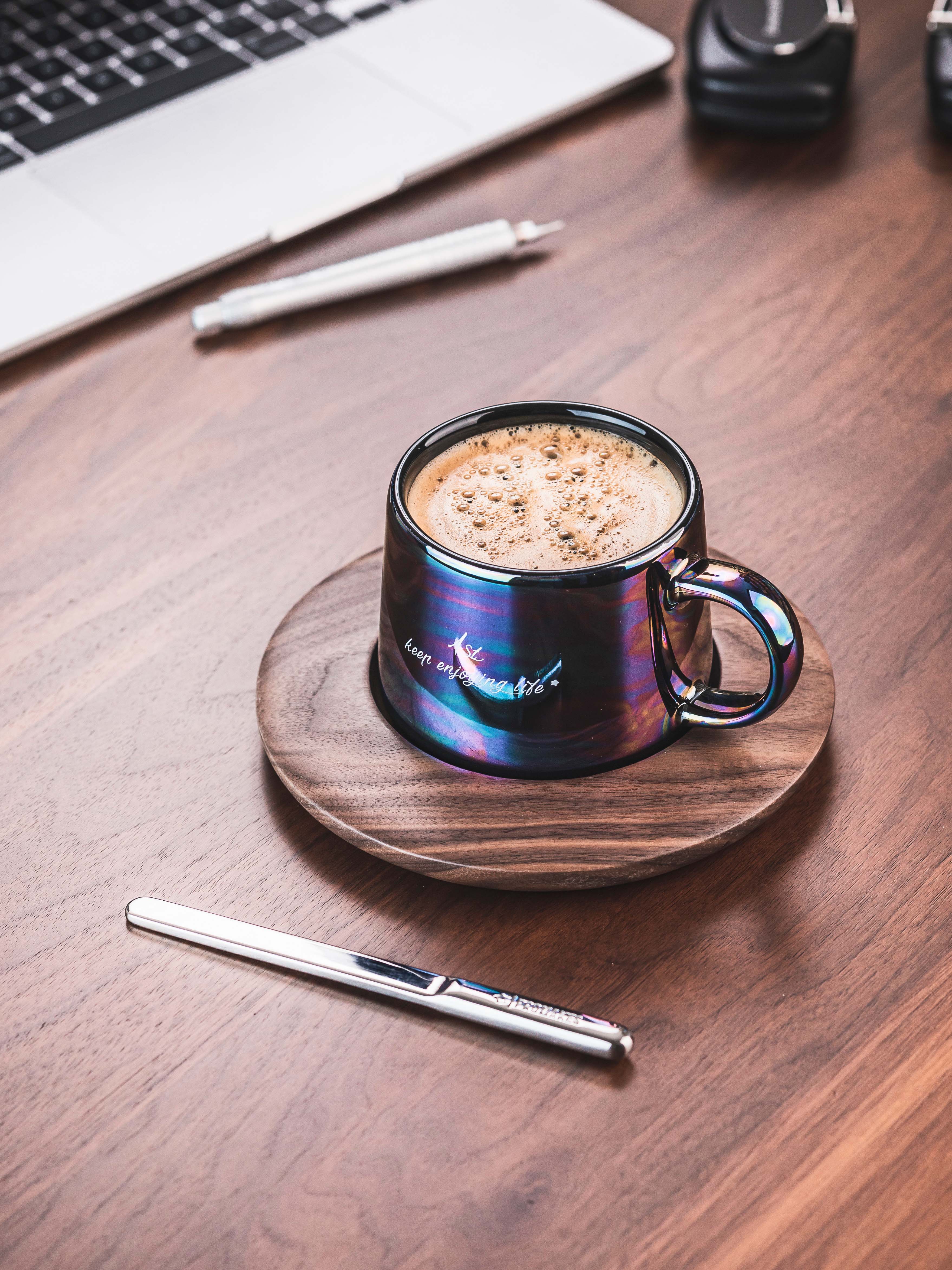 A prominent feature is the tailor-made mat originated from a whole piece of North American black walnut wood. Through repeated polishing, the surface of the mat looks delicate and the double taper design of the mug and the mat is perceived even more futuristic. The package is 100%made of recyclable and biodegradable materials and comes with a retractable suede bag.Getting over these complex processes, we present this handicraft that makes you feel very happy.