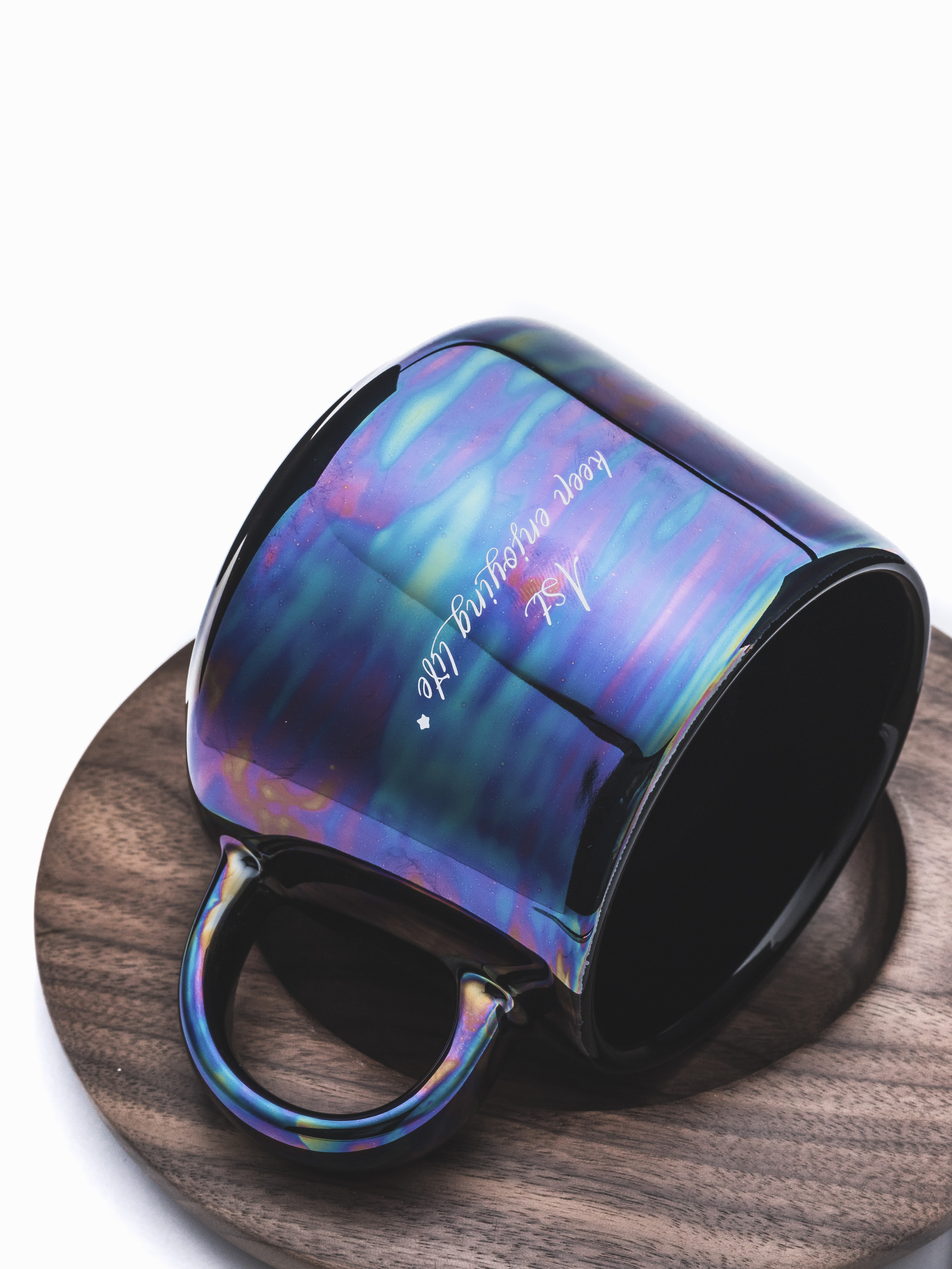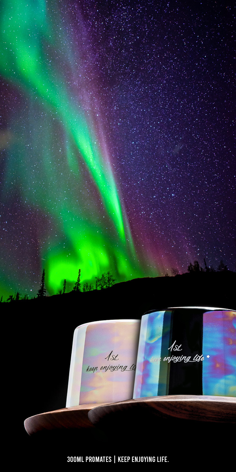 The florid aurora in the Arctic region of Norway always makes people feel amazed: It is astonishing that there is such a wonderful scene in the universe that makes us feel instantly happy.This Aurora Mug is designed to capture this incredible moment, but we had many challenges to make it: First of all, we chose a taper design that features small rim and large base, the outwardly tilted angle can better reflect the gloss of aurora, but a more complex grouting process is required to realize this design.