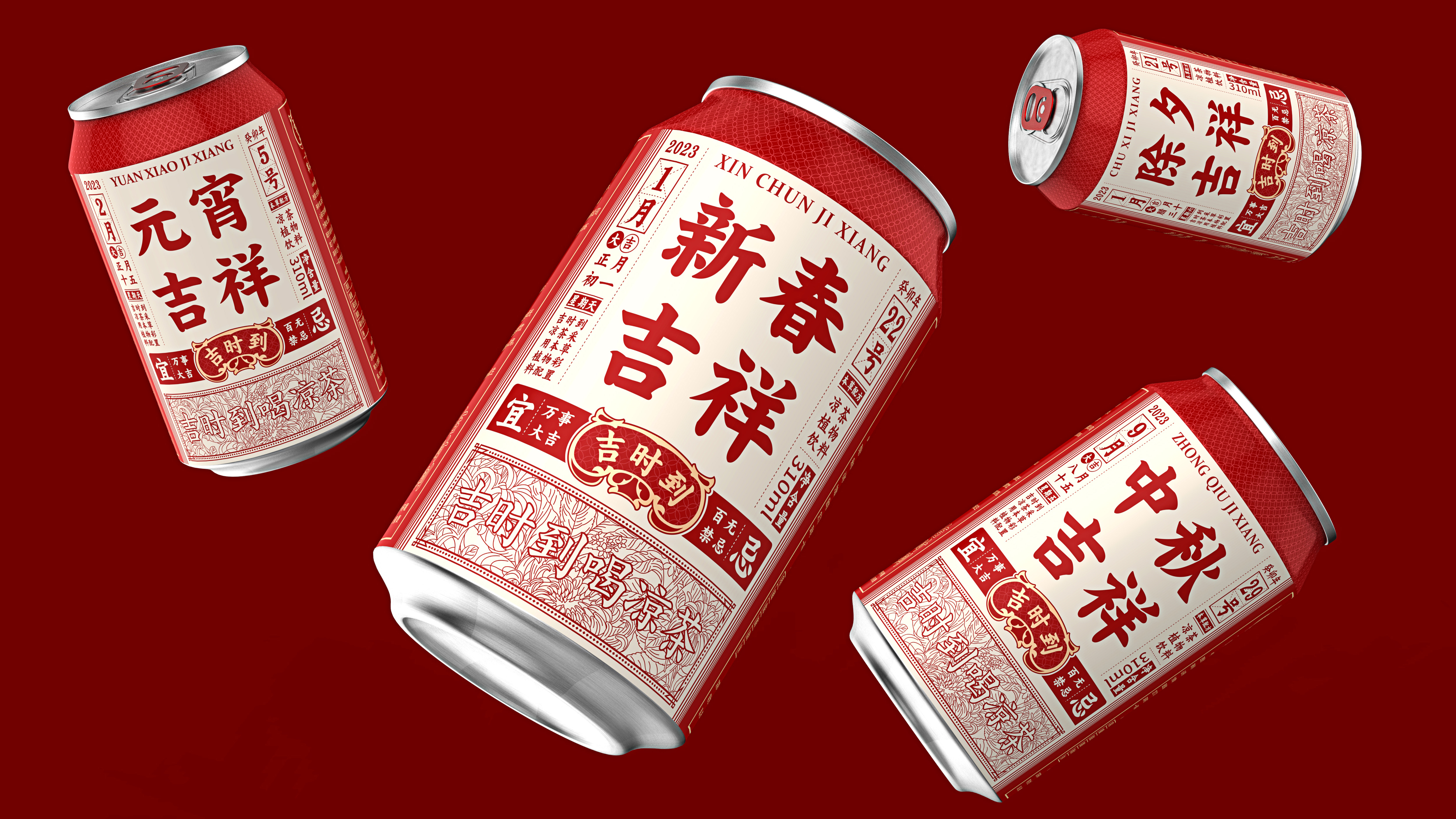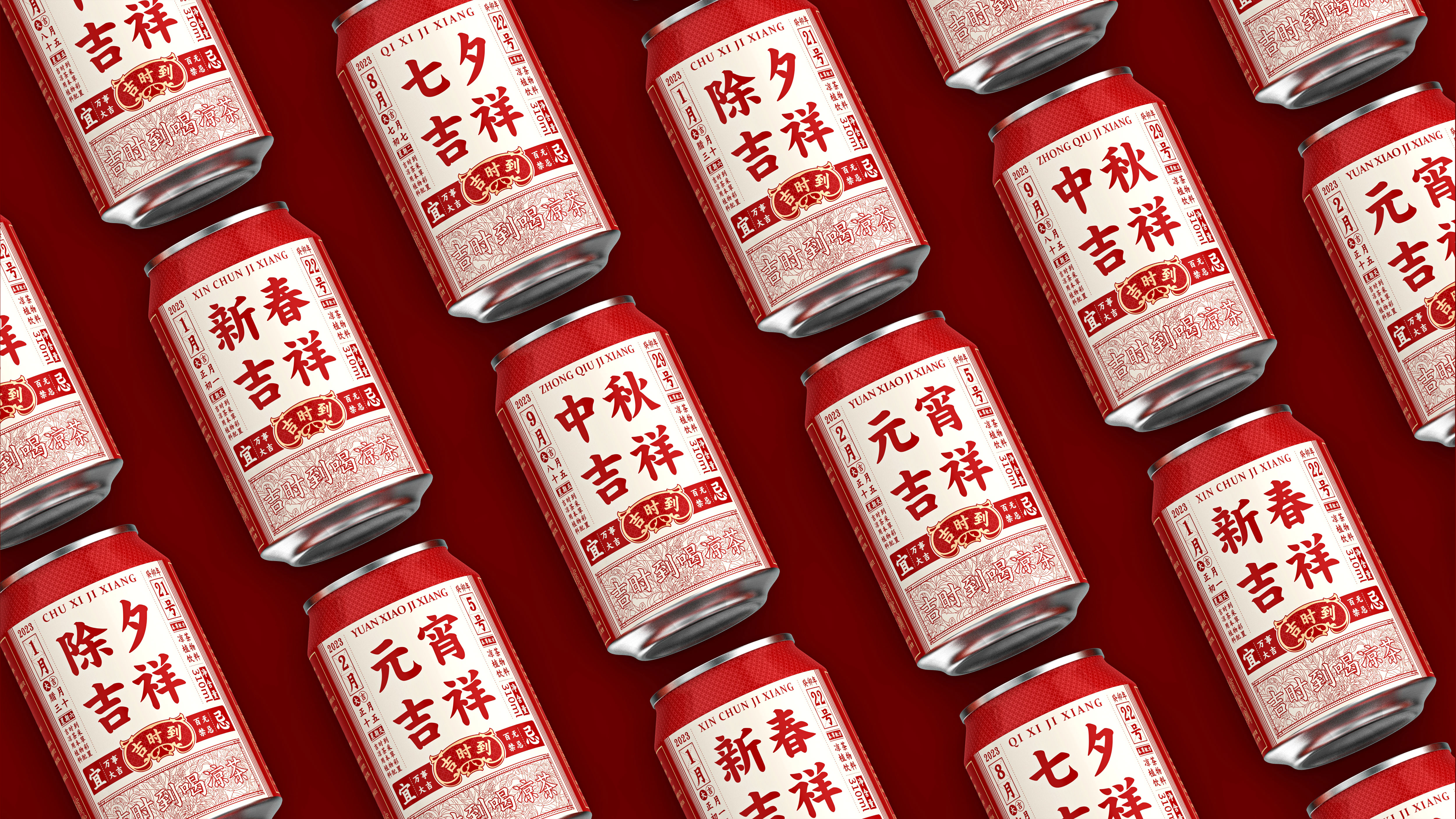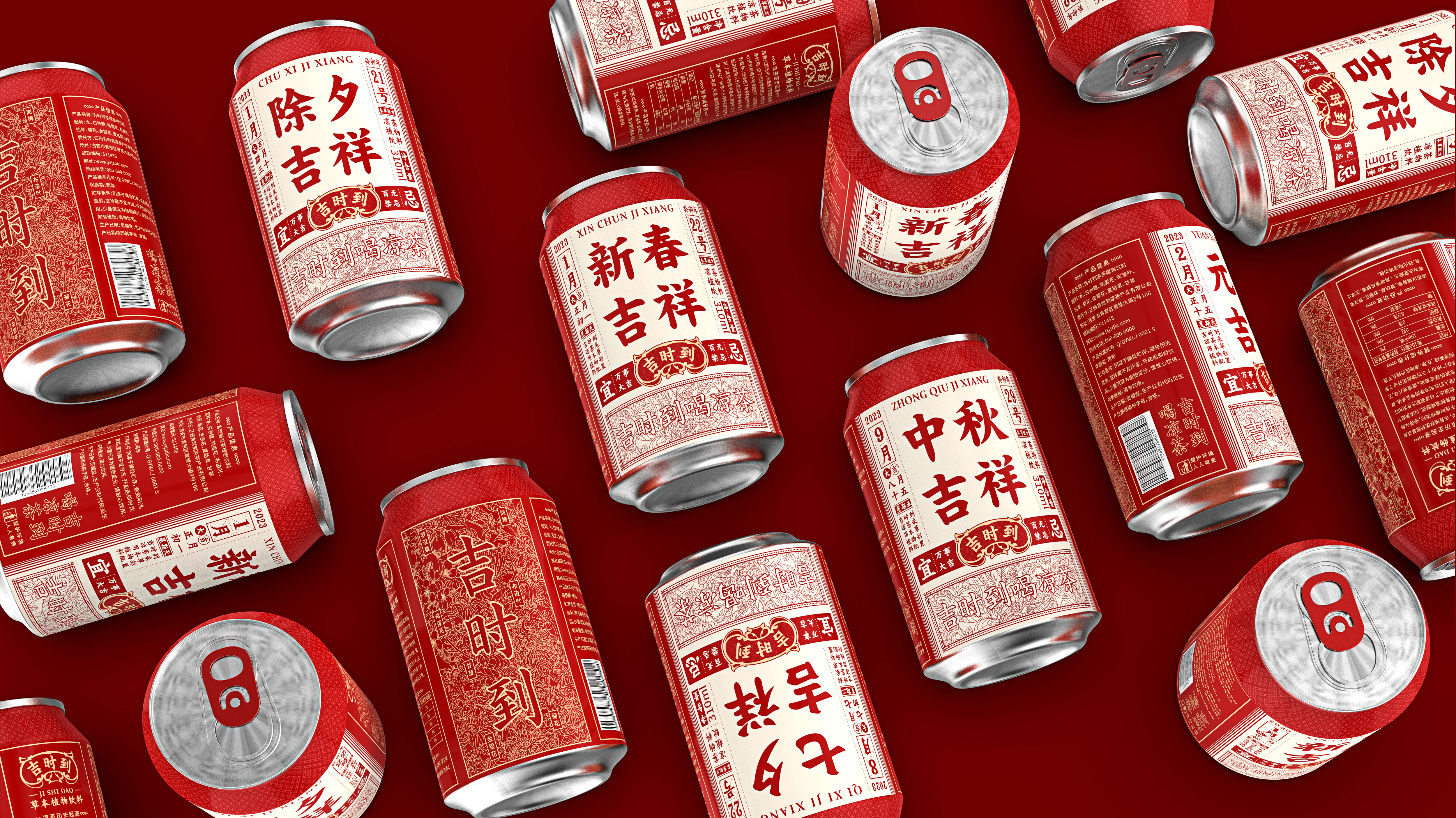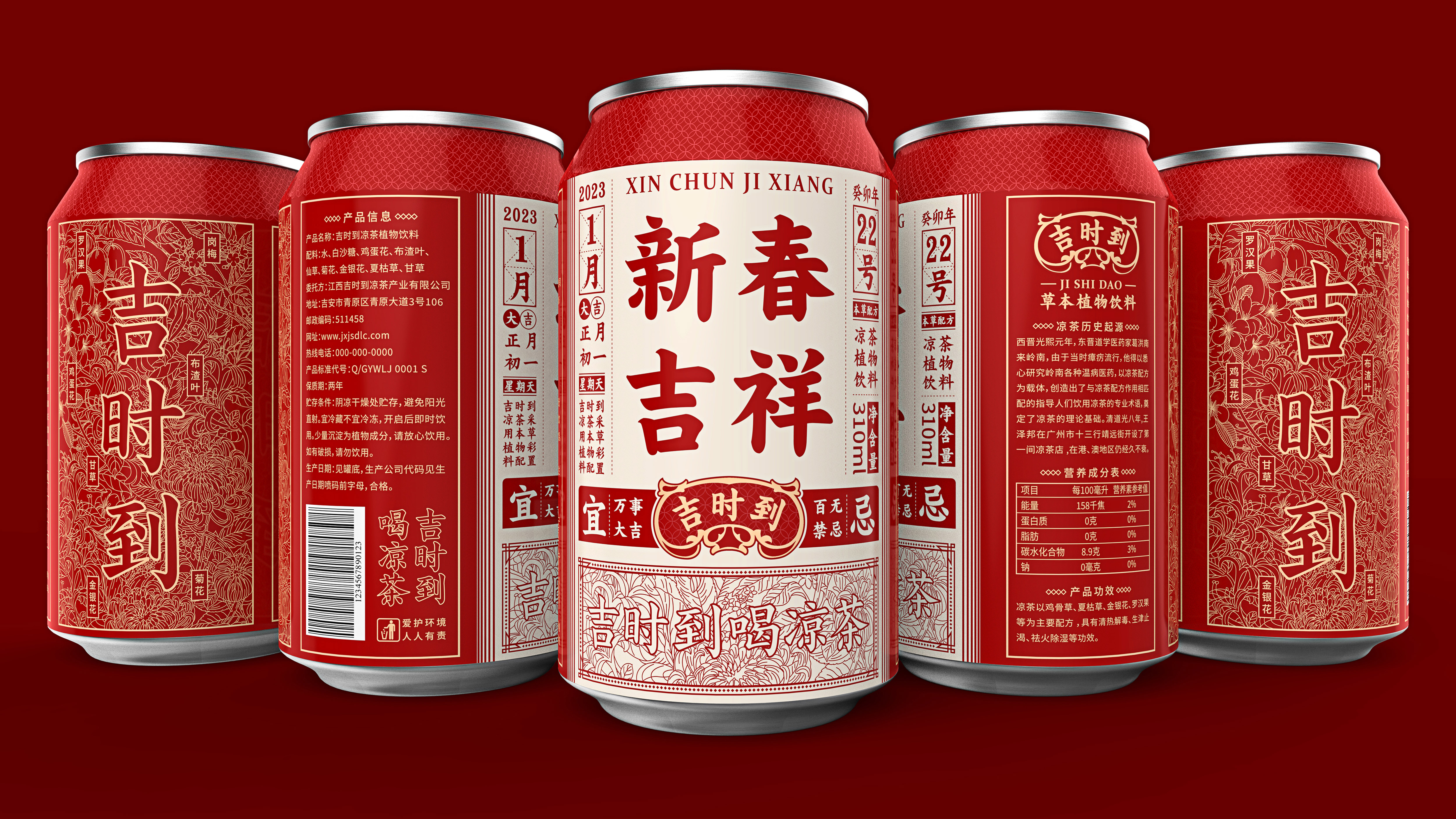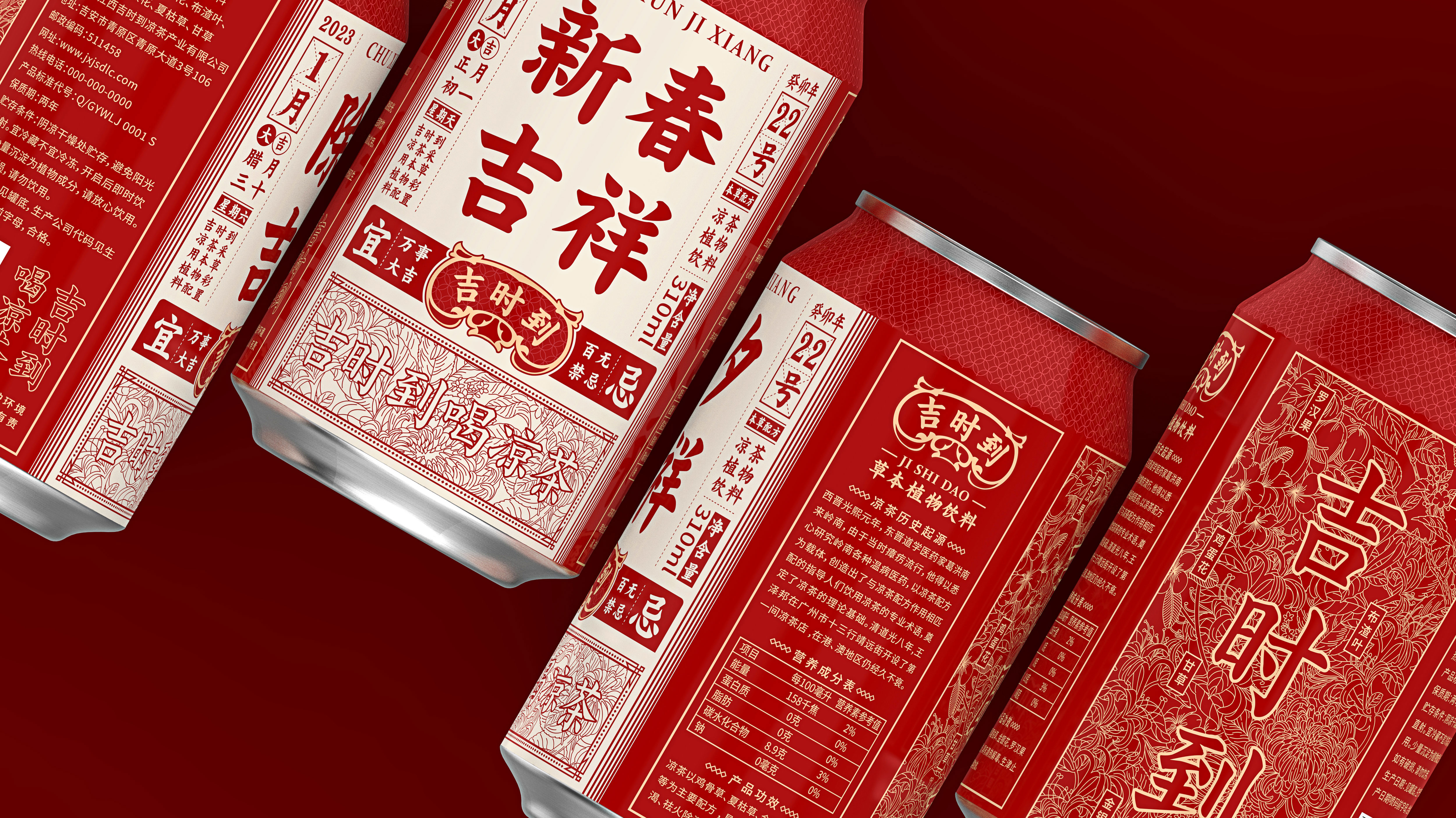 Jishidao herbal tea is a tea drink in the Chinese market. Transmitting auspicious culture to consumers is one of the fundamental tasks of Jishi to herbal tea companies; therefore, Jishidao, as a drink unique to the Eastern country, was formed in the Qing Dynasty. It has a certain historical heritage itself. In the font design, the font of the list of shop plaques during the Qing Dynasty, which allows the product to bring the attributes of the old name; "Jishidao" means that the auspicious day has arrived. Pay more attention to the Huangdaoji Day and have the habit of reading the calendar. Therefore, in the visual design of this product, we design the front of the bottle as the form of the calendar, and then combine each important festival of the year to launch a festival limited model to culture Empowerment, and traditional festival culture is a culture consensus for each Chinese consumers, so that the era of homogeneity of products is used to carry out circle marketing, which has successfully made the circle. The design of the bottle back is to presented the raw materials of the product through the form of an illustration, and the illustration of the "Jishi to" product is carried out on the illustration. The color is mainly red, with gold and beige Auspicious meaning.