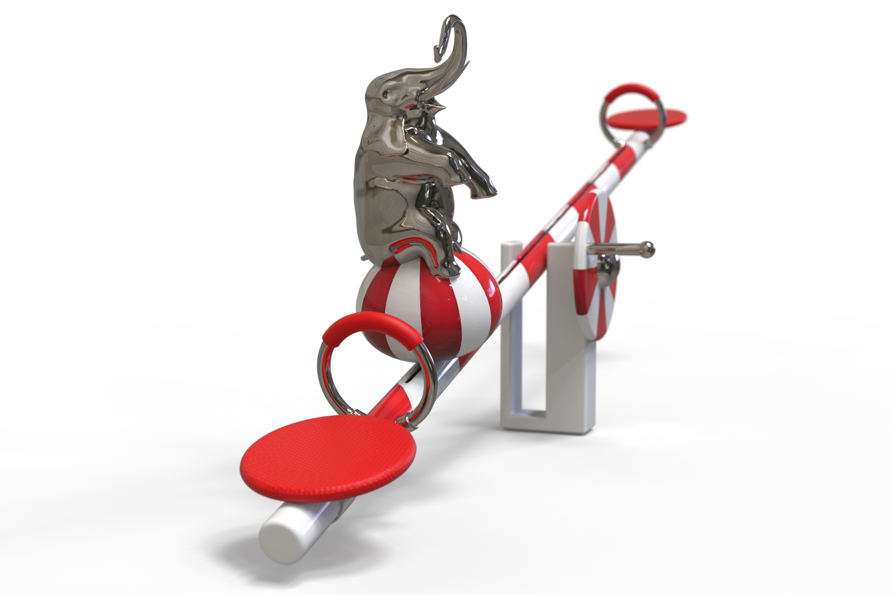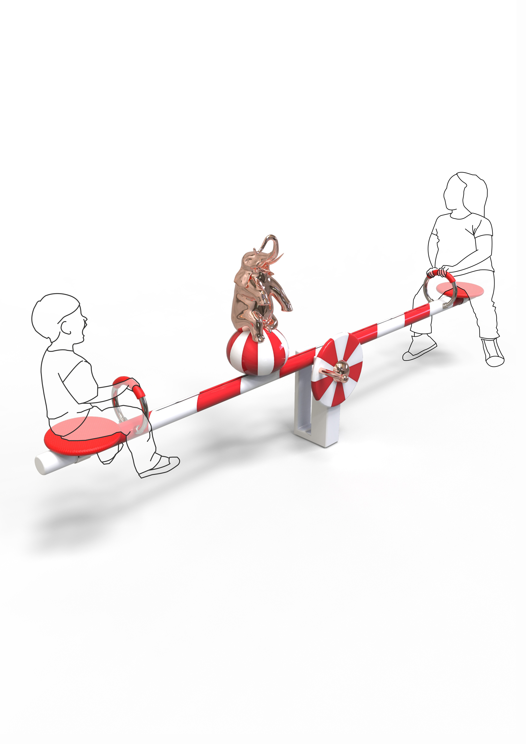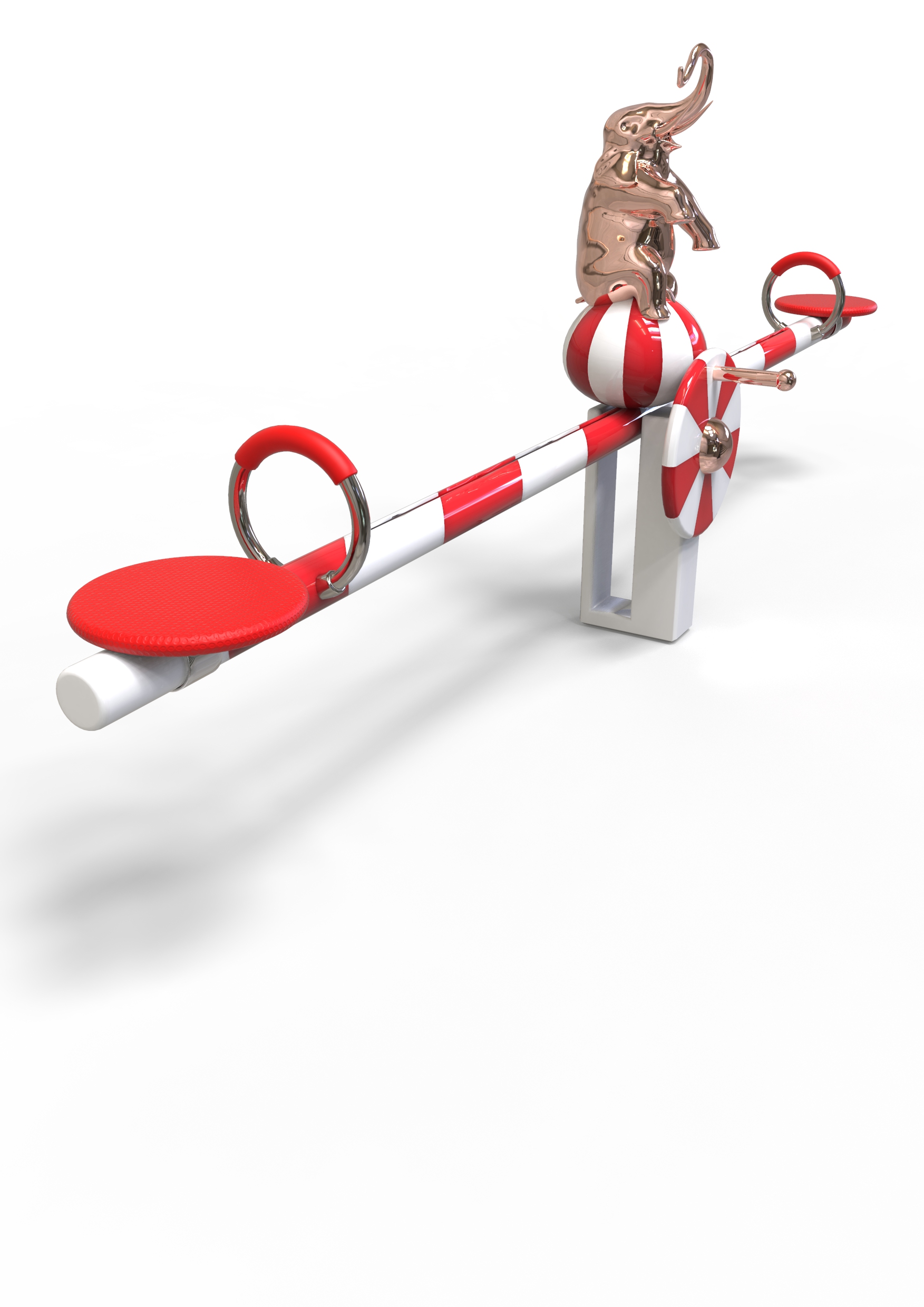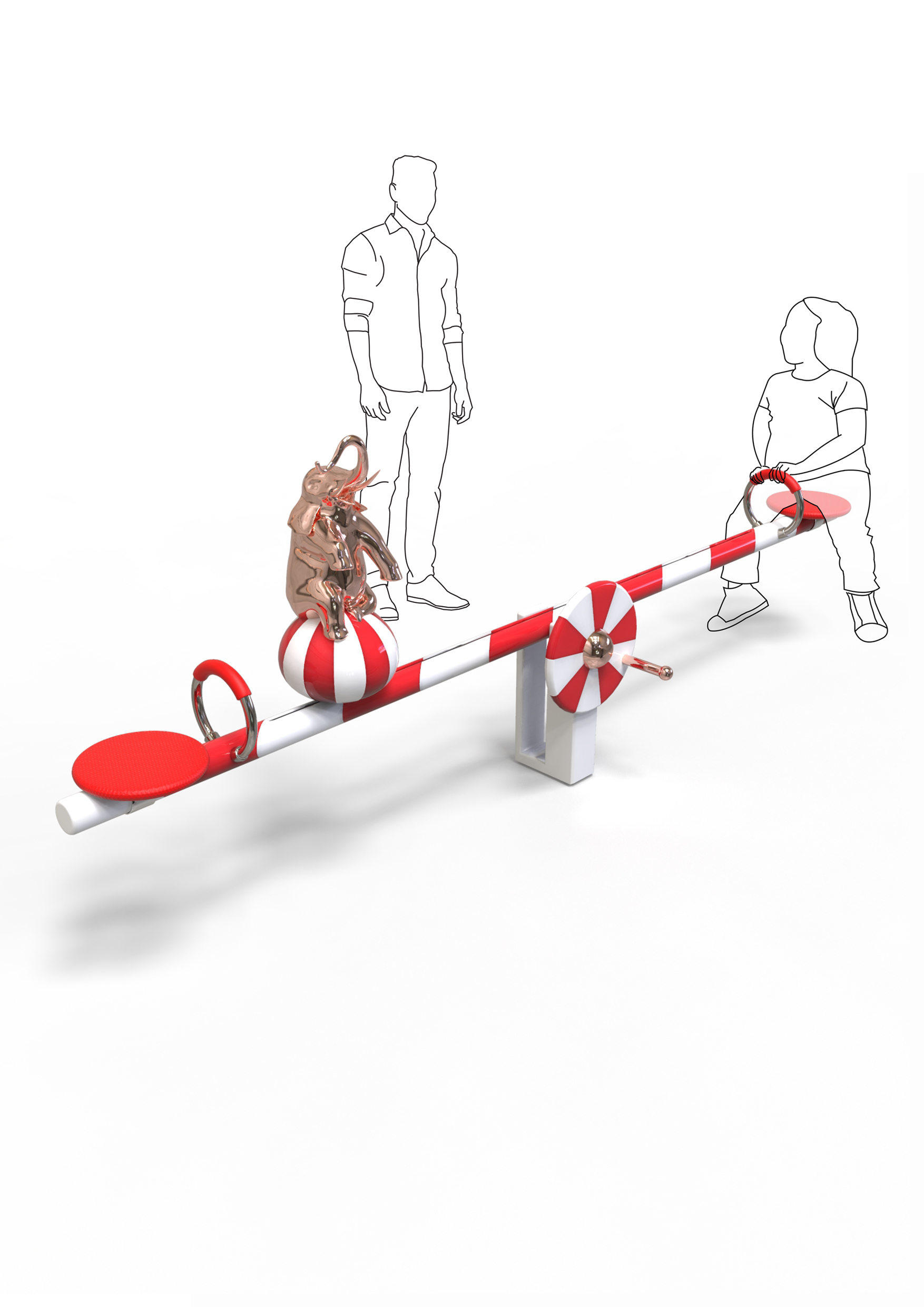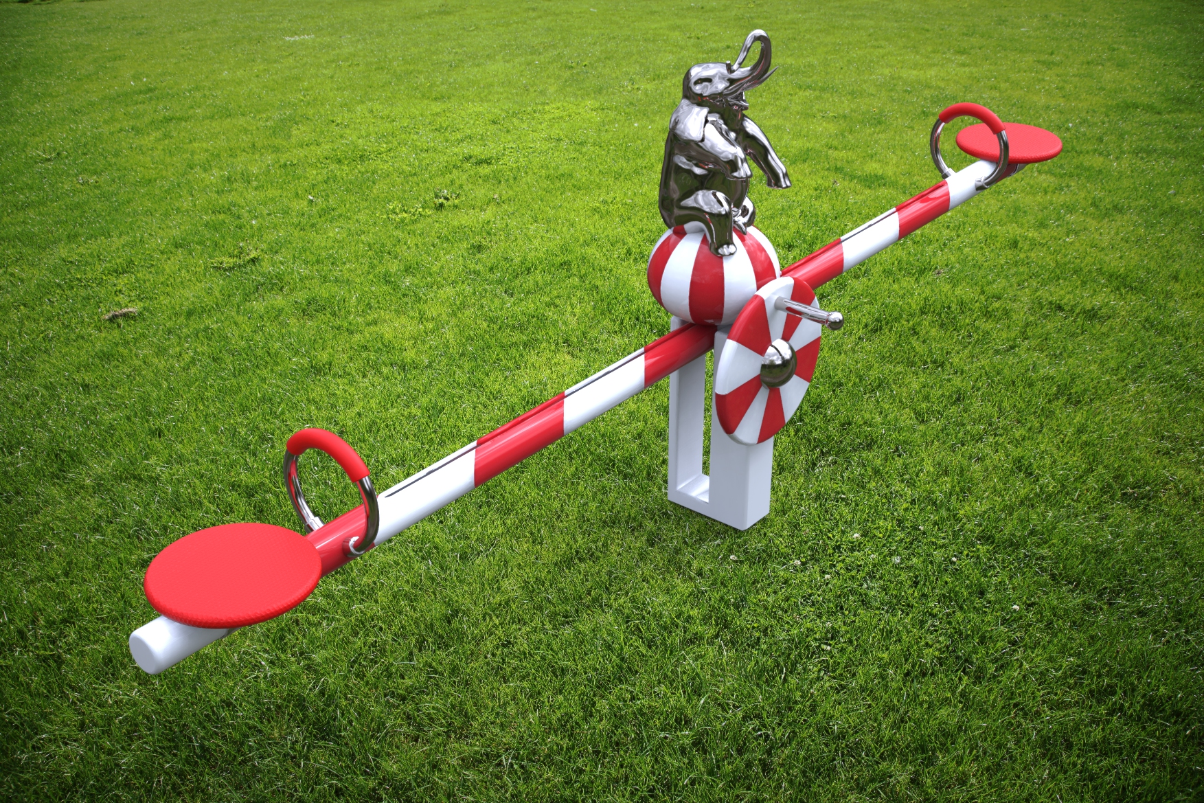 By turning the rotating handle positioned in front of the seesaw, the weight is displaced to the right or to the left, which ensures that the mutual load on the lever can be balanced. In its simplest form, the weights of an overweight child and a thin child can be equalized.