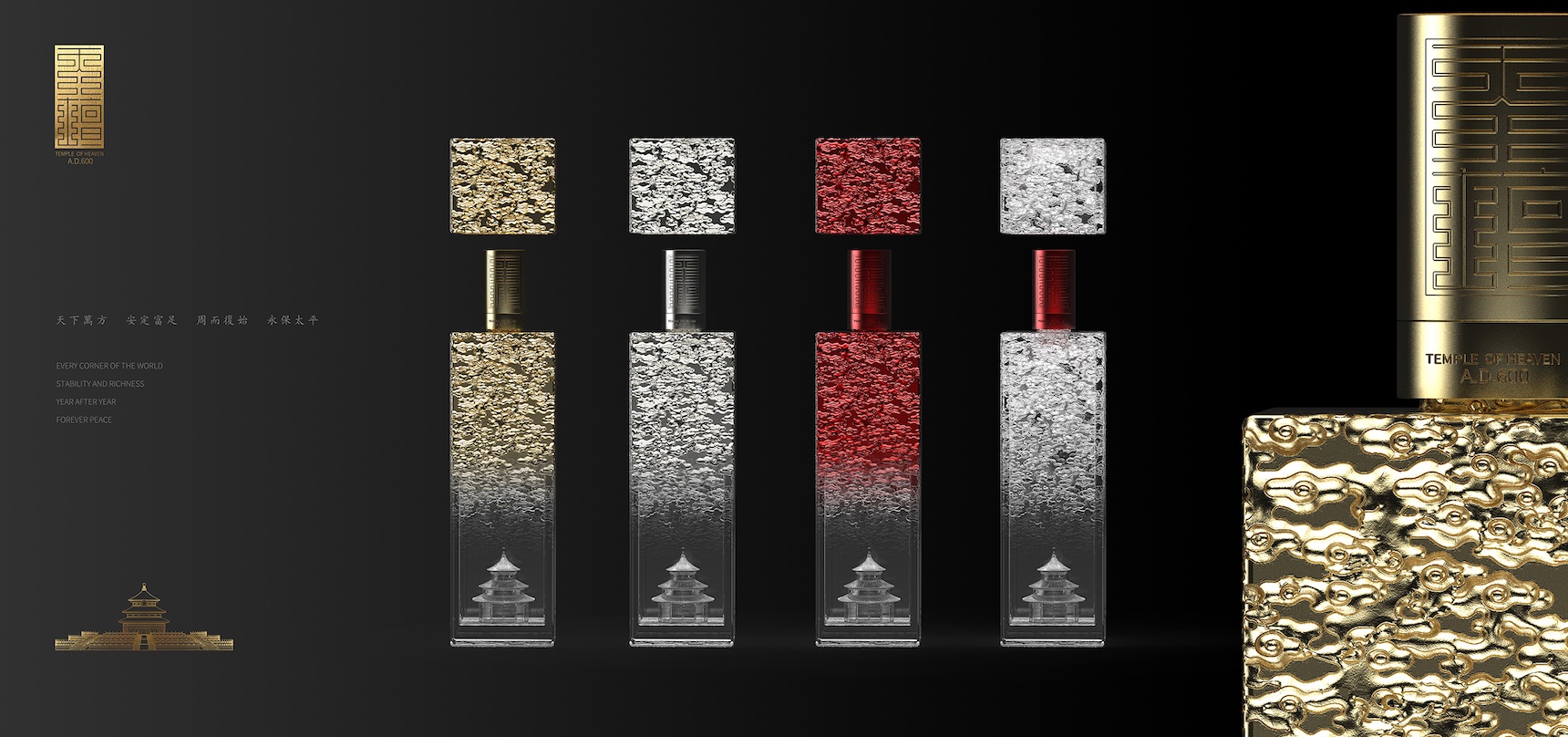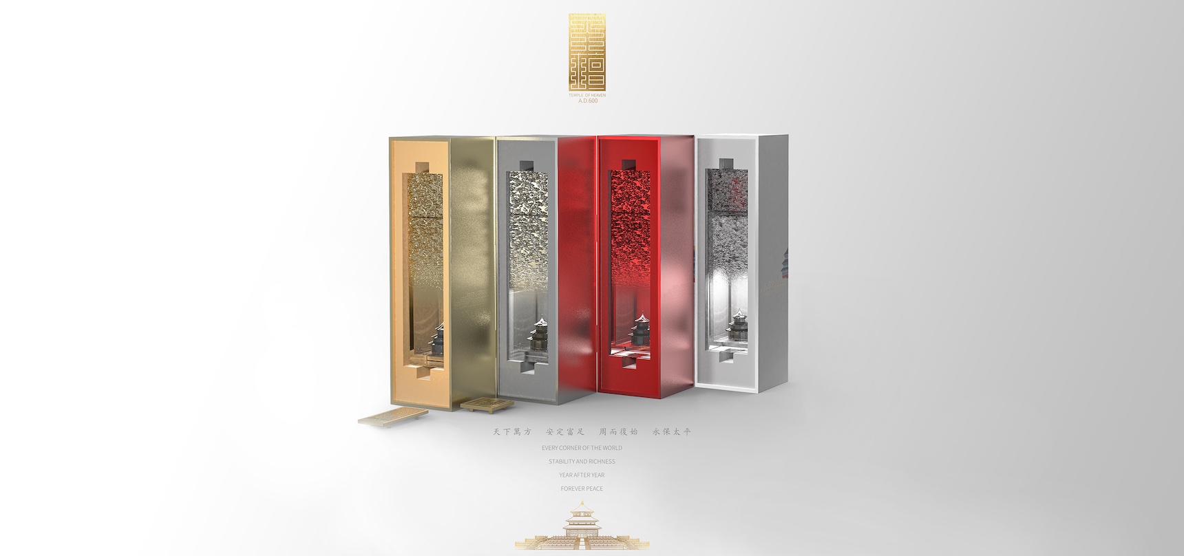 2020 is the 600th anniversary of the completion of the Temple of Heaven. For this major festival, a set of four bottles of commemorative liquor was designed.
