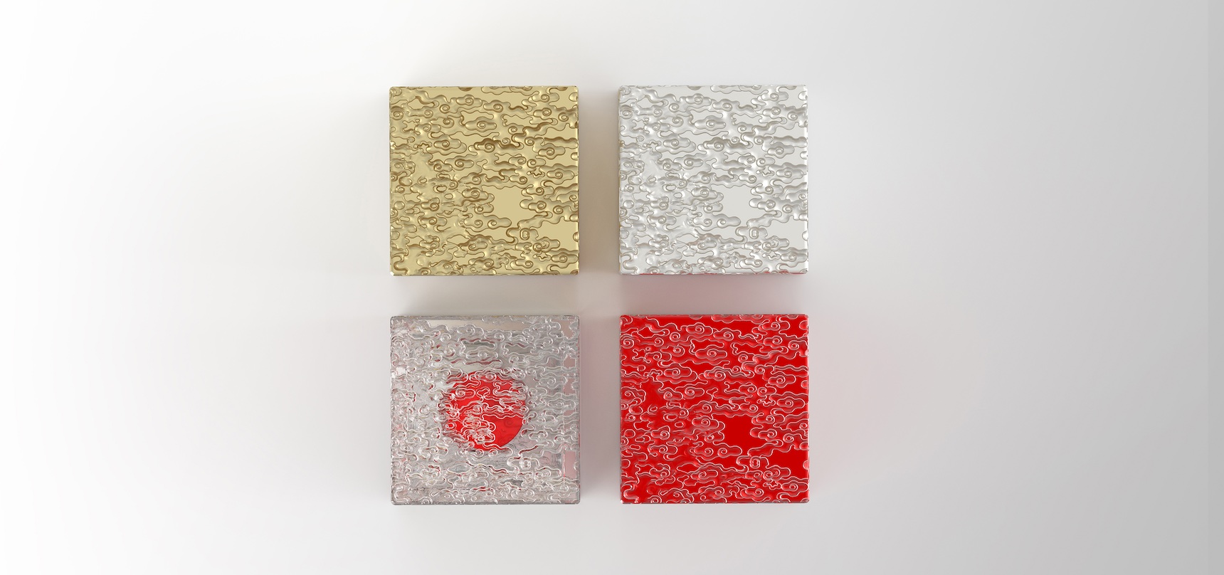 Its colors are transparent crystal, red, silver and gold。