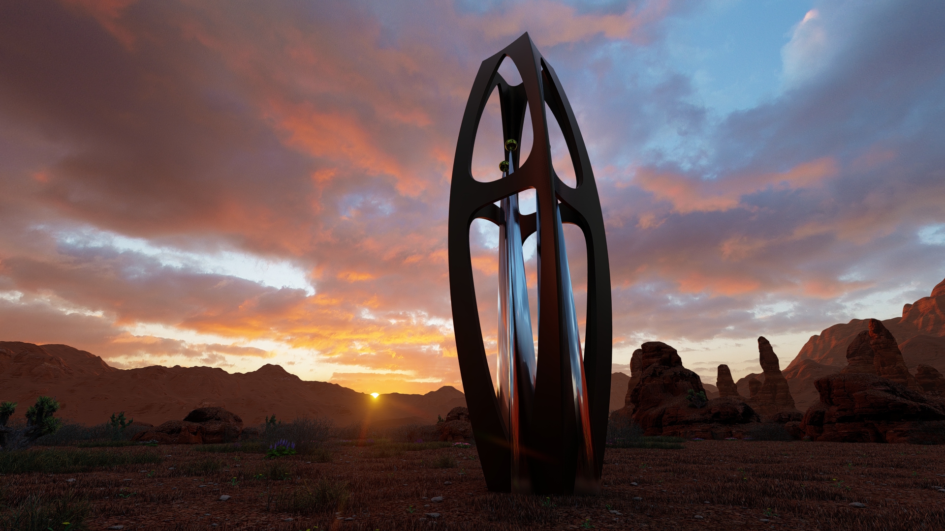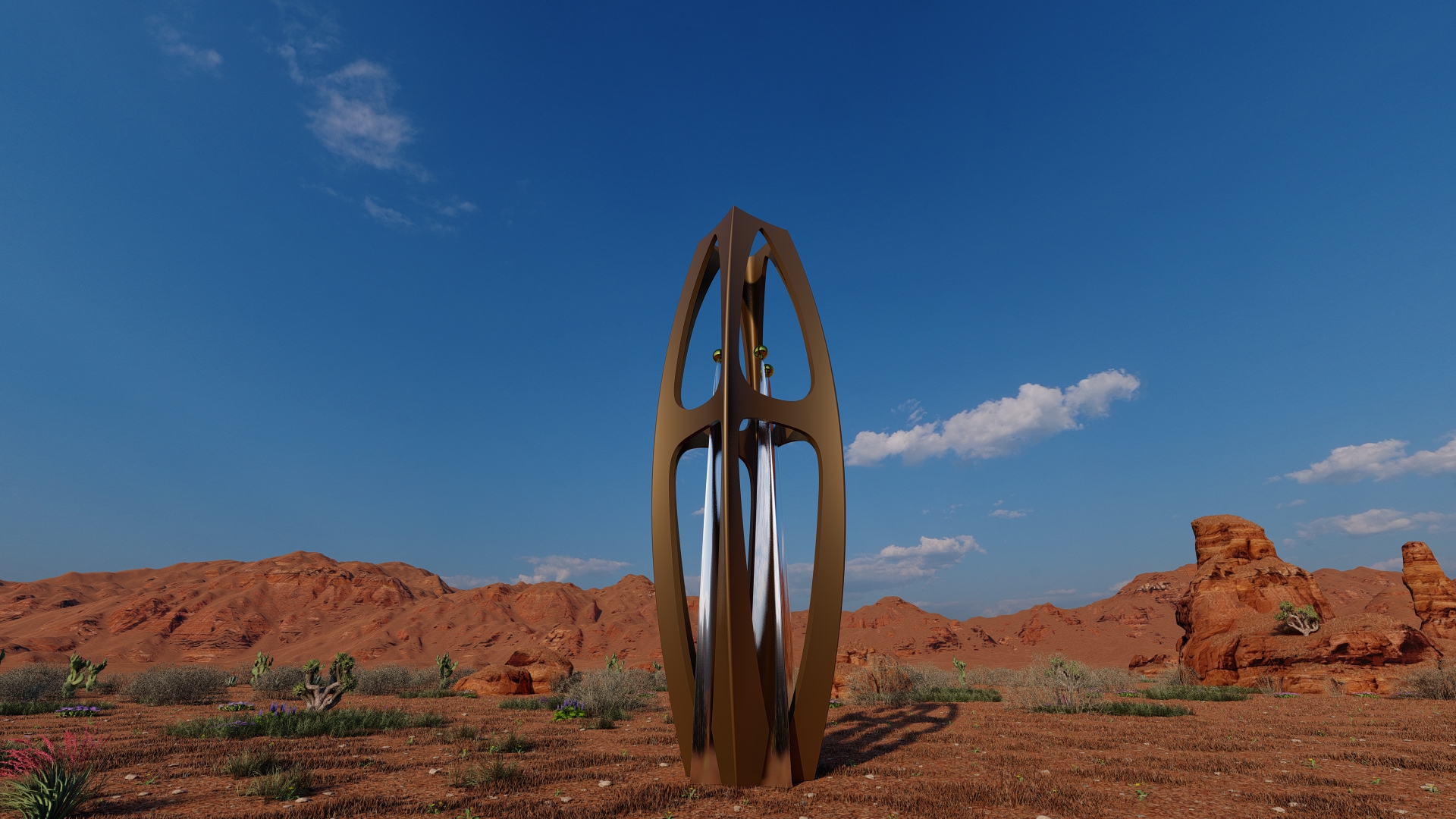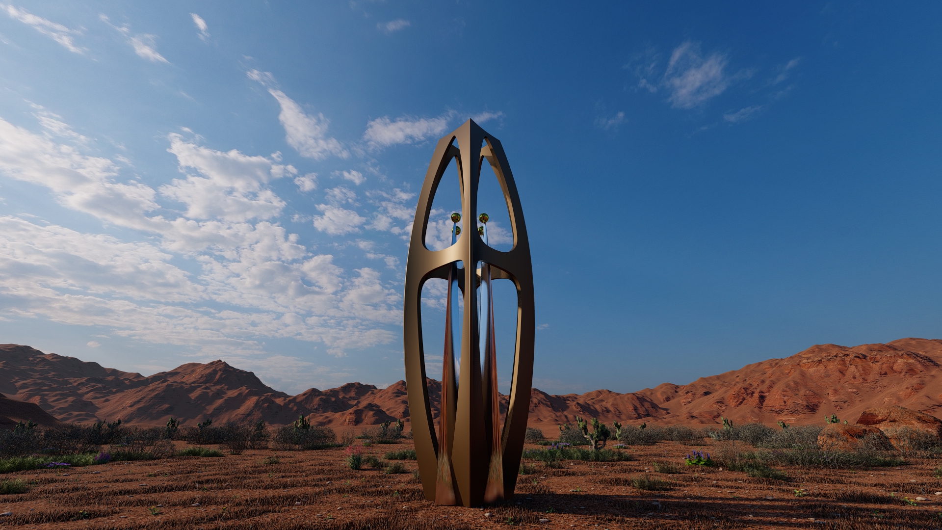 This piece of art blends technology and nature to express the theme of "journey to the future". It features a "space shuttle" design that represents human aspirations for technology and future migration. The artwork also incorporates the image of flying olive seeds, which symbolize the importance of protecting the natural environment for sustainable development. By combining technology and nature, the artist aims to inspire hope for a brighter future.