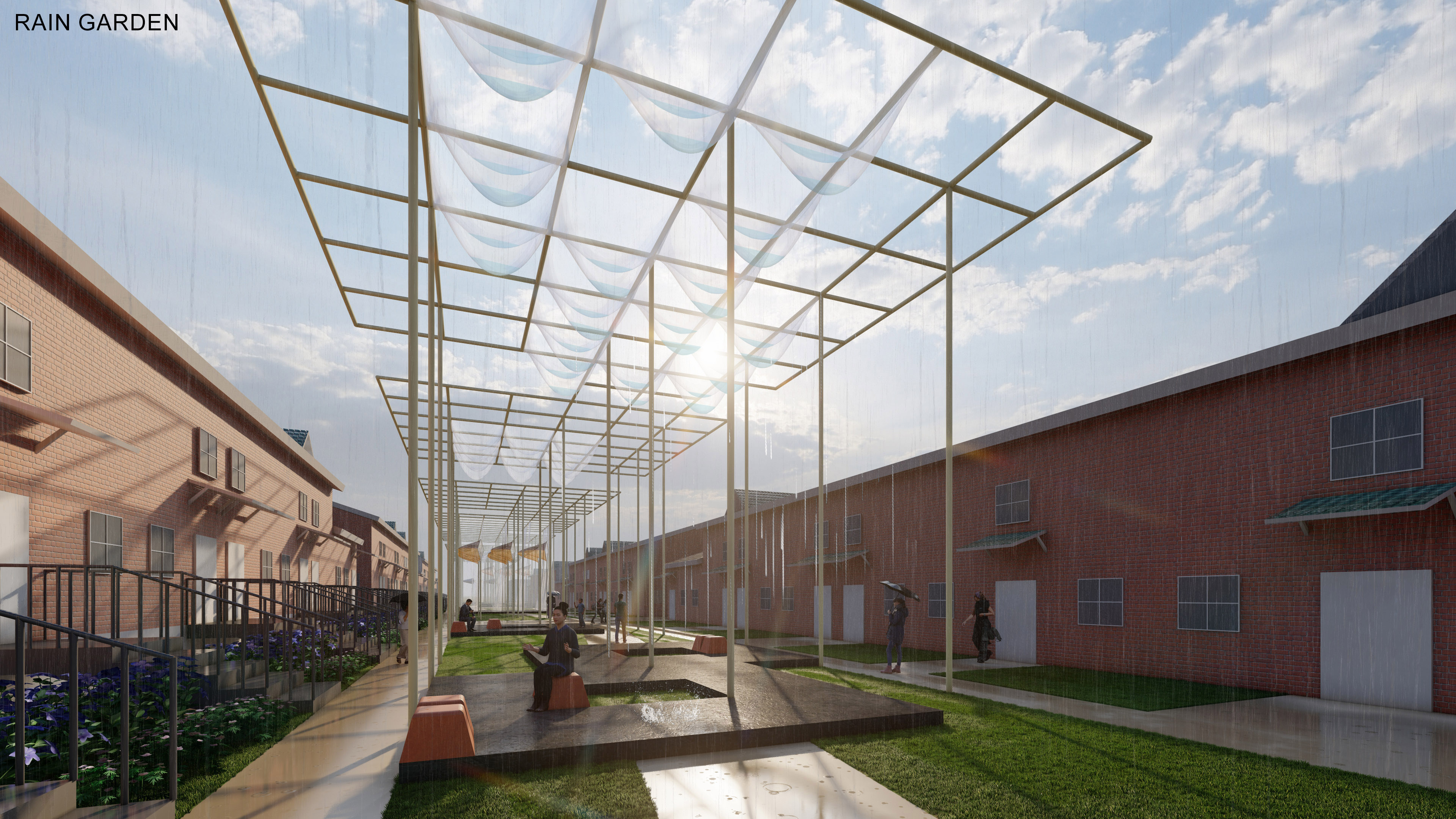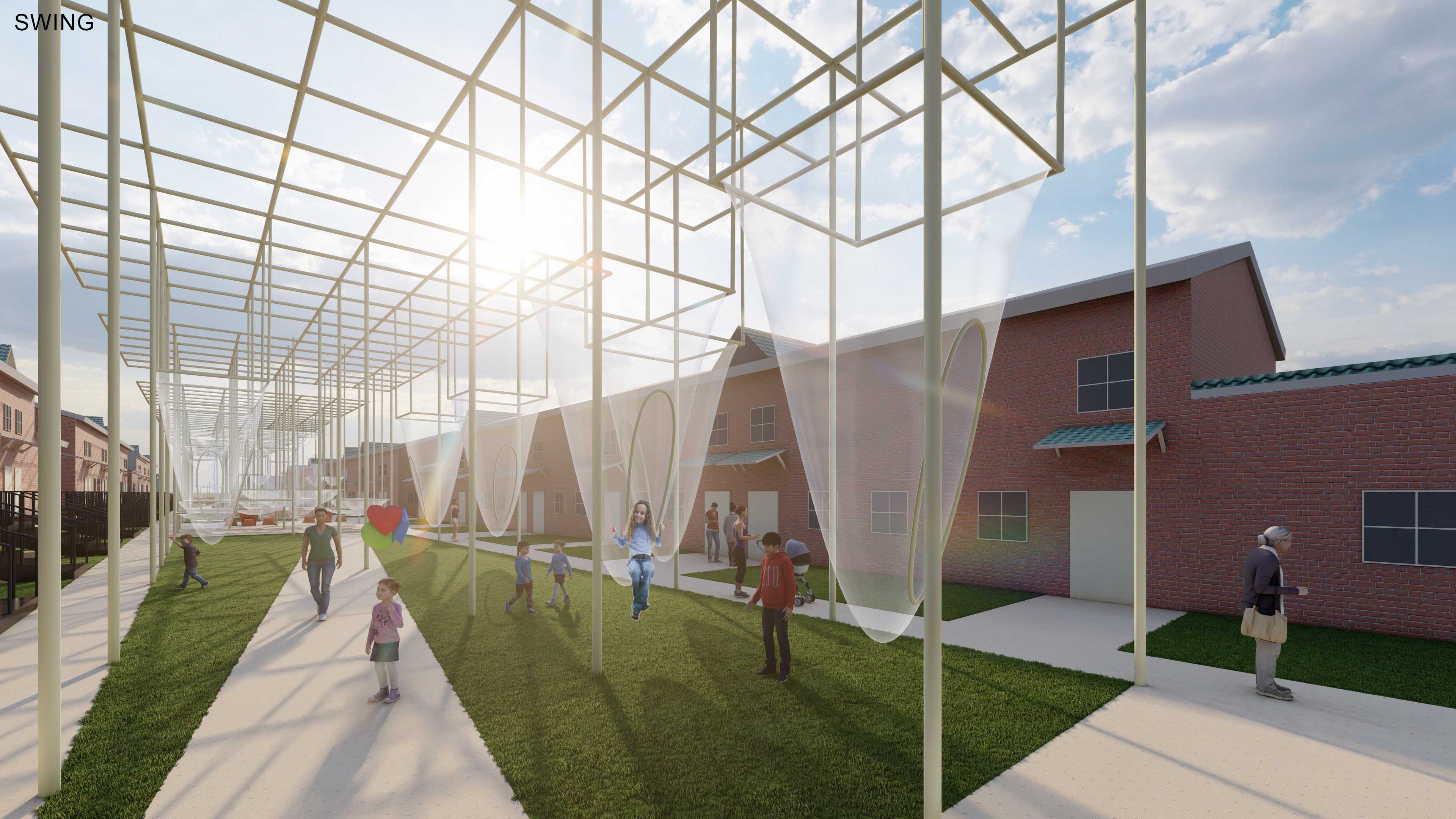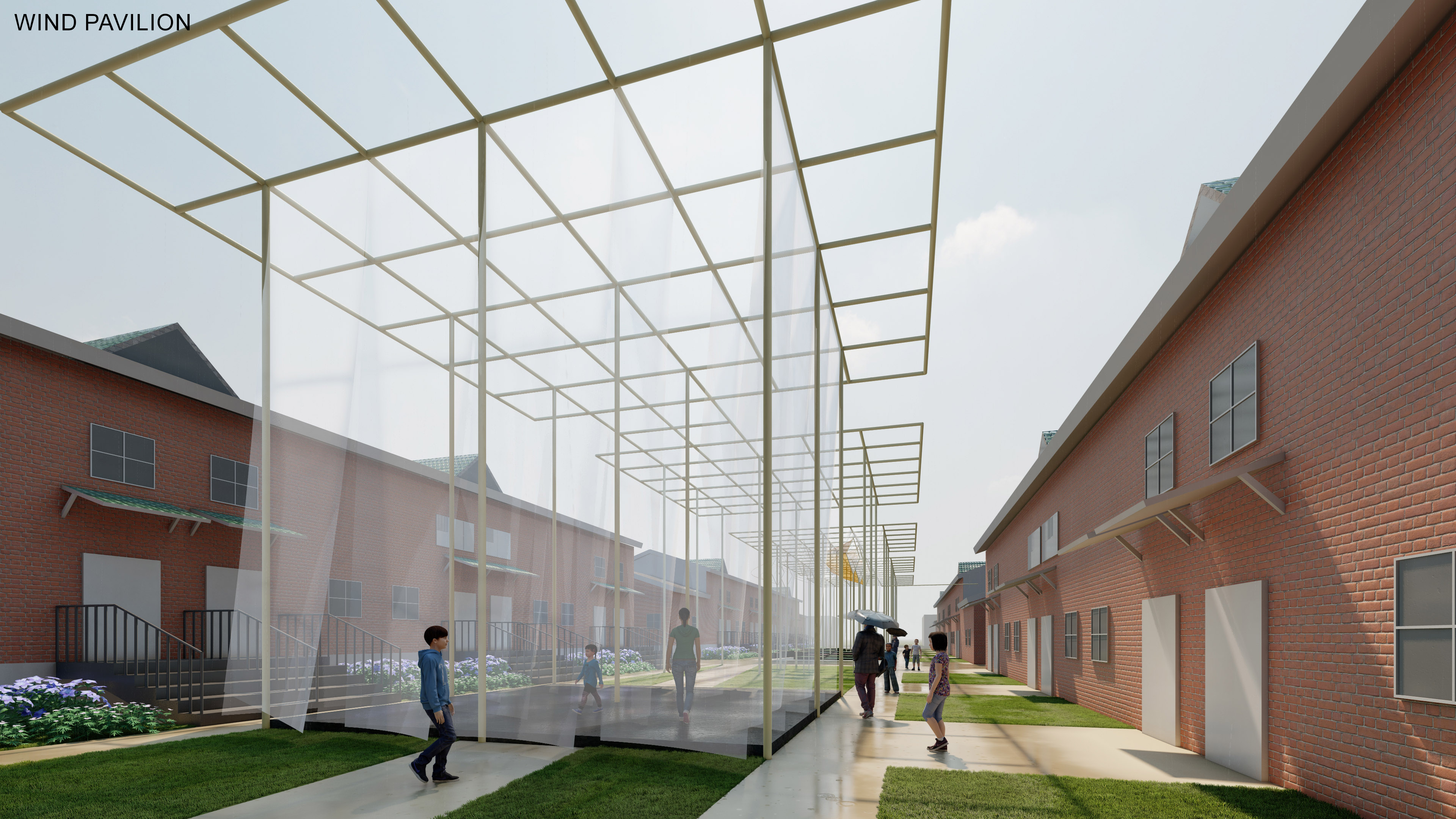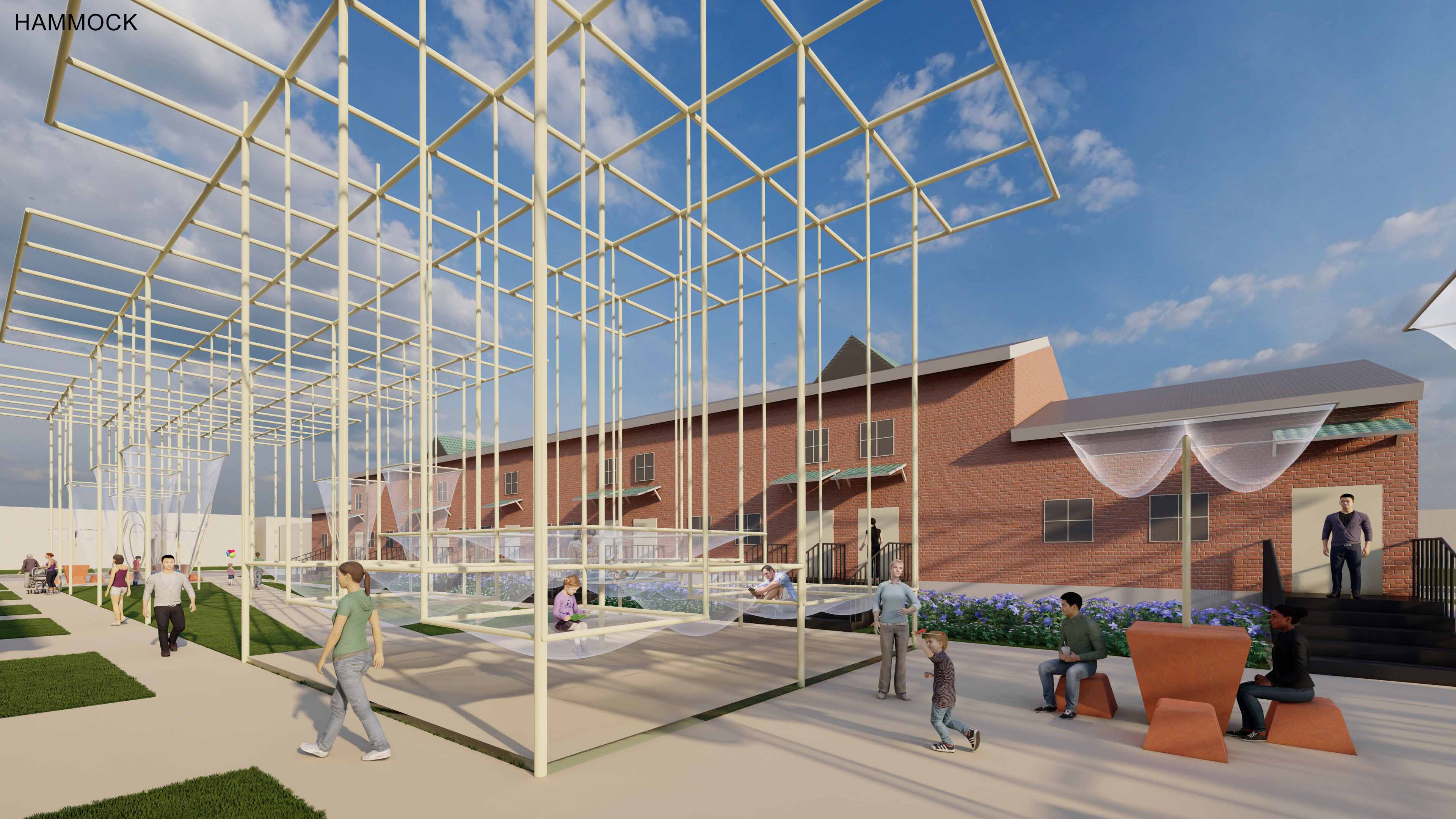 “Netscape” is an innovative and sustainable proposal for a public space in New Bedford, MA, a city known for its rich history and cultural diversity. Inspired by the fishing and textile industries as well as the growing wind energy sector, our project aims to revitalize the back yard in a social housing neighborhood by weaving together these unique elements, creating a dynamic, functional, and adaptable public space.