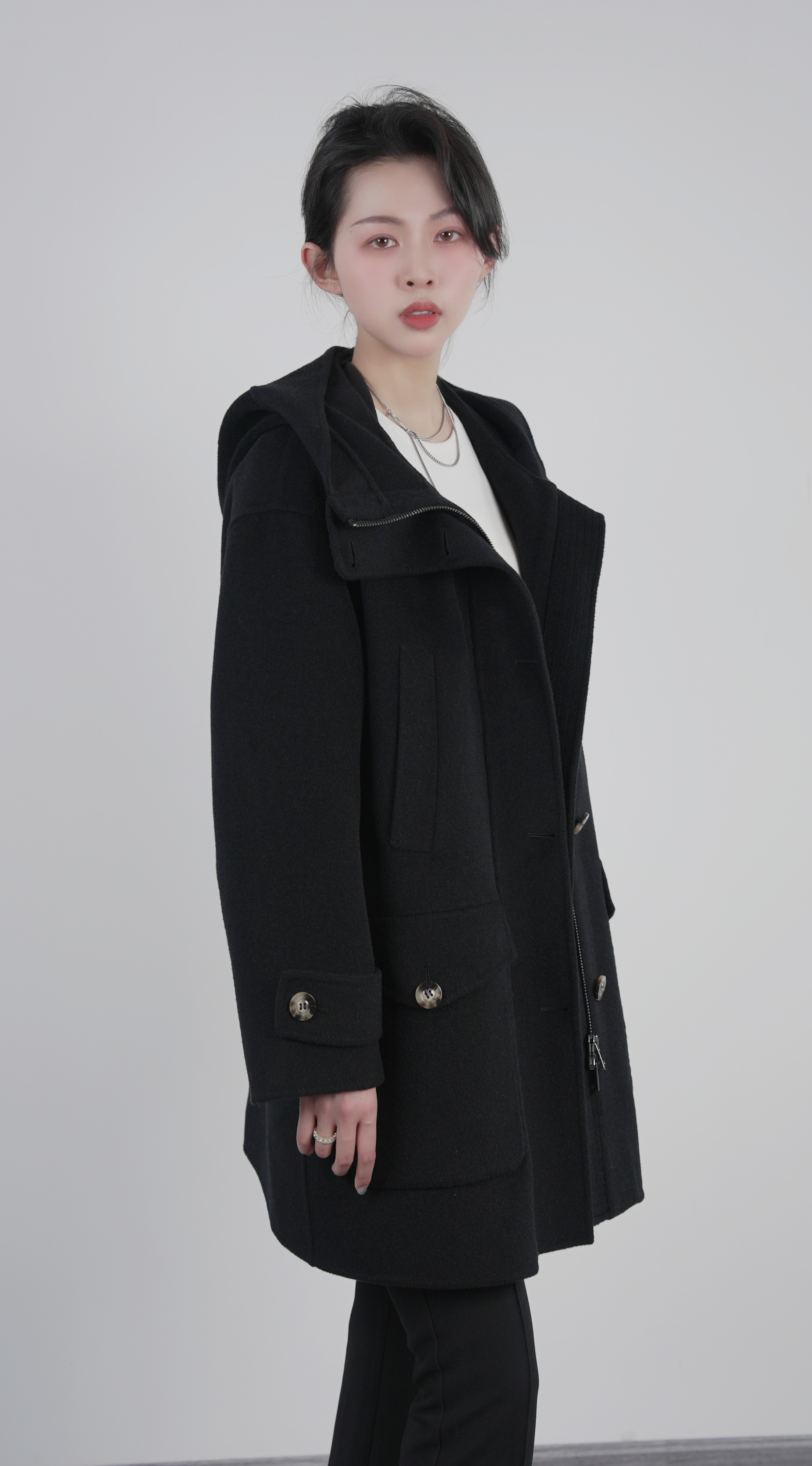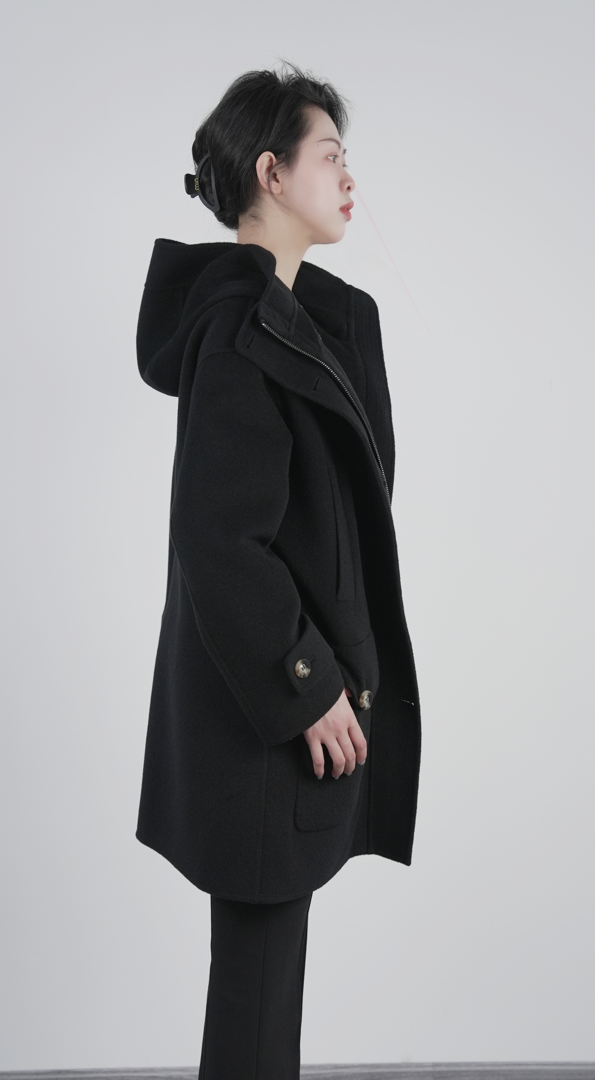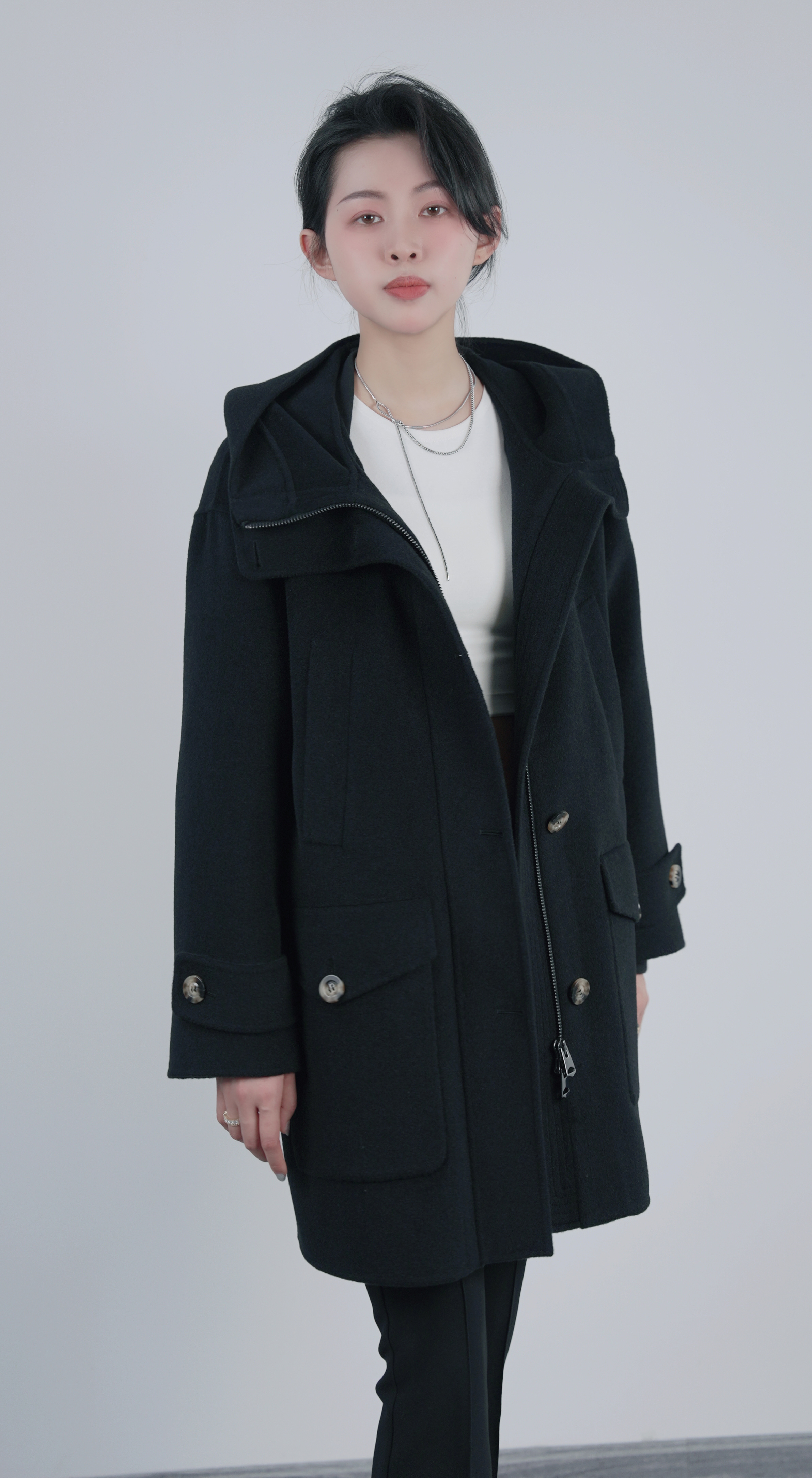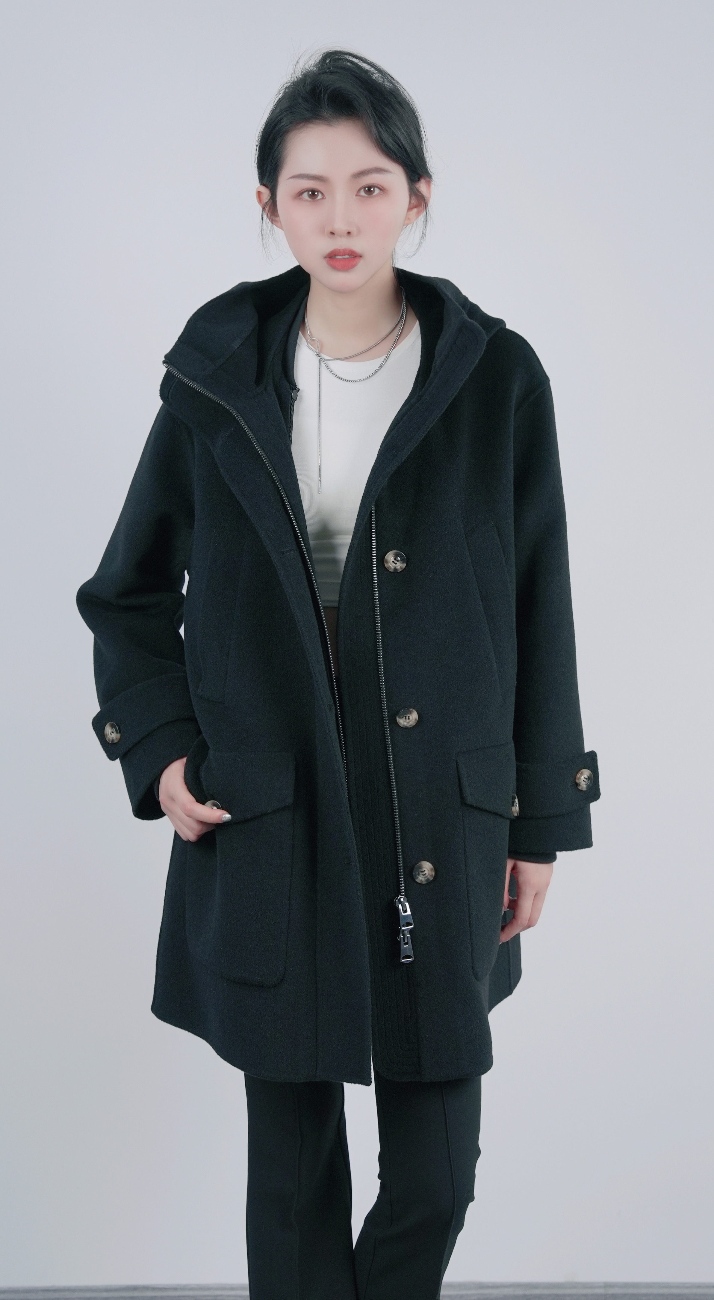 This Camel Hair Warm Coat combines the elegance and intellect of camel hair coats with the casual and confident look of a parka. The design emphasizes a people-centric minimalist approach, rejecting complexity and embracing a pure and simple sense of ease. It is both practical and warm, allowing for versatility in wearing. The natural temperature control, anti-static properties, and excellent breathability of camel hair prevent the discomfort caused by heavy winter clothing and sweating, providing a lightweight, warm, and luxurious feel.