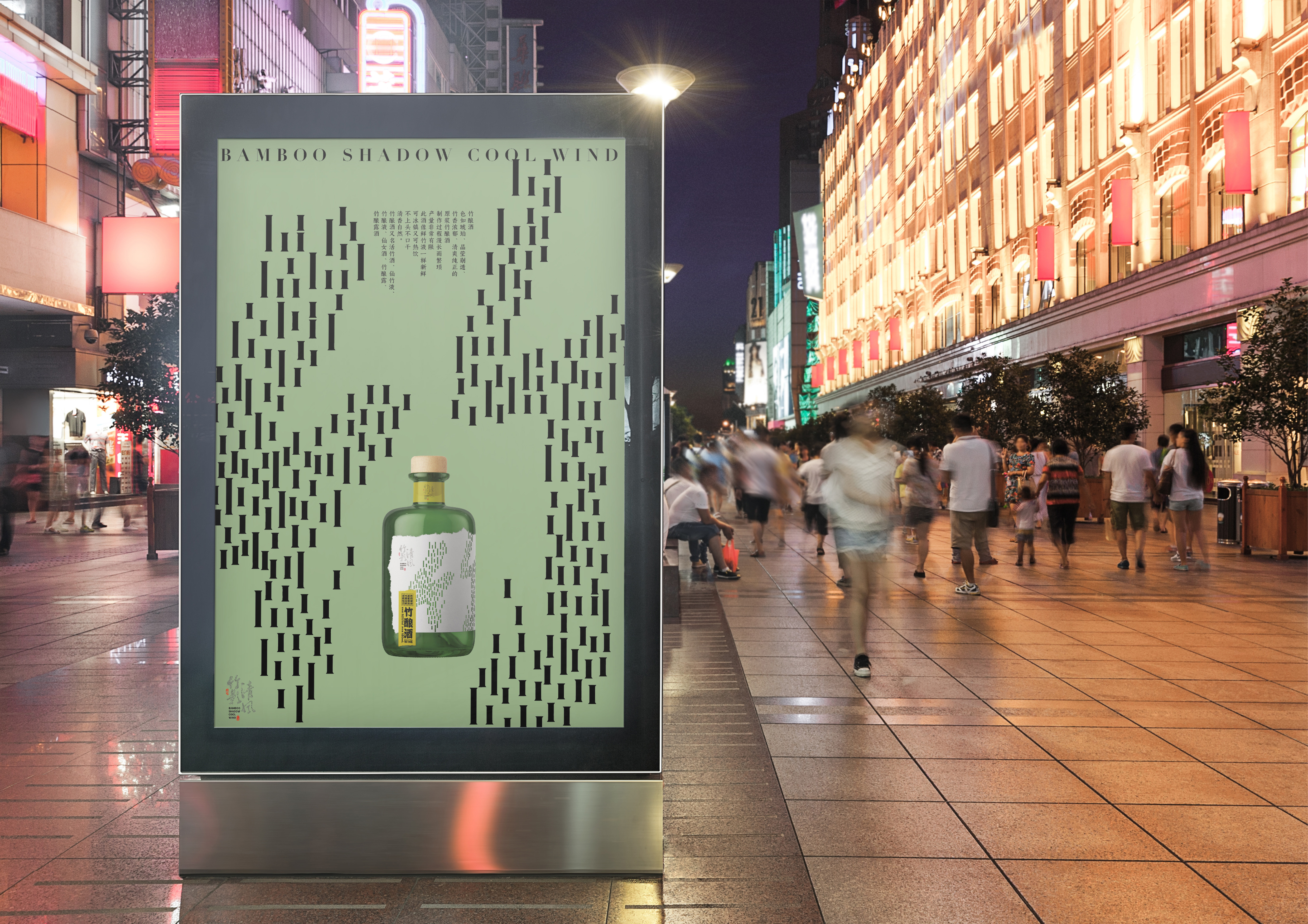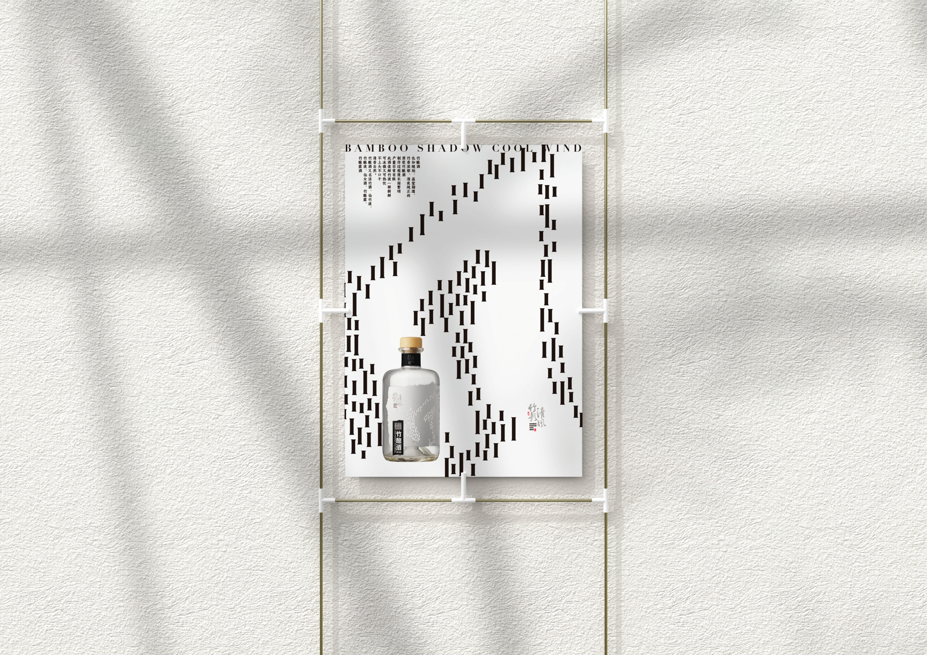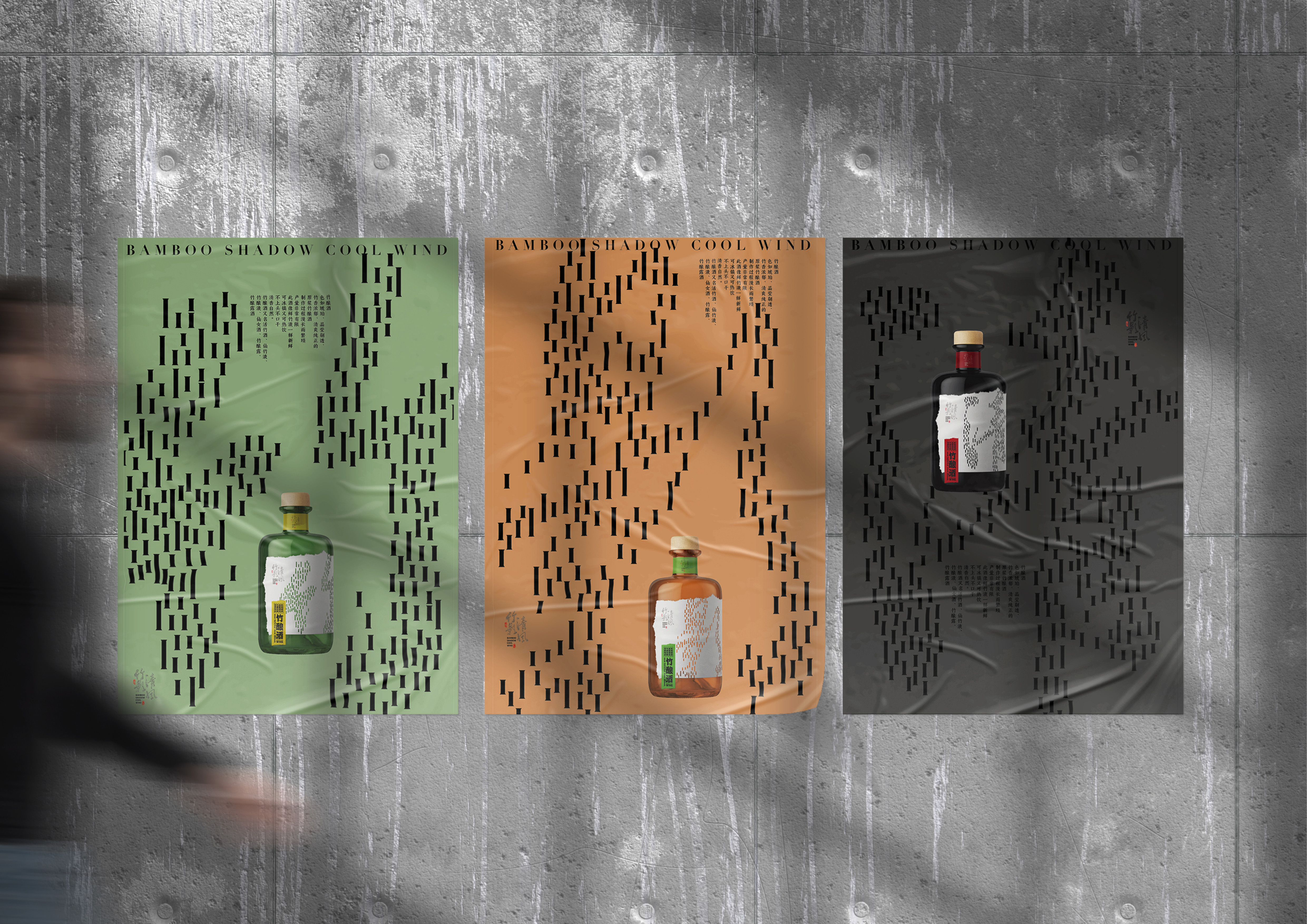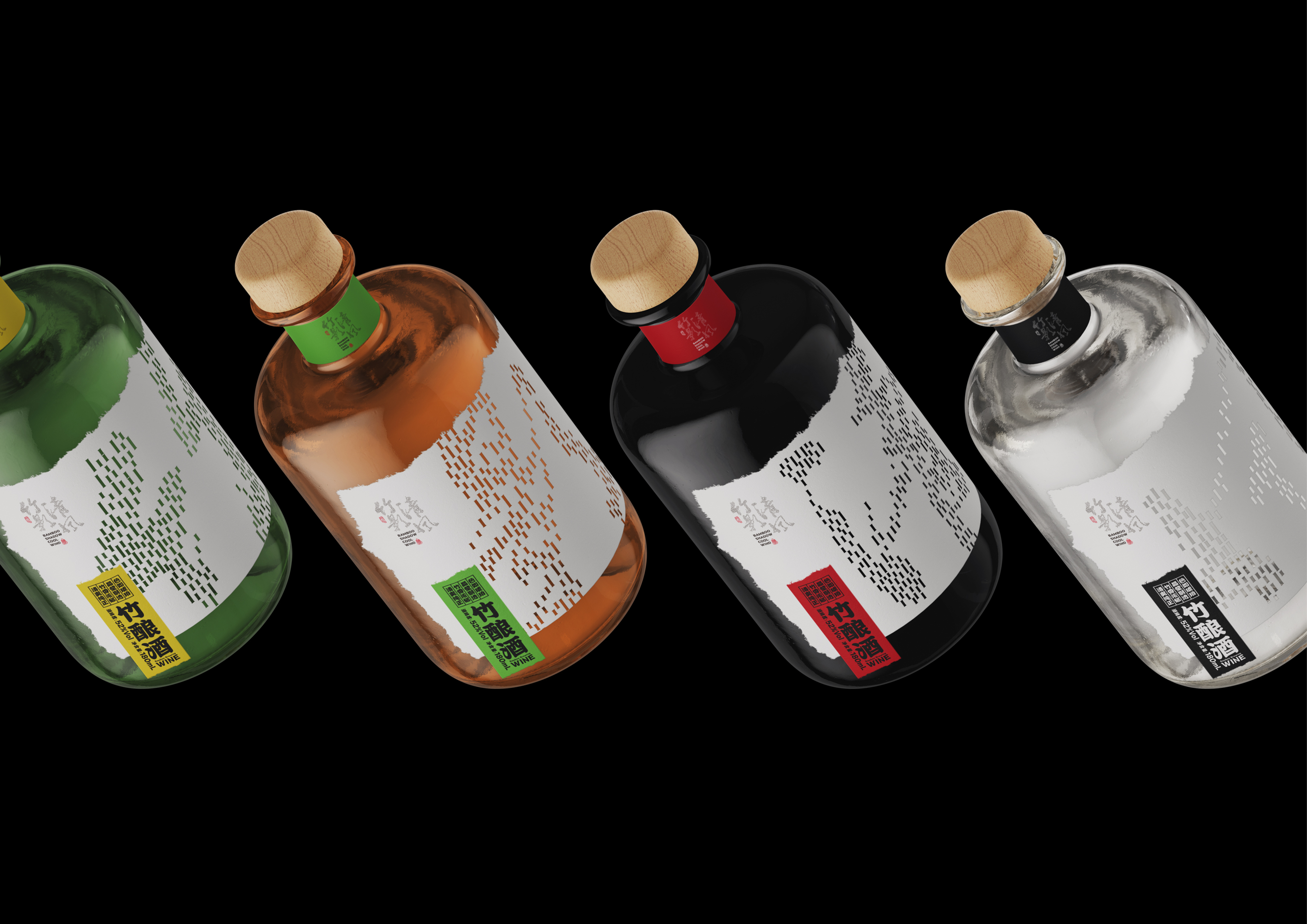 The brand word "Bamboo Shadow Cool Wind" is spliced through the form of bamboo, better reflecting the bamboo-based brand tone of "Bamboo Shadow Wind". The hollowing process on the bottle sticker and the hand torn bottle sticker imply that this product is purely natural, purely handmade, pollution-free and purely natural winemaking. It makes consumers' eyes bright, thus generating curiosity and purchasing power.
