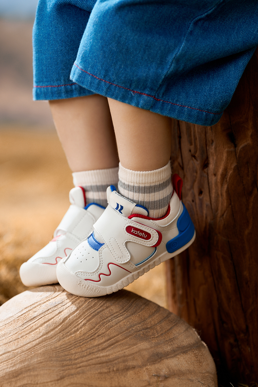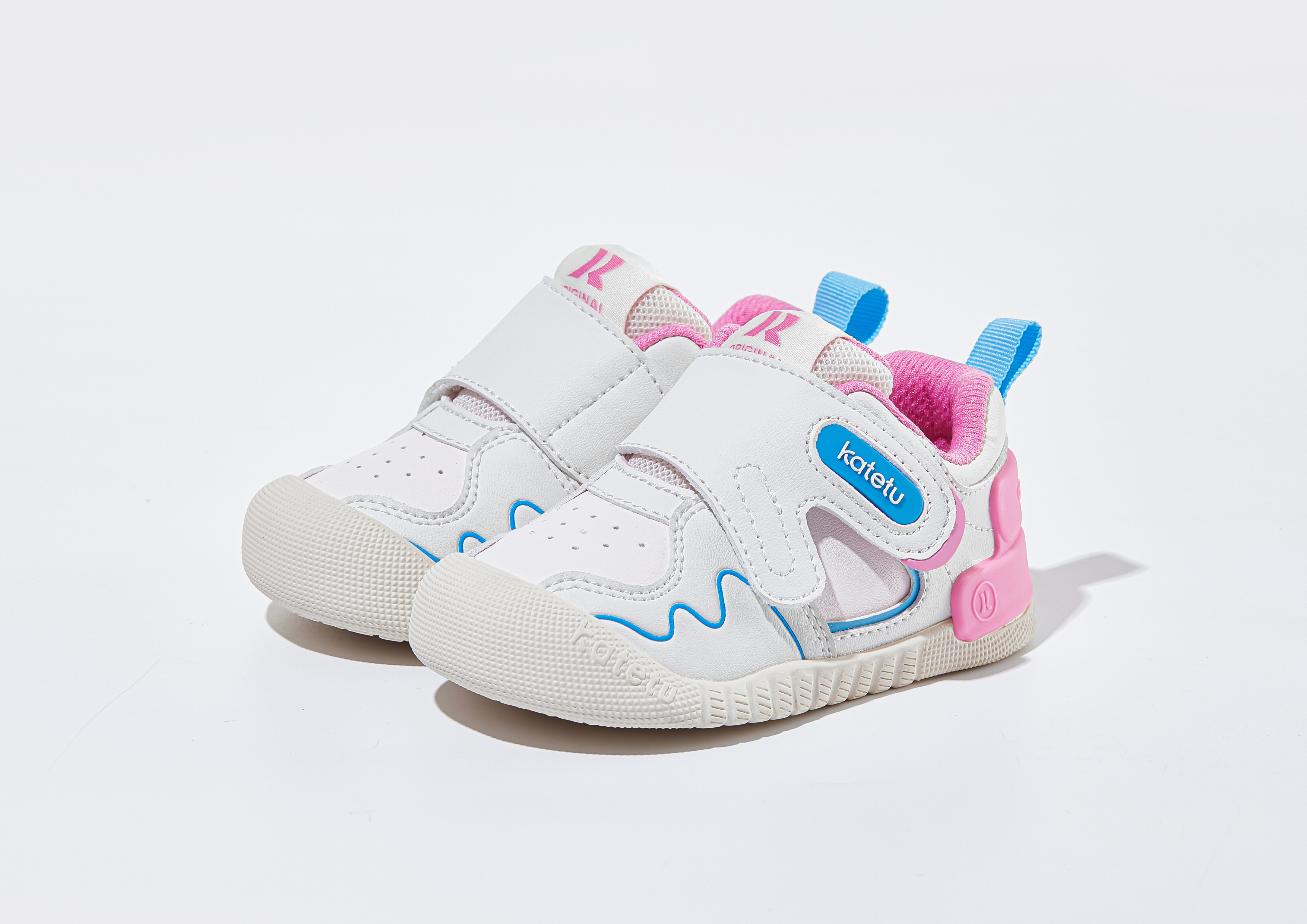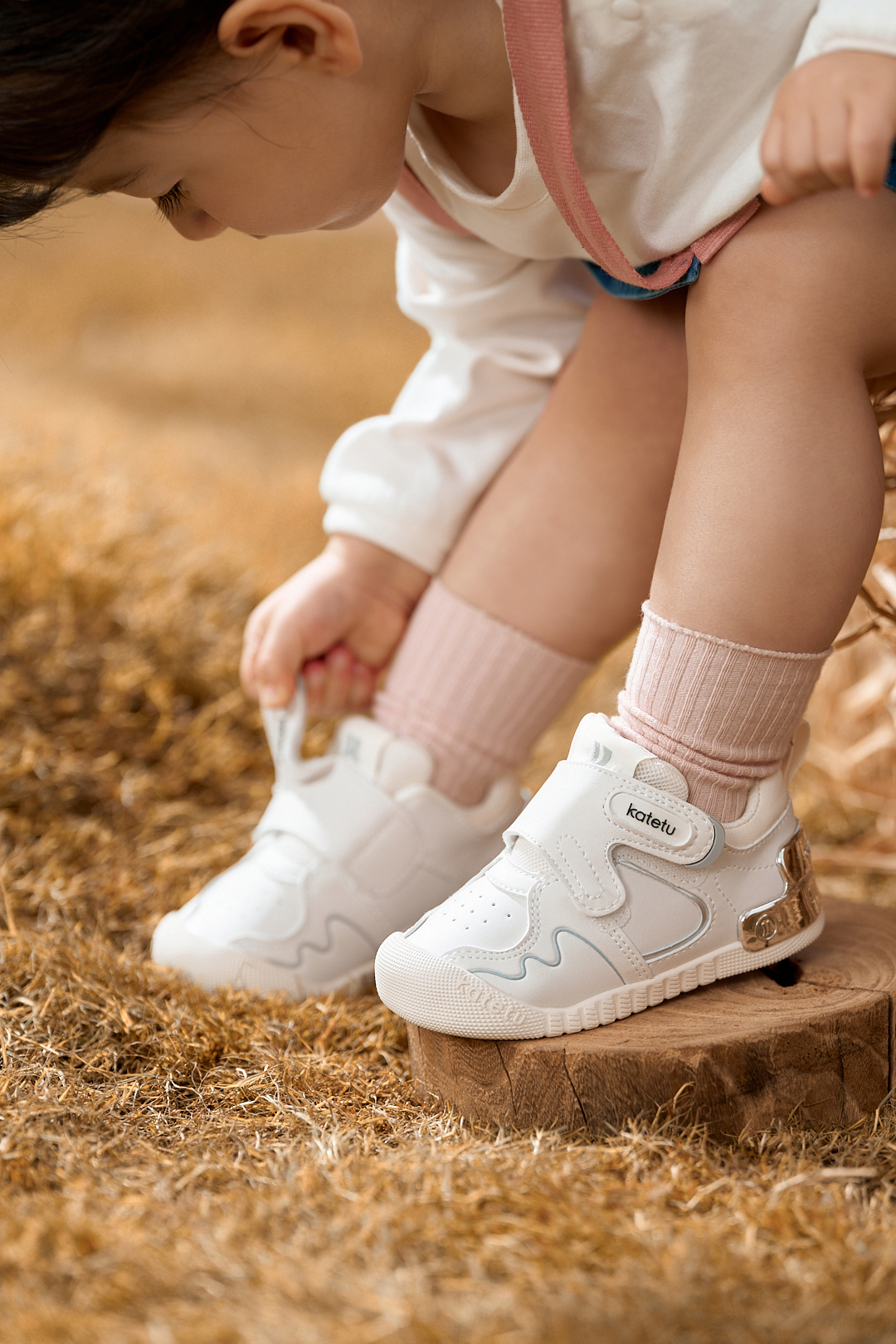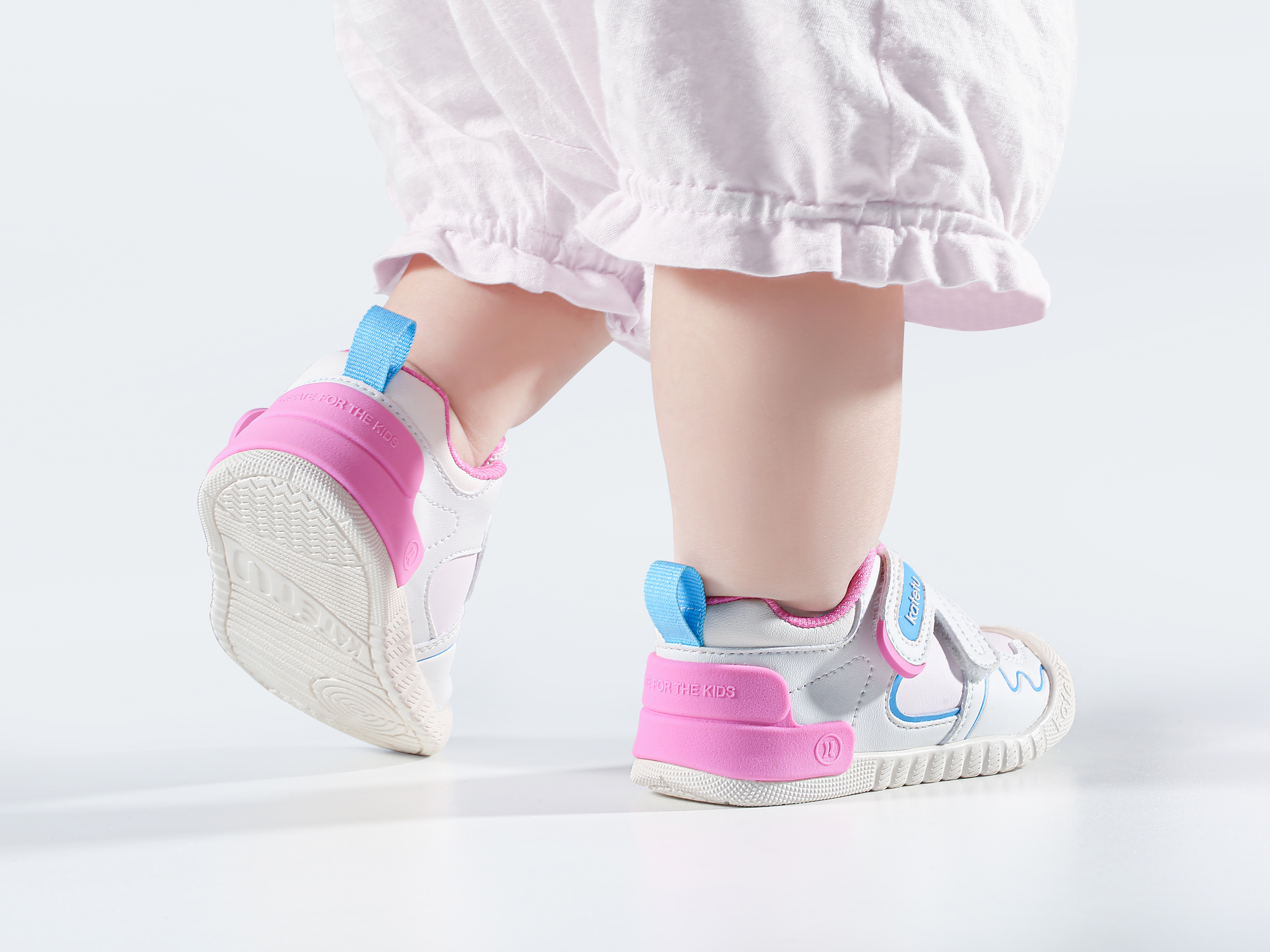 X3CE016 K-shield Protective Shoes highlight the significance of walking safety. The unique "K shield" in the heel area forms a supportive structure resembling the letter "K" surrounding the ankles, heels, and shoes, effectively safeguarding and stabilizing the ankles to prevent falls caused by balance issues. The heel area also incorporates structural parts for ankle stabilization, providing doubled support and protection. Its full-wrapping toe caps can comprehensively protect the child's toes and forefoot from kicks or collisions, further lowering the risk of injuries when navigating the process of learning to walk.