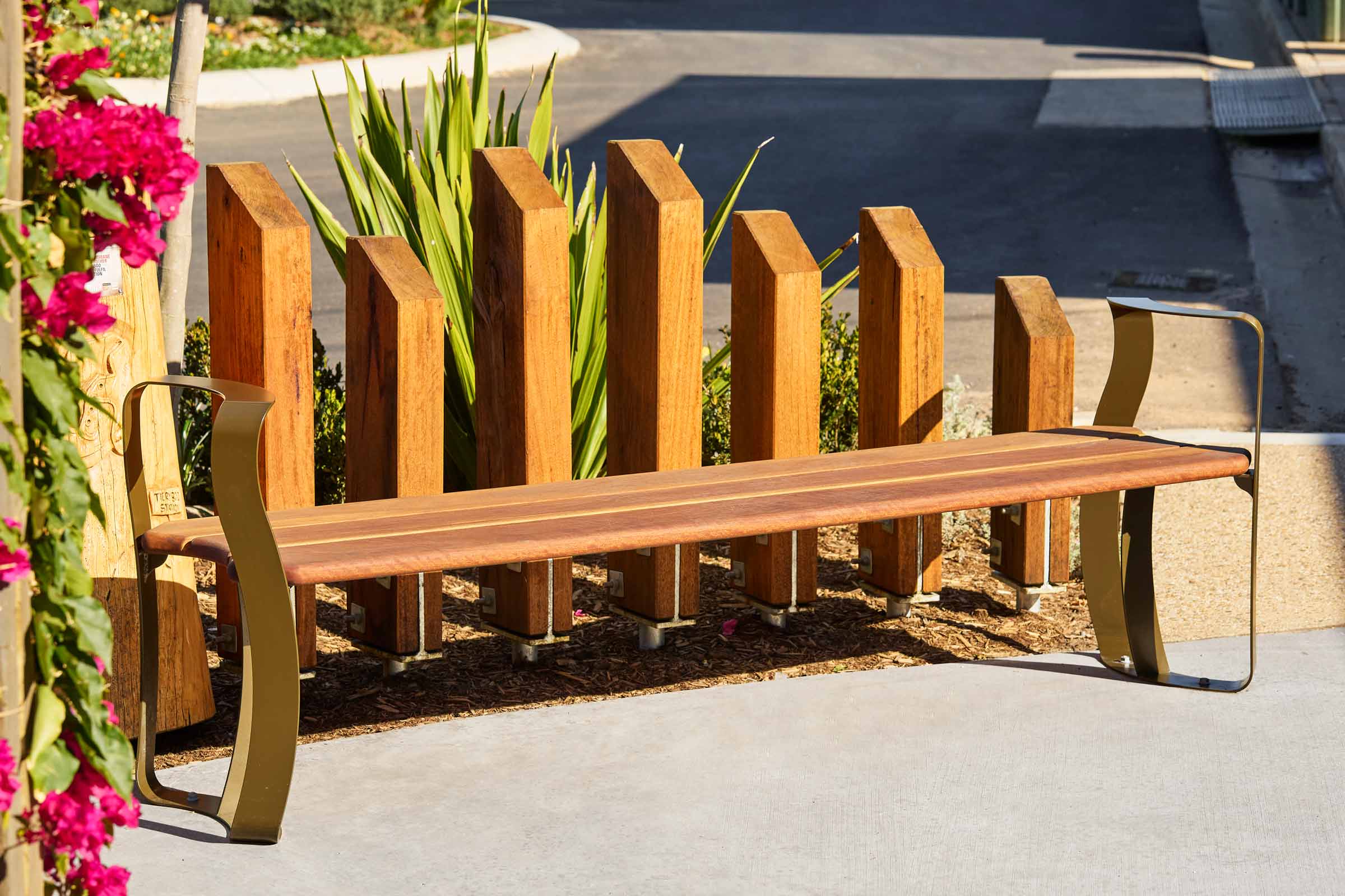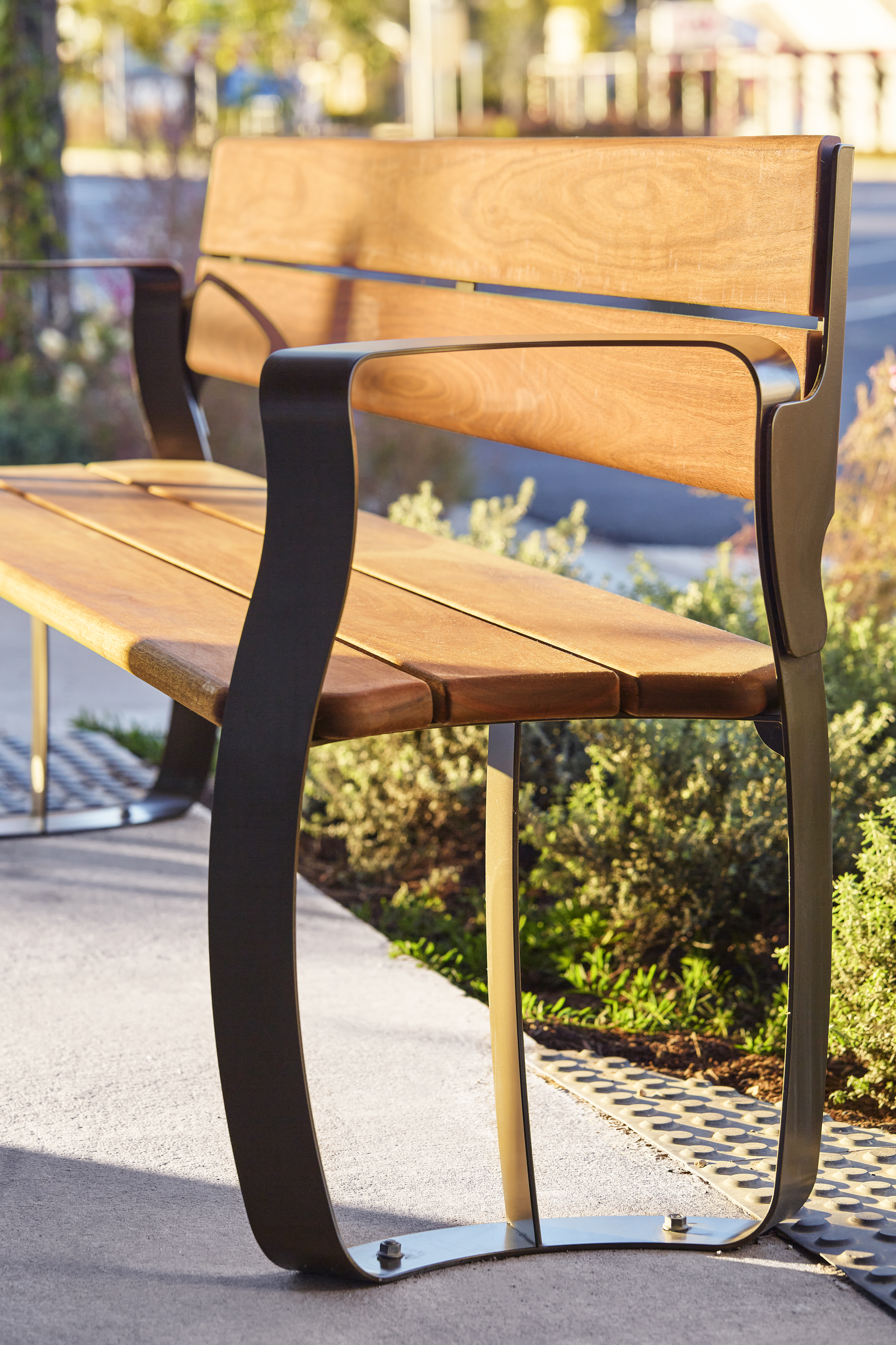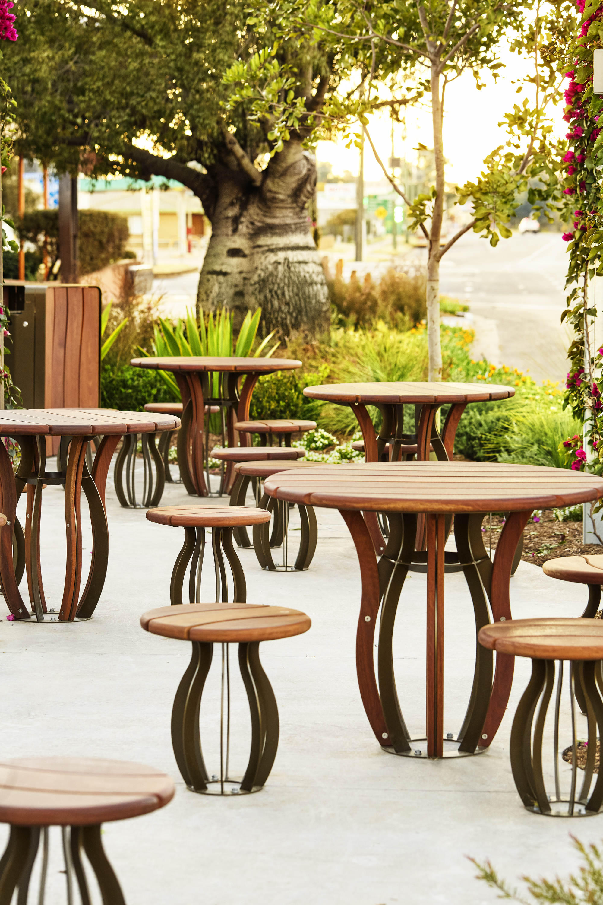 Street + Garden were engaged to develop a unique suite of furniture for the revitalisation of the Miles CBD. The cohesive range of products was to include; Benches, Bin Enclosures, Bollards, Stools, Circular Tables and Curvilinear Seating.