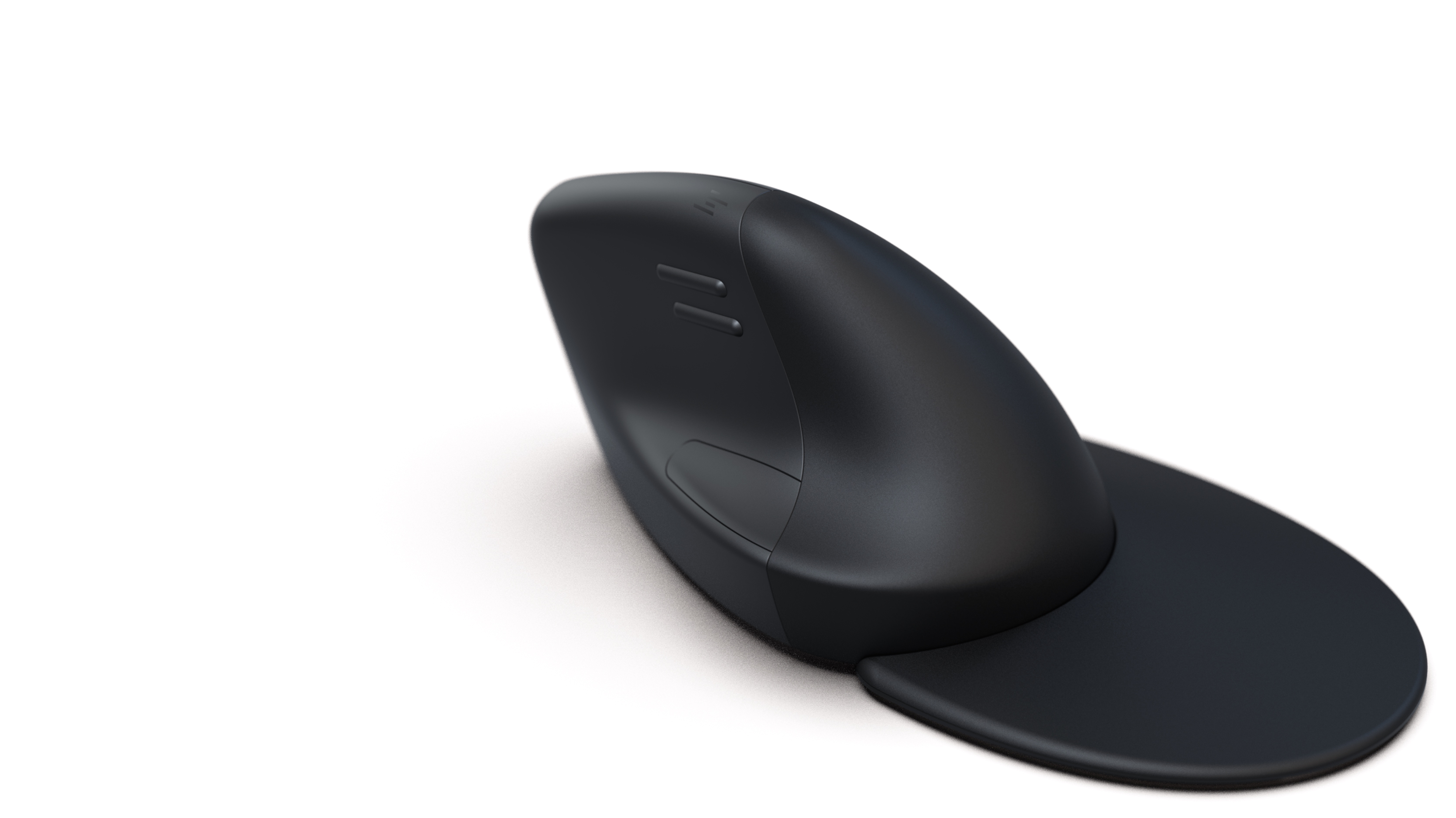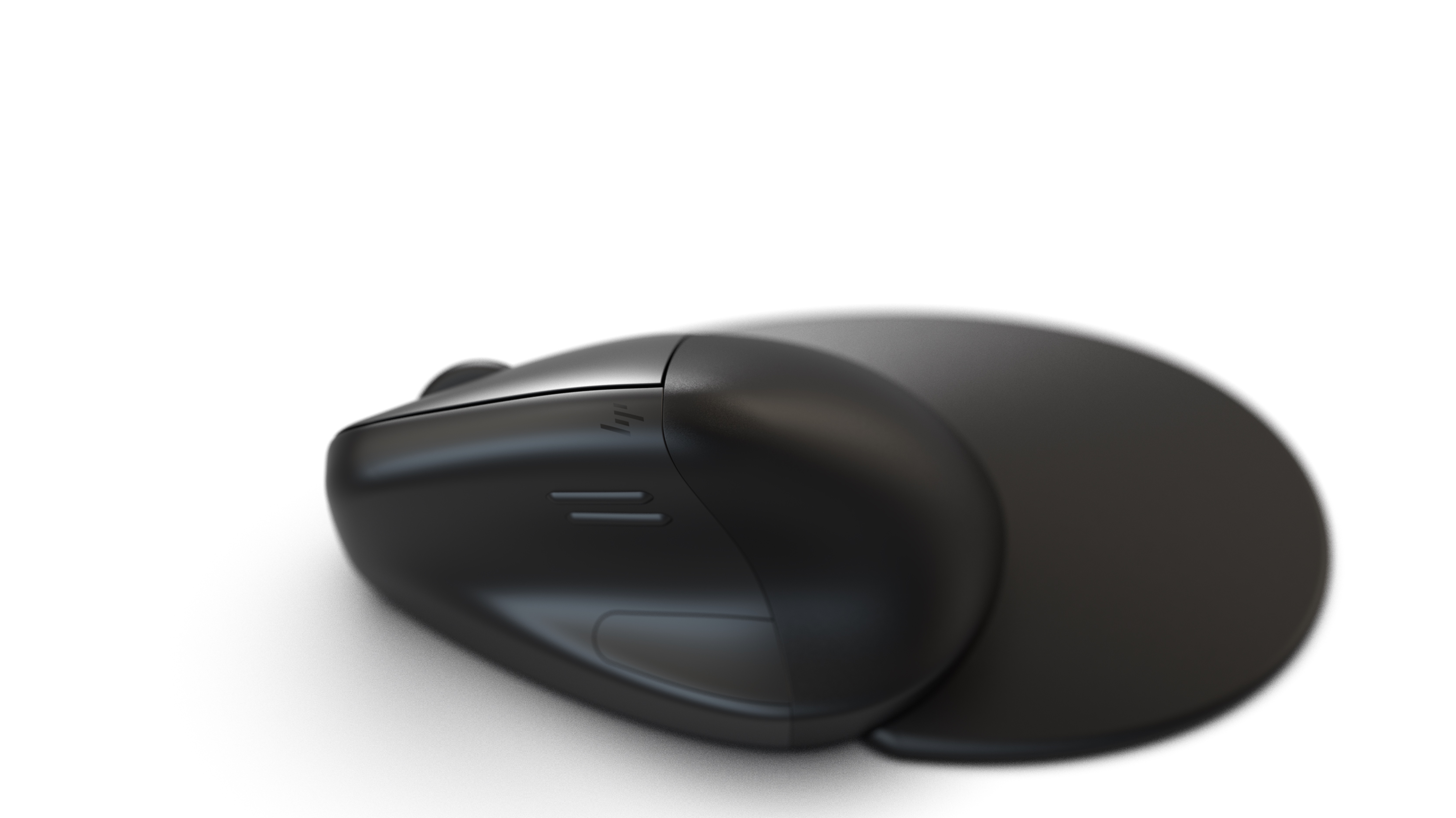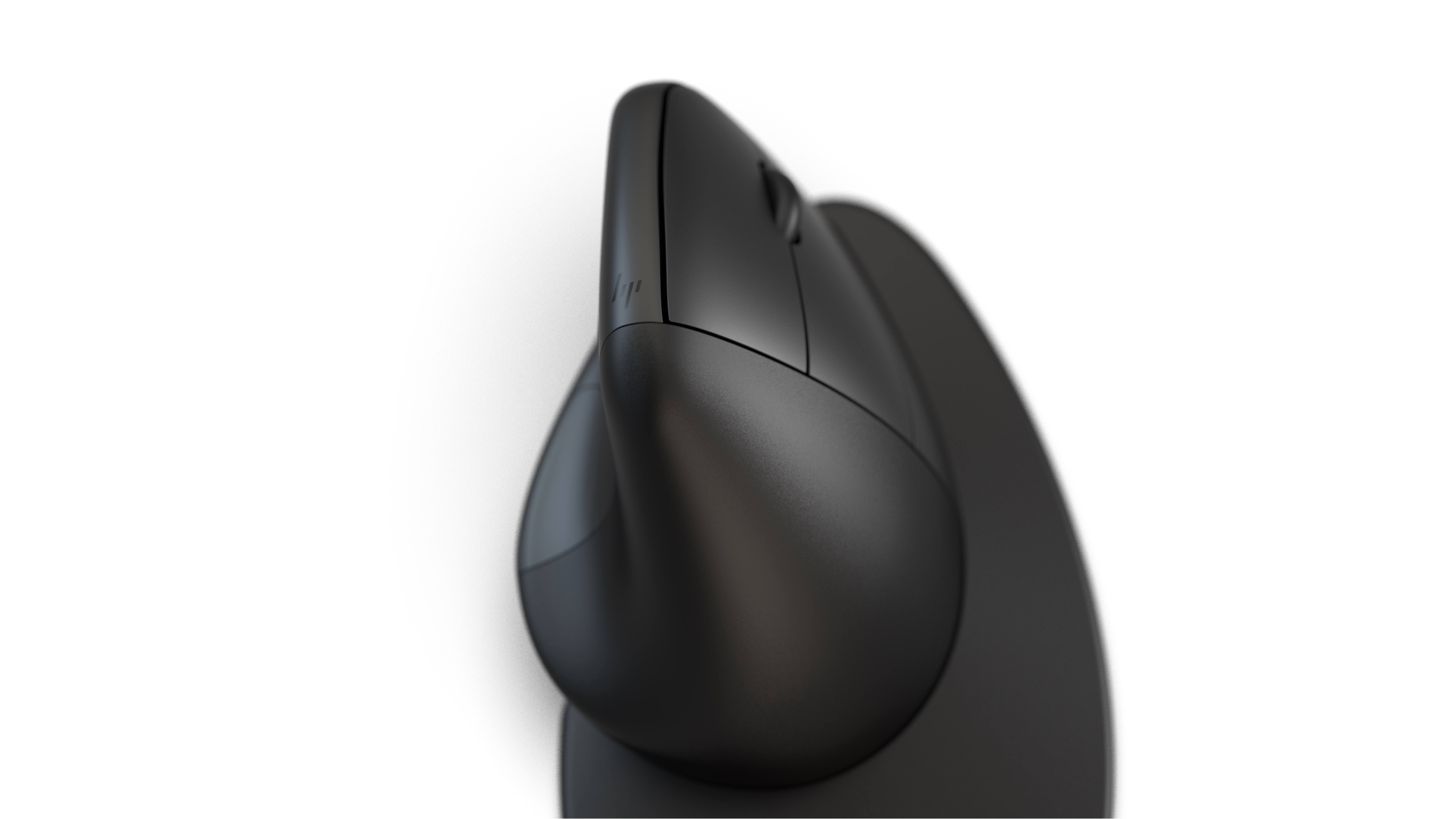 The HP Ergonomic Wireless Vertical Mouse demonstrates HP's commitment to sustainability and human factors. The mouse is composed of more than 50% recycled material, and was designed according to human factors research to keep the hand in a neutral position to prevent injury.