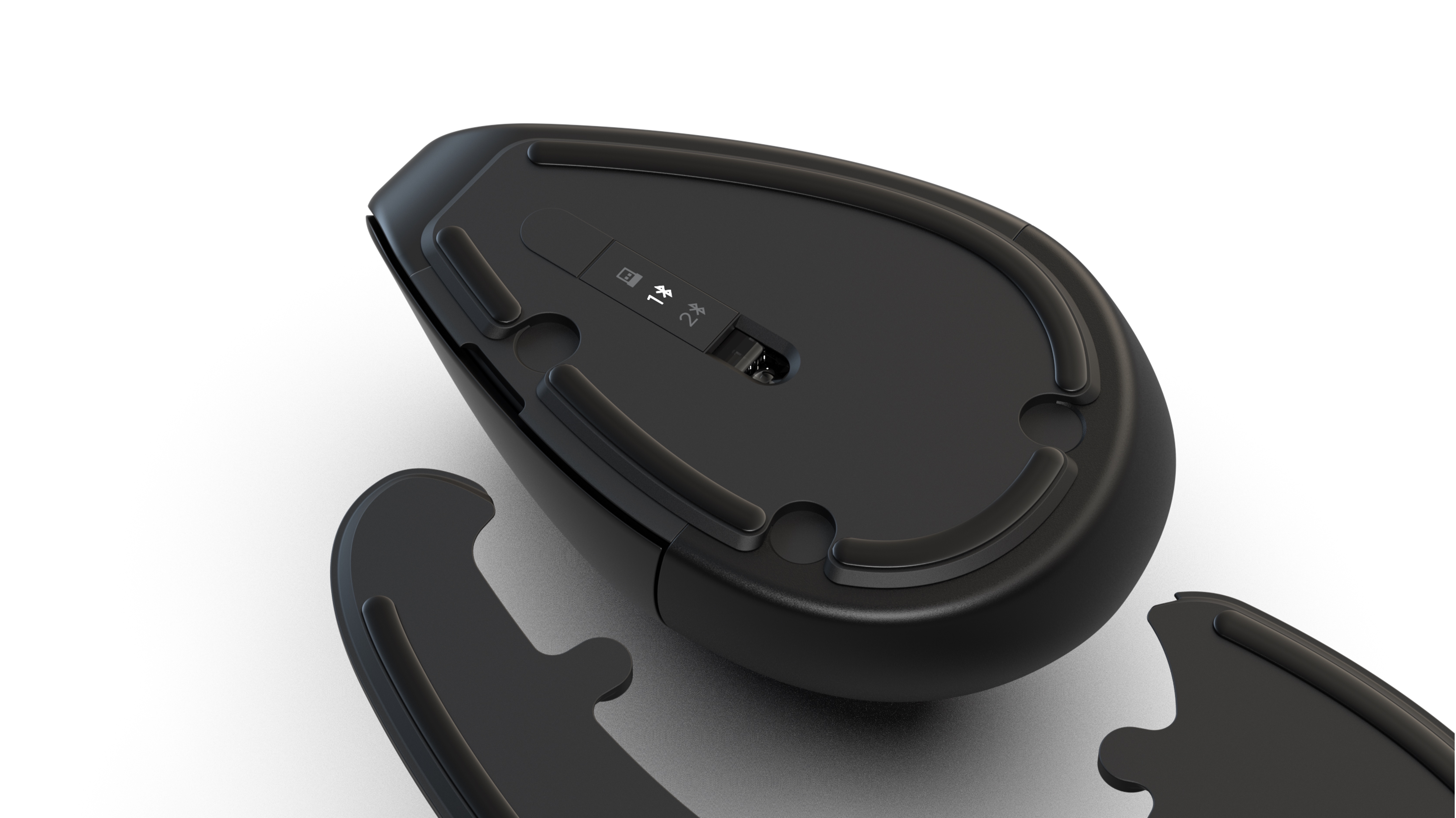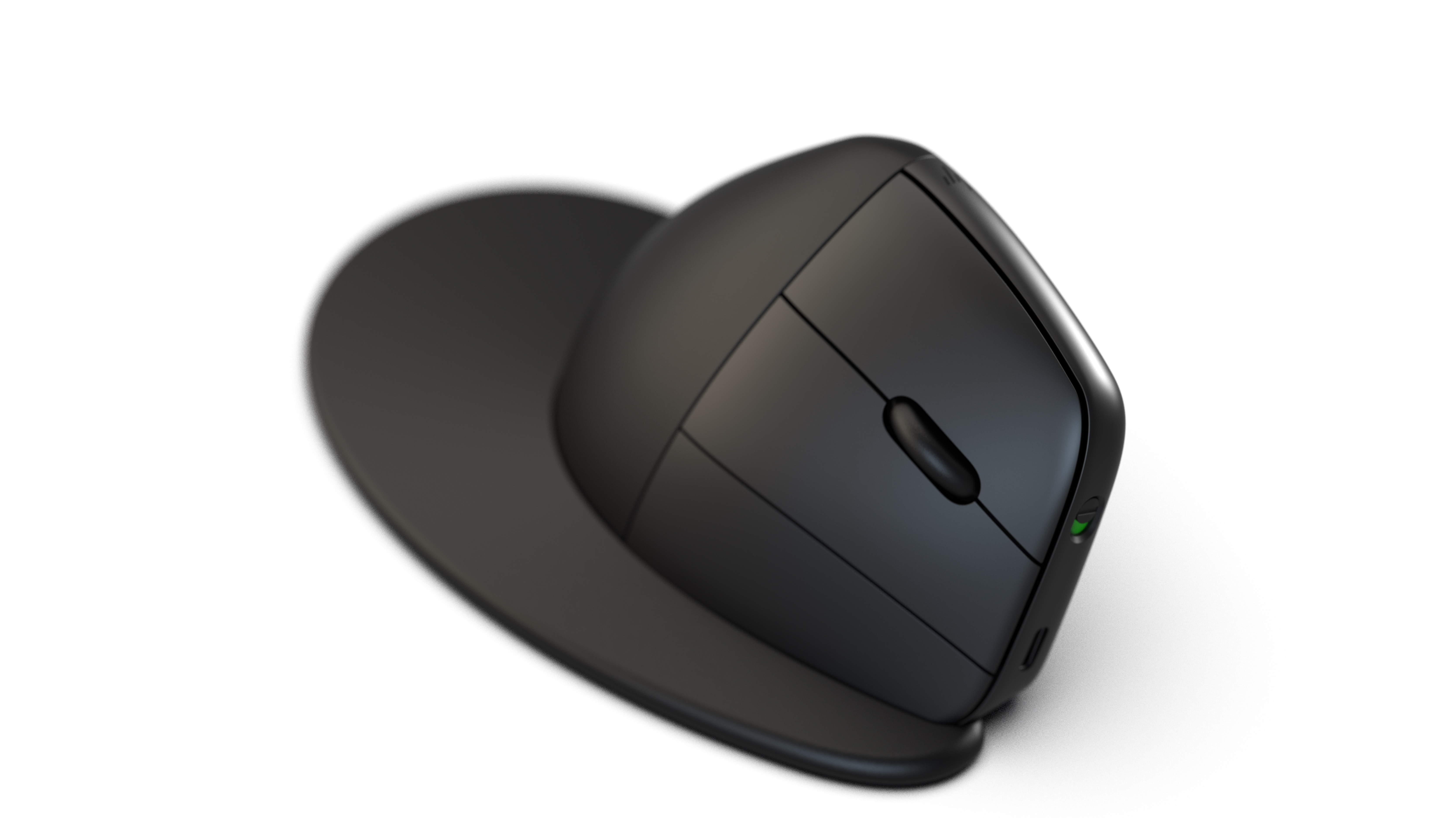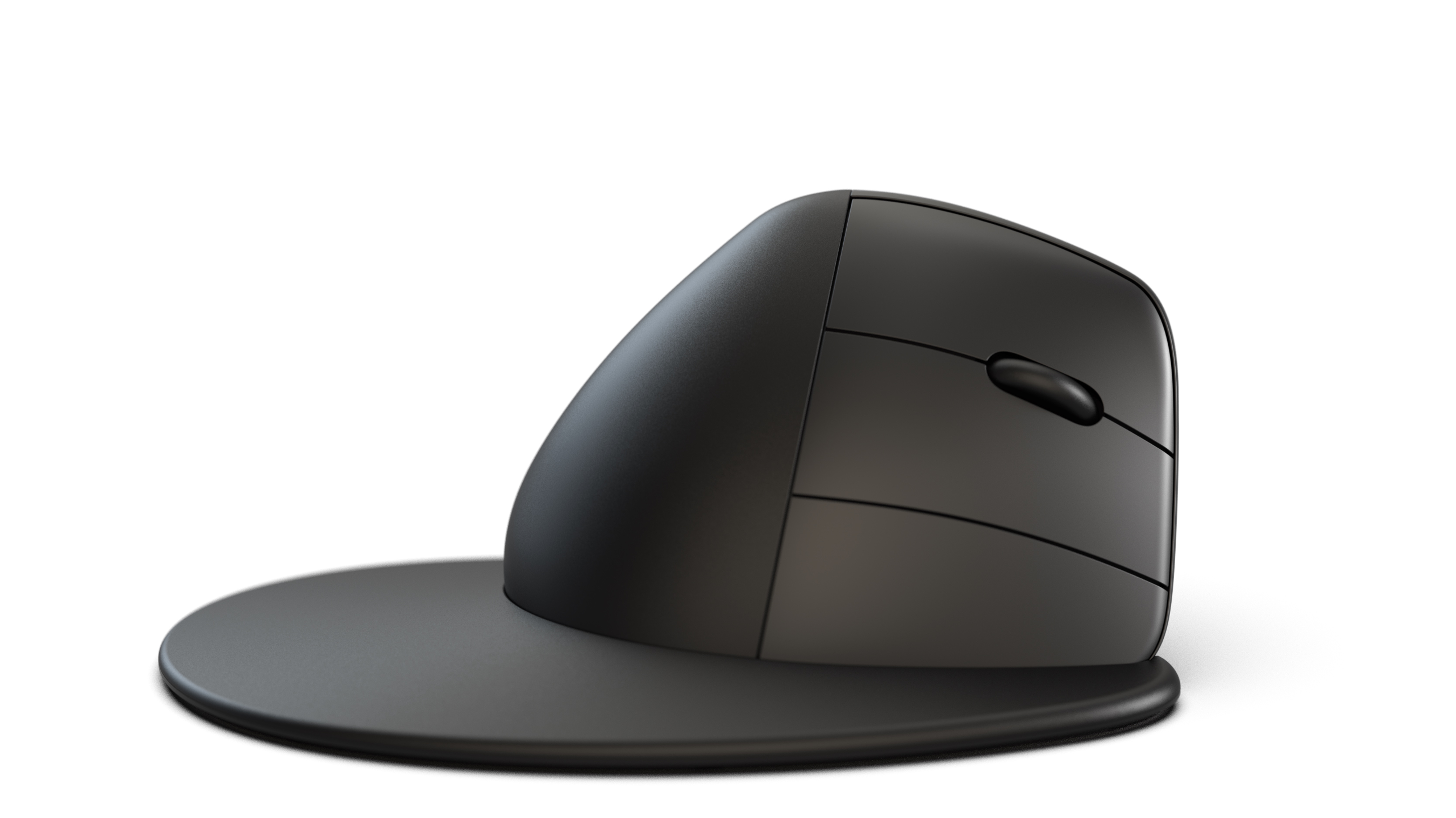 The HP Ergonomic Wireless Vertical Mouse demonstrates HP's commitment to sustainability and human factors. The mouse is composed of more than 50% recycled material, and was designed according to human factors research to keep the hand in a neutral position to prevent injury.