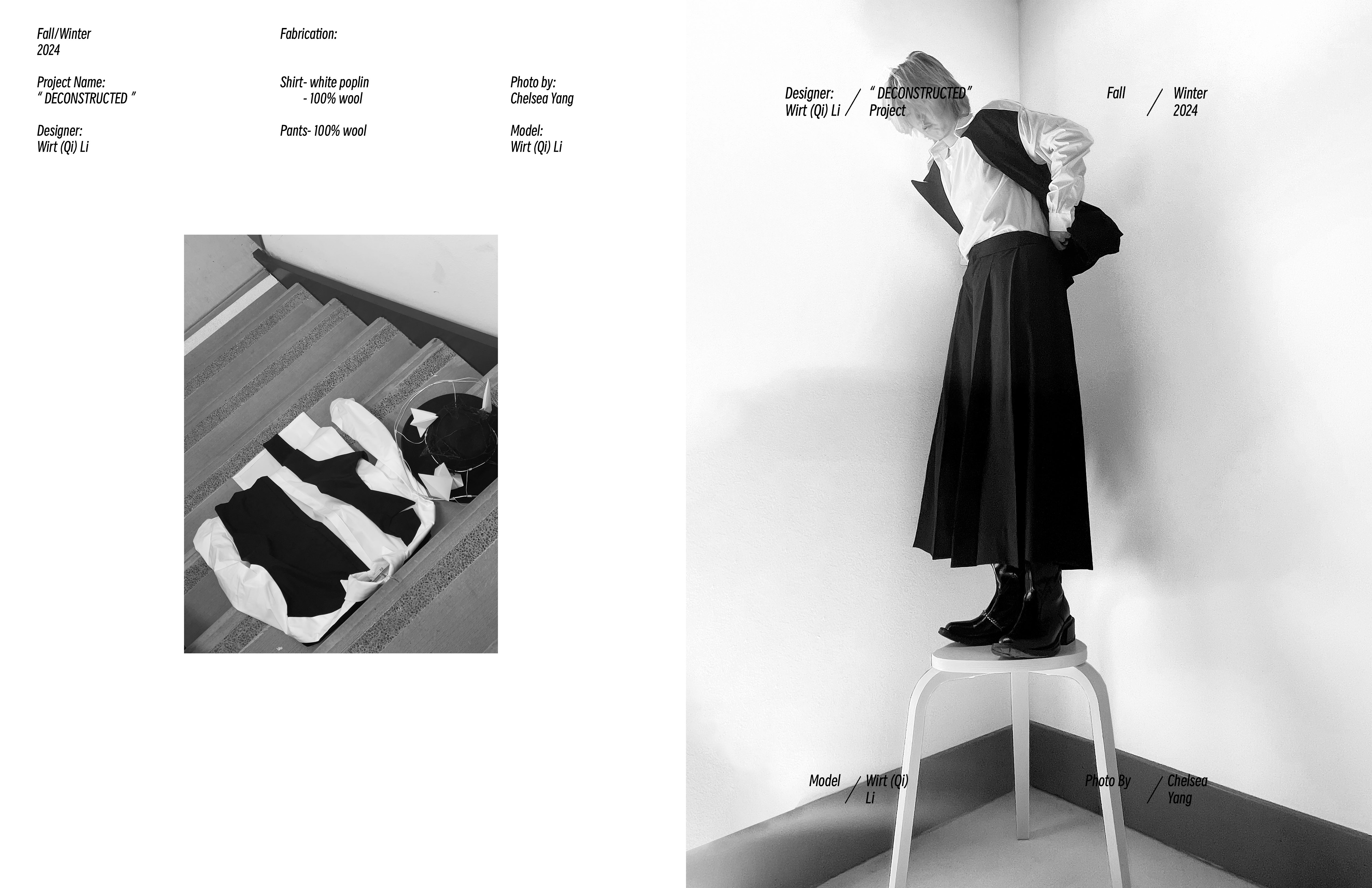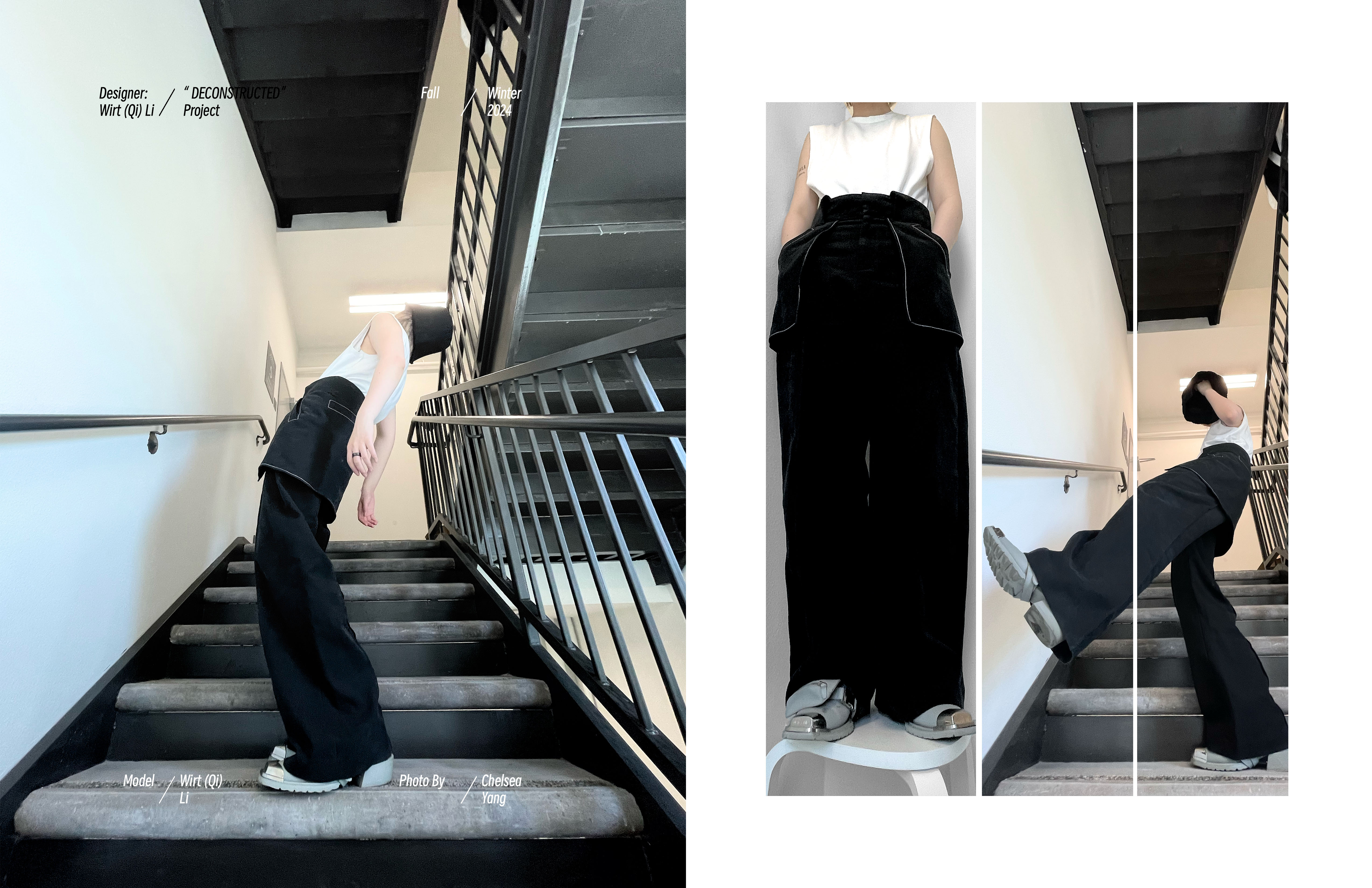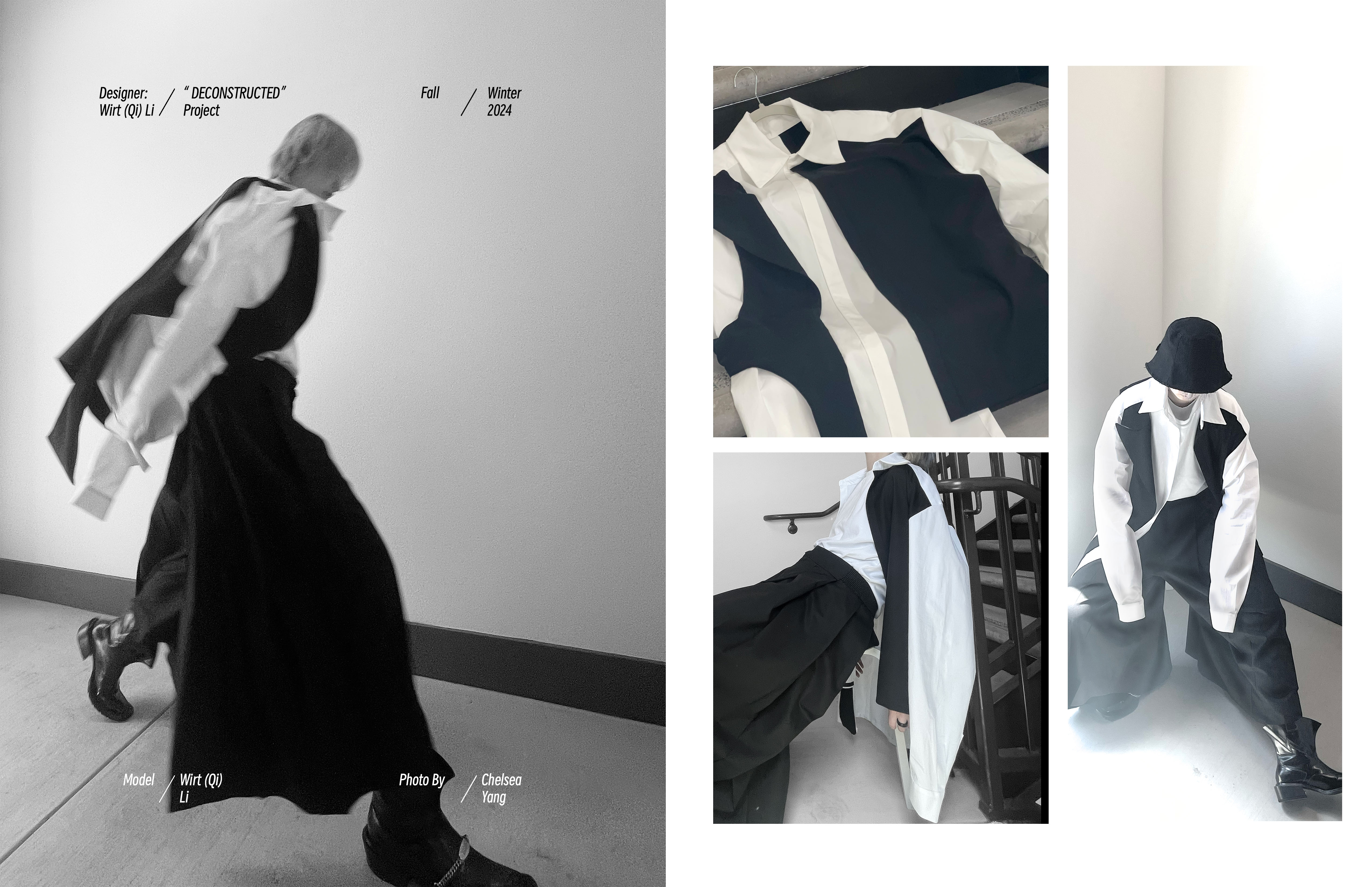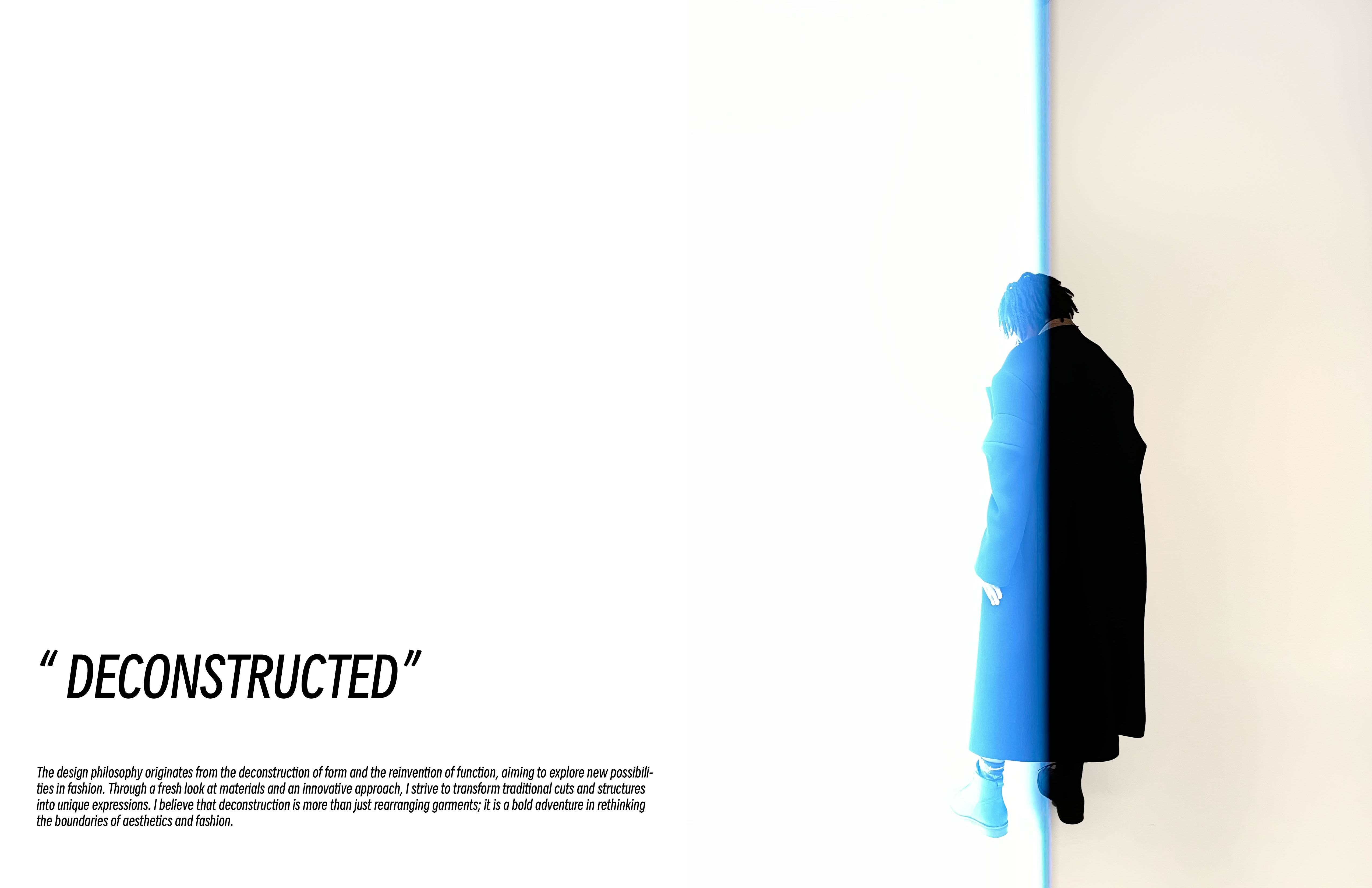 My design philosophy originates from the deconstruction of form and the reimagining of function, aiming to explore new possibilities within fashion. Through a fresh examination and innovative approach to materials, I endeavor to transform traditional cuts and structures into unique modes of expression. I believe that deconstruction is not just about rearranging garments; it's a daring adventure in rethinking the boundaries of aesthetics and fashion. Each creation represents my attempt to infuse the spirit of deconstruction into clothing, achieving a fusion of comfort, functionality, and individuality. My creative process serves as a dialogue between tradition and the future, infusing the innovative power of deconstruction into every piece of fabric, providing wearers with a distinctive wearing experience.