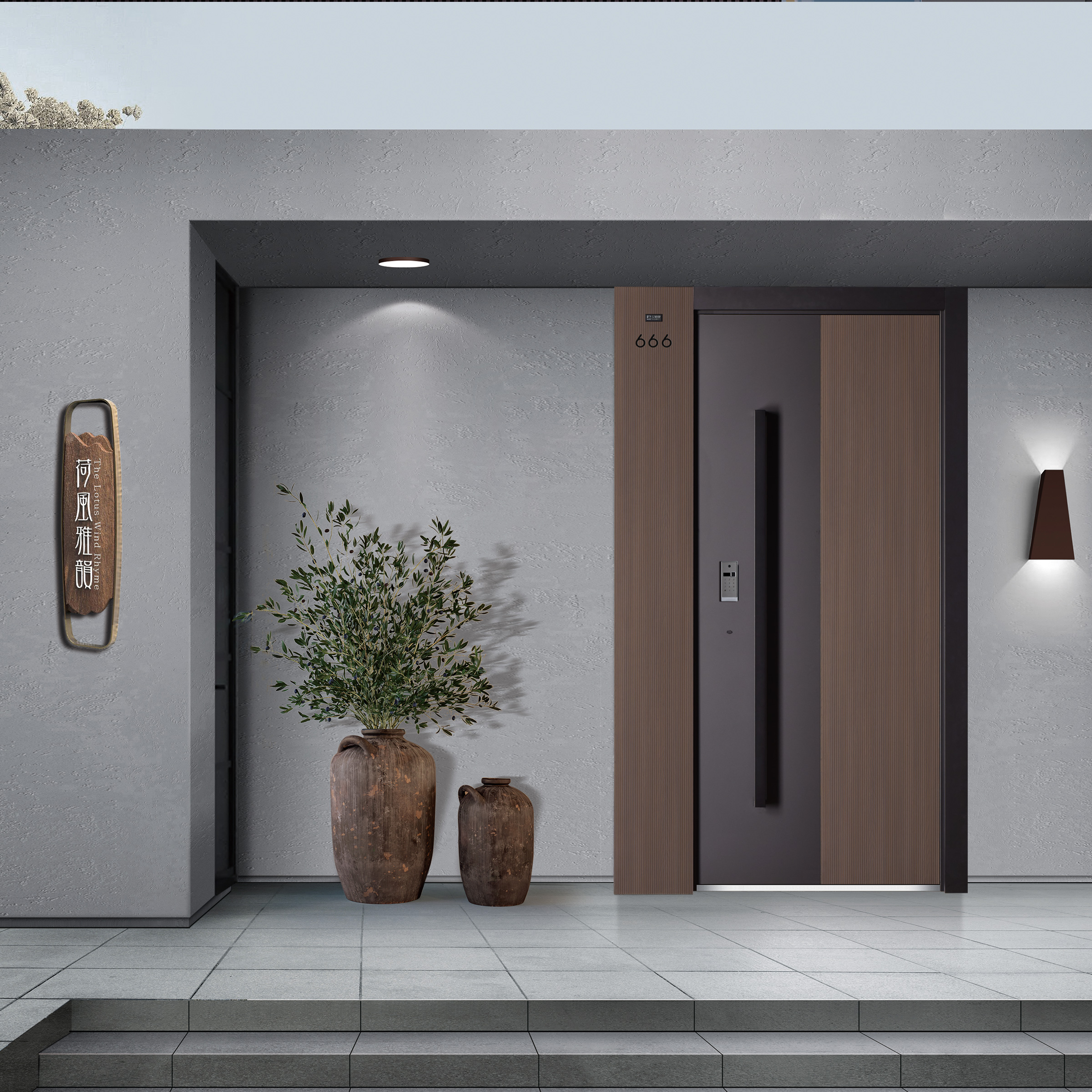 Beck combines a multitude of design patents, technical patents, and industry-leading technology. By utilizing ultra-hard magnesium-aluminum alloy armor material and a distinctive sandwiched aluminum-wood composite armor process, it excels in anti-pry security, thermal insulation, soundproofing, and smart convenience and boasts a luxurious appearance. This marks the inception of a new category in the high-end entry door industry. When paired with the door facade, the unique lintel design cultivates a noble ambiance, showcasing a luxurious and grand texture. It offers resistance to scratches ease of cleaning, and embodies a naturally exquisite design. The simple and elegant layout inspires a forward-looking fusion of space and natural ecology, featuring a delicate and steadfast wood grain design imbued with a strong sense of fashion.