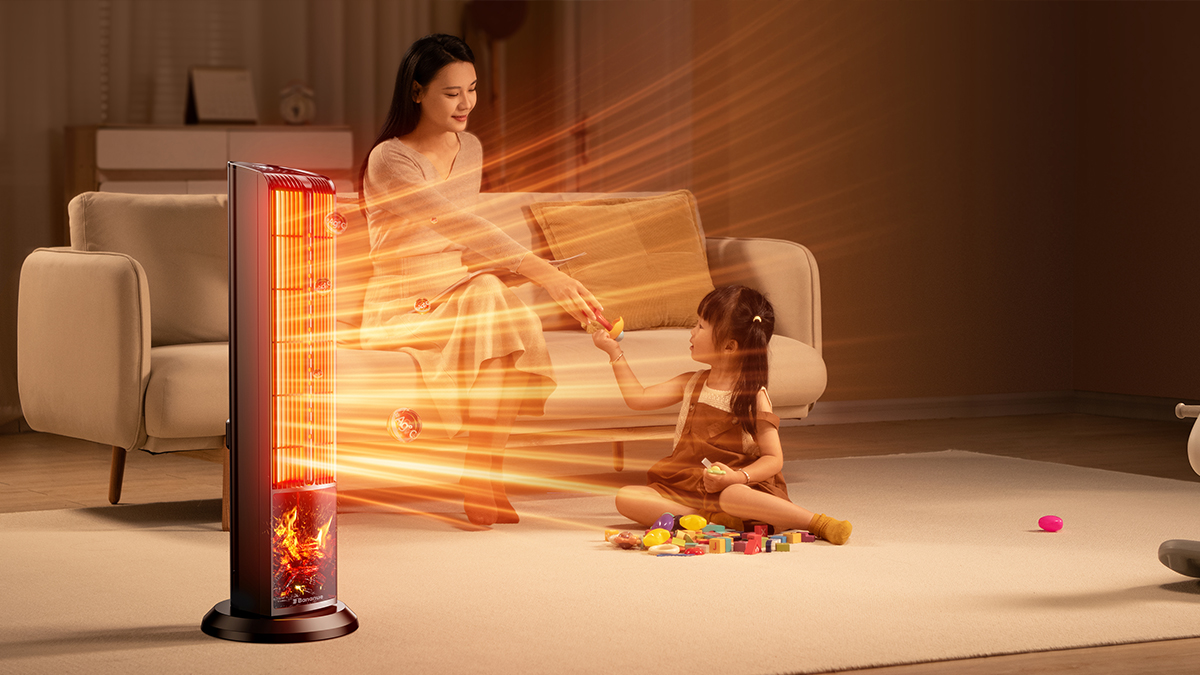 The heater’s strong PTC ceramic heating is balanced with a humidifying outlet which can increase indoor humidity and avoid over dryness caused by heating. With two adjustable oscillation angles, users can customize the direction and range of the warm airflow. The heater boasts multiple safety mechanisms like tip-over power cut-off and overheat protection which can ensure user safety. Its outer shell is also made of flame-retardant VOABS material. Through industry-leading technology, it integrates multiple functions like simulated flame, humidification, and offline Chinese voice control, providing safe, comfortable, and efficient heating experiences for households.