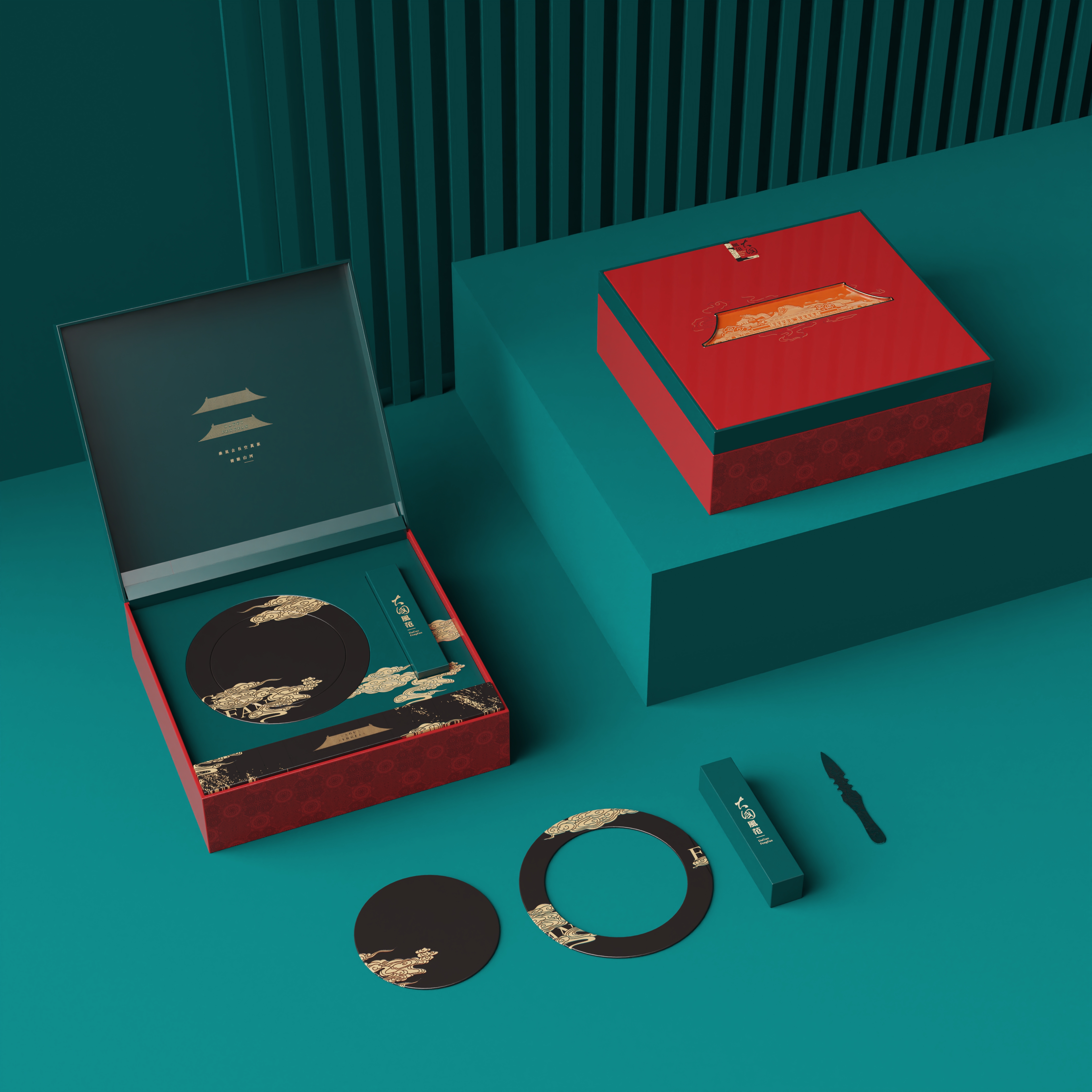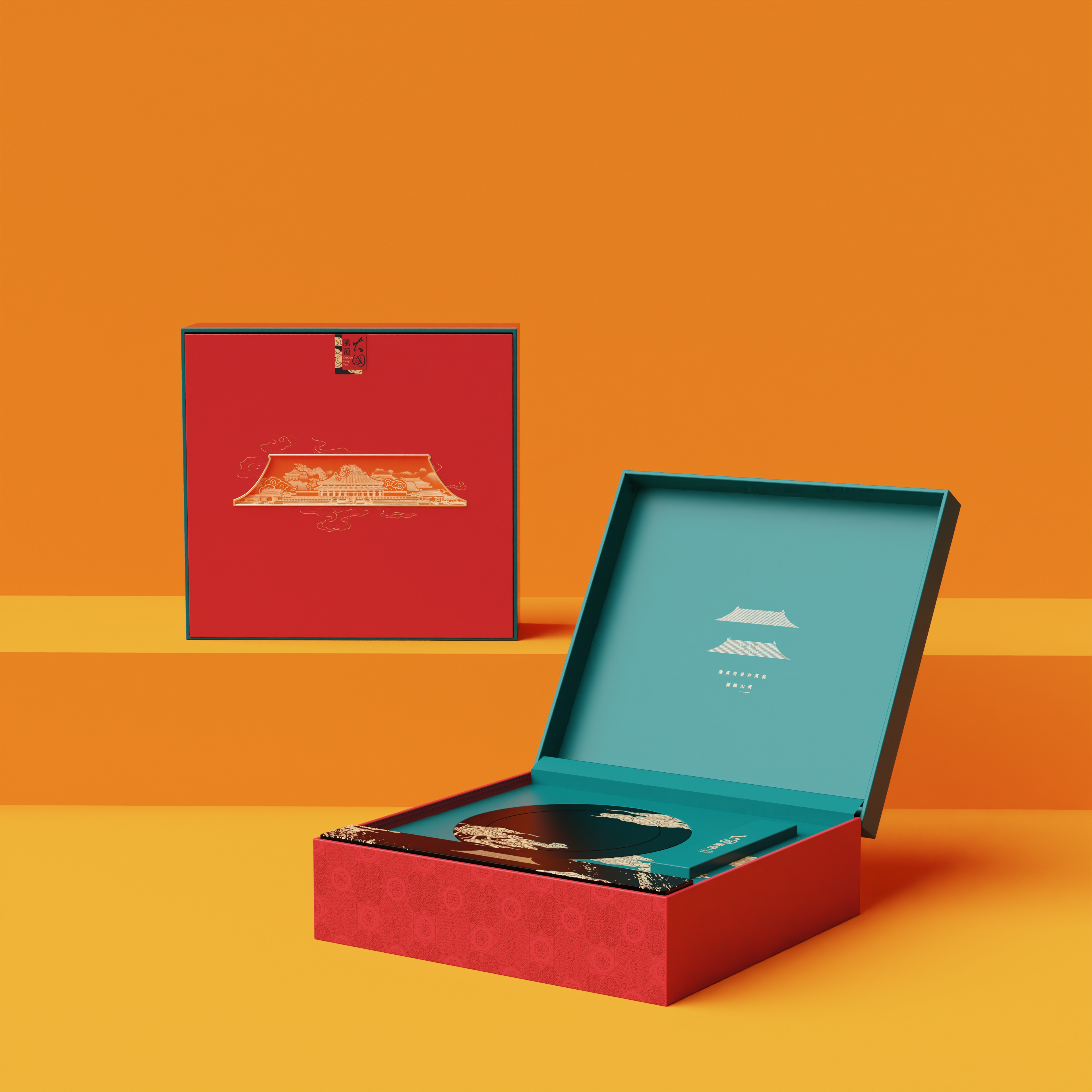 "The Forbidden City, with a history spanning six centuries, stands as an enduring symbol of China's rich heritage and the timeless flow of history along its ancient rivers. The design draws inspiration from the rooftops of the Forbidden City, elegantly incorporated onto the exterior packaging, with colorful clouds adorning the Xuanwu Gate. Inside, a folding painting showcases soaring dragons encircling the Forbidden City, symbolizing the nation's flourishing prosperity. The overall design is harmonious and majestic, capturing the essence of this historic monument."