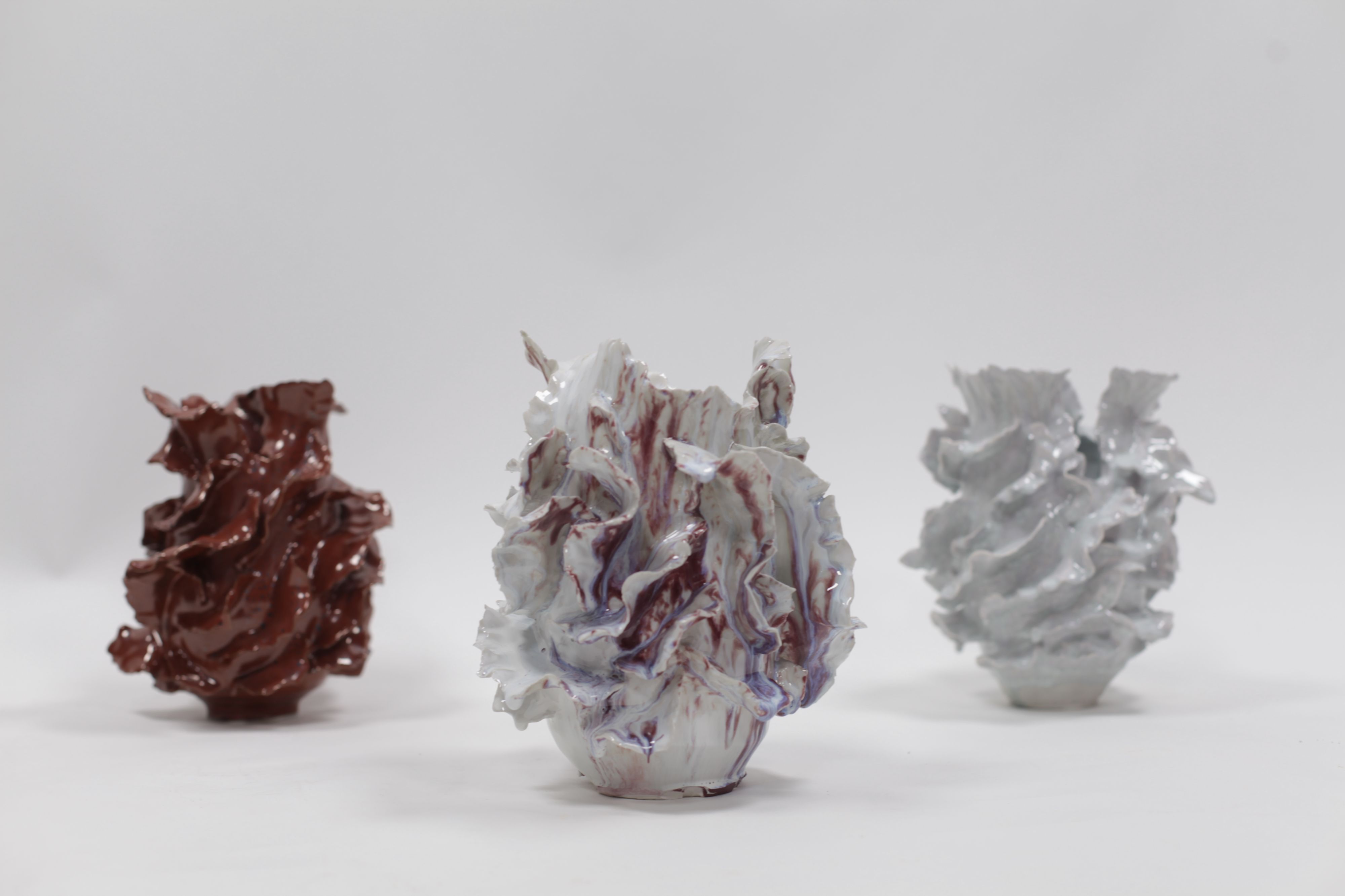 Drawing inspiration from the myriad wonders of marine life, this series of ceramic vases features compact layering that embodies the depth and intricacy of marine ecosystems. This irregular layering design evokes images of undulating waves, swaying seaweeds, corals, and the fluid movement of fins, radiating a vibrant and dynamic essence. This design infuses each vase with a spirit of perpetual growth and vitality.