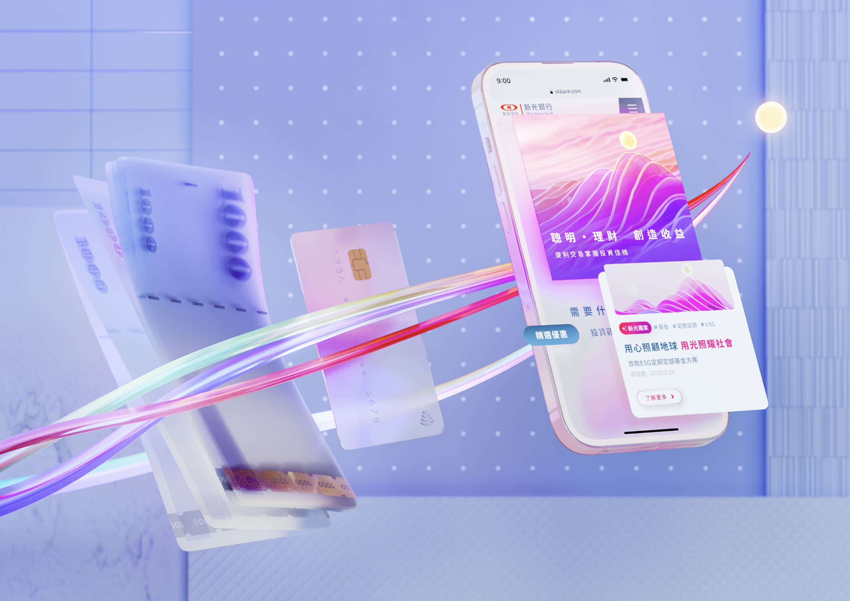 Shin Kong Bank("Shin Kong" refers to "New Light" in Chinese) Introduces "Light Evolution" which represents our value proposition of light is everywhere. Our goal is to reshape our existing brand which exists for over 60 years, bringing the concept of "Light Up Your Life" through an omni-channel experience across digital websites, visual identity system, branches, etc. We believe our customers' wealth will grow like plants through photosynthesis.