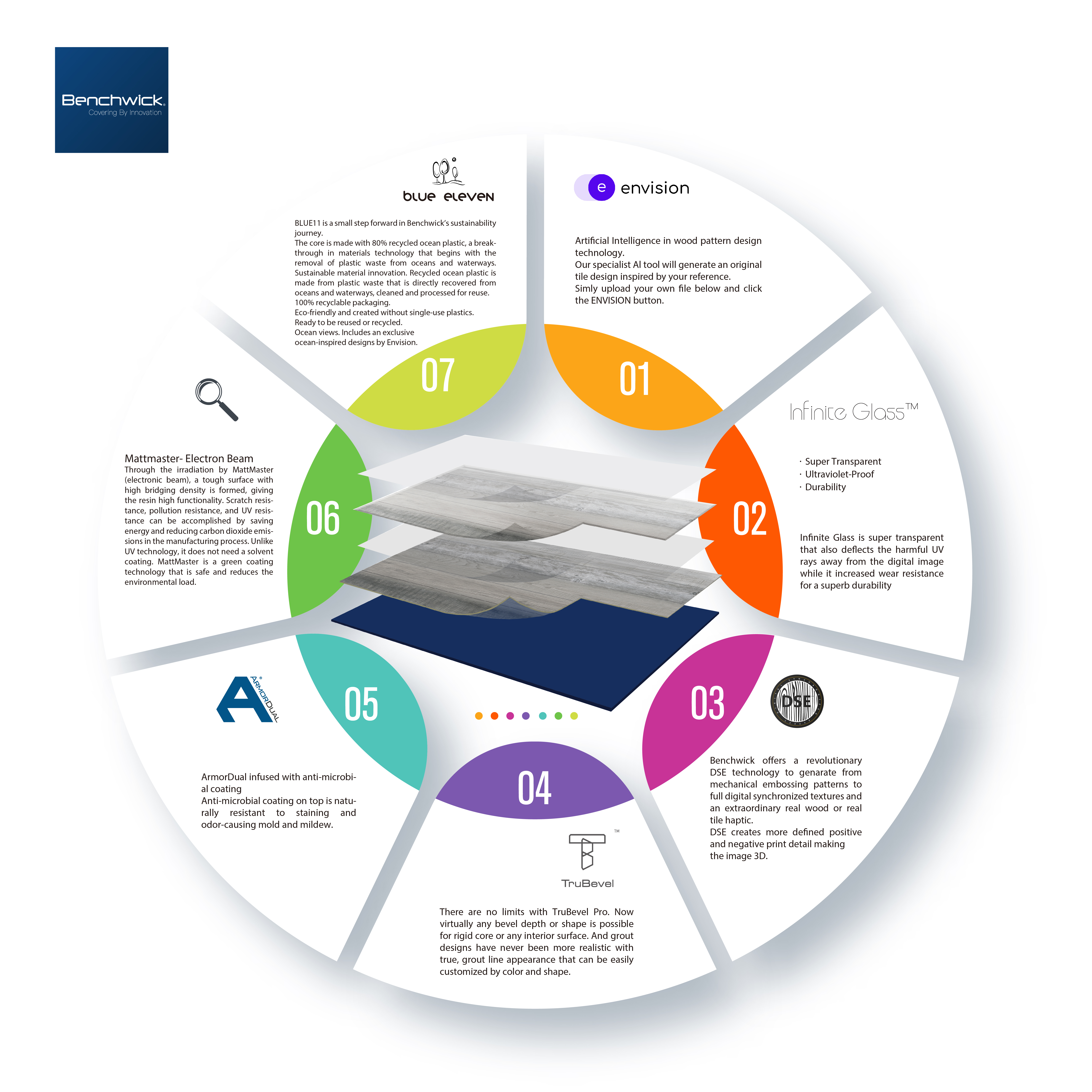 -DSE™ (Digital Synchronized Effect) replicates authentic textures, via multi-layered 3D embossing. Infinite Glass™ UV protection technology is applied to preserve product color and longevity.