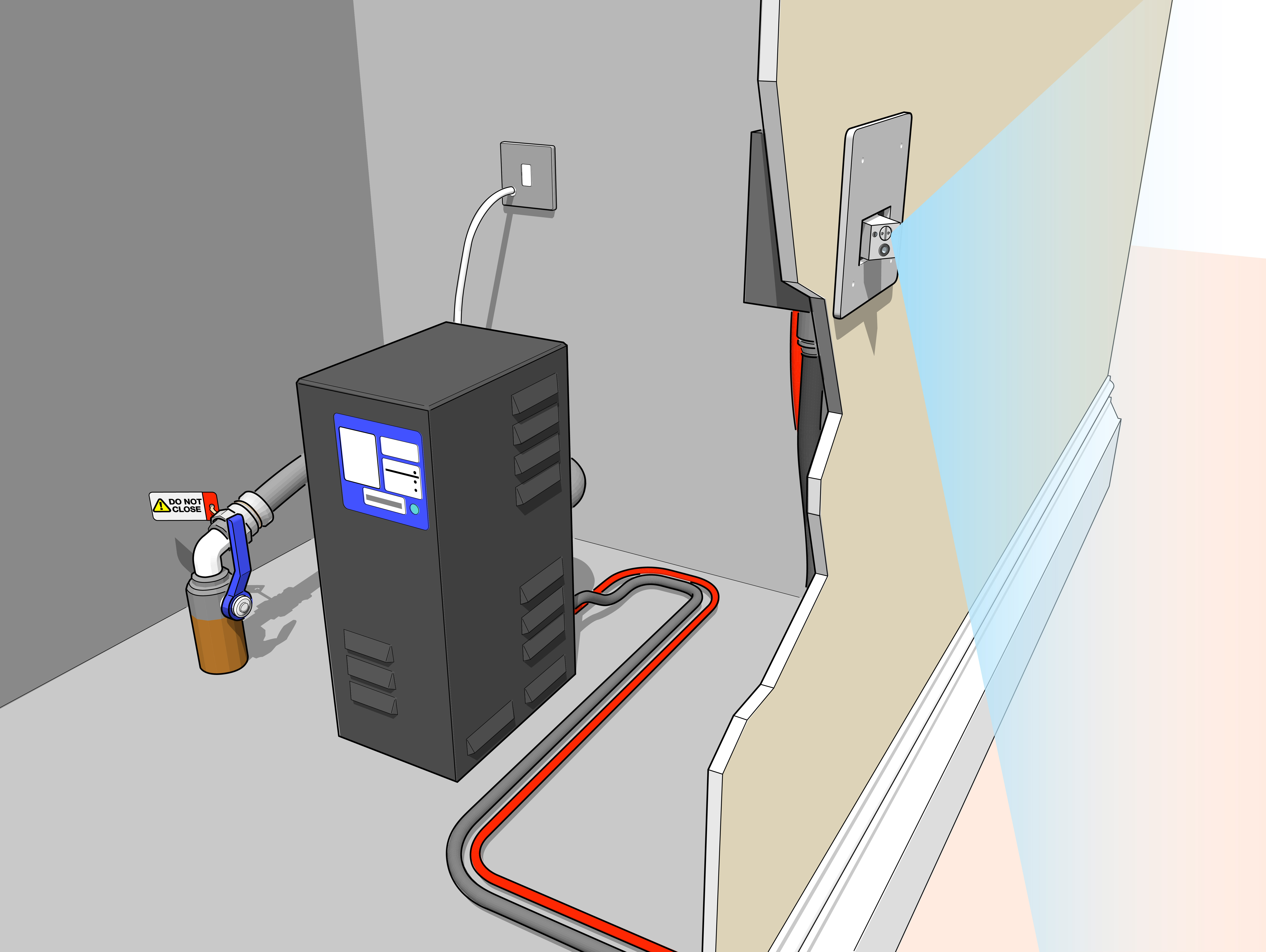 Automist operates between 2-14 times faster than a typical concealed fire sprinkler. The delay in activation for sprinklers is the result of traditional systems being triggered by ceiling temperature breaking a mechanical glass bulb. This reduces the chance of burns for someone very close to a fire and minimises the production of life-threatening toxic gases. Our system is electronically activated and uses an infrared sensor to detect the fire using our proprietary, intelligent fire detection algorithm. Once the system is activated and the alarm is raised, a pump drives mains water through the unique wall-mounted spray head’s nozzle unit, targeting the fire with a dense fog of watermist. The system also has a black box and records the data from an incident to give homeowners a clearer overview of what happened.