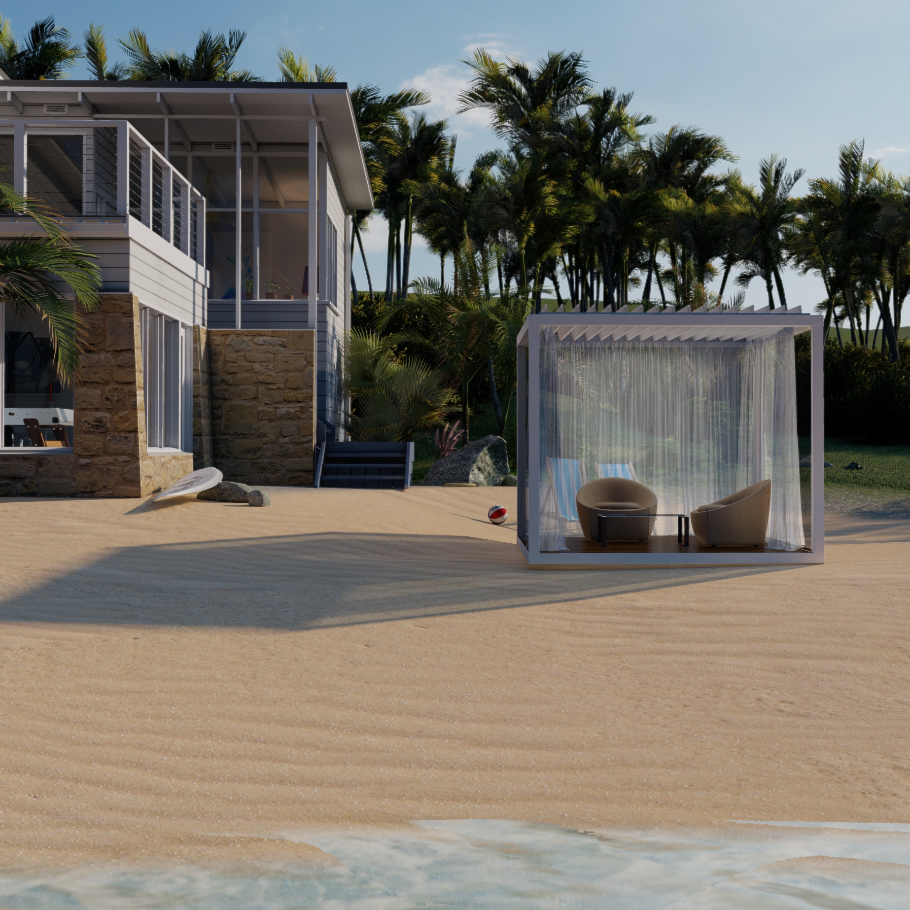 In residential settings, K-BANA offers a luxurious and easily installable retreat by the pool or for outdoor kitchens. Its movability enables homeowners to adapt the cabana's position based on sunlight or seasonal preferences, providing a flexible and adaptable outdoor space.