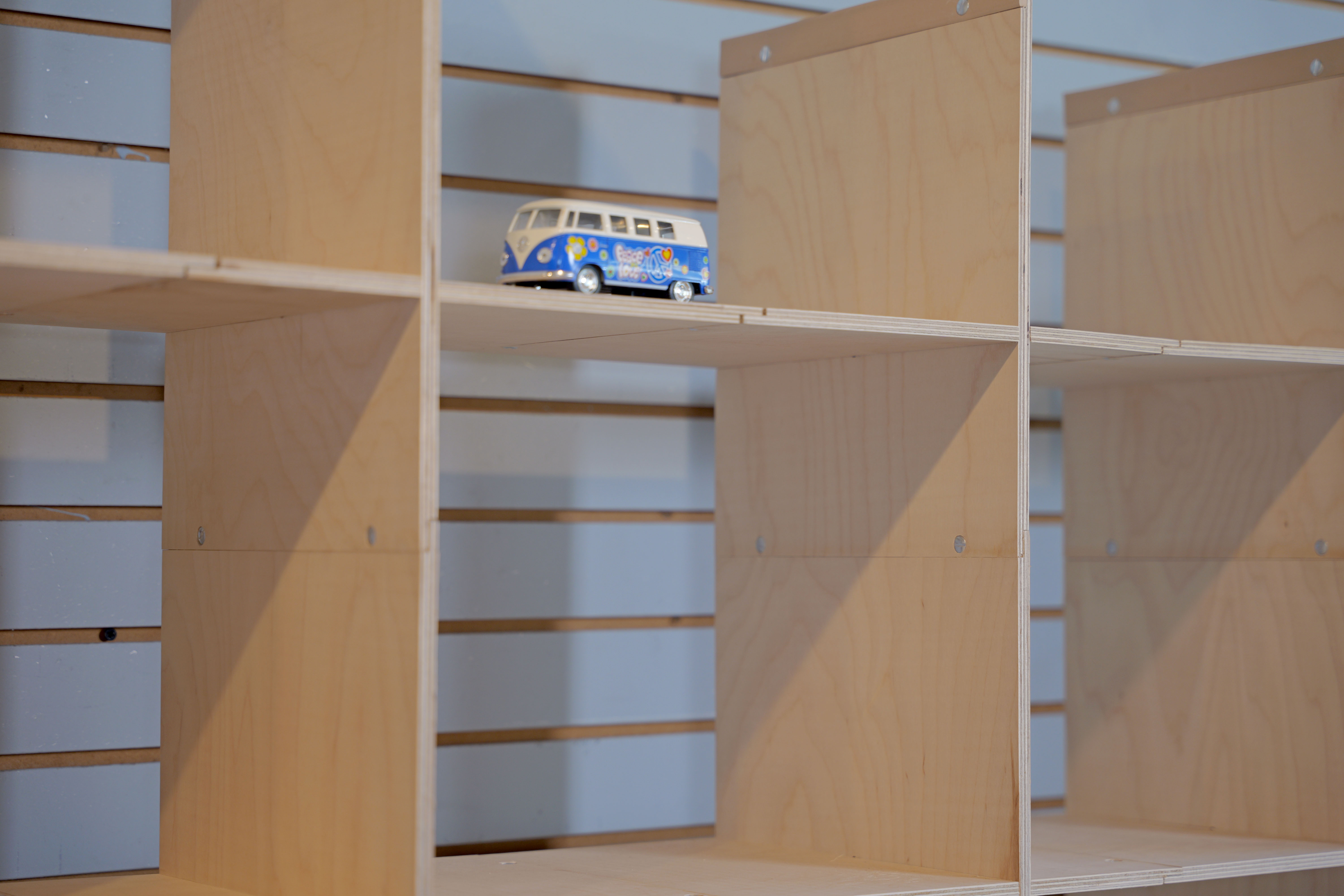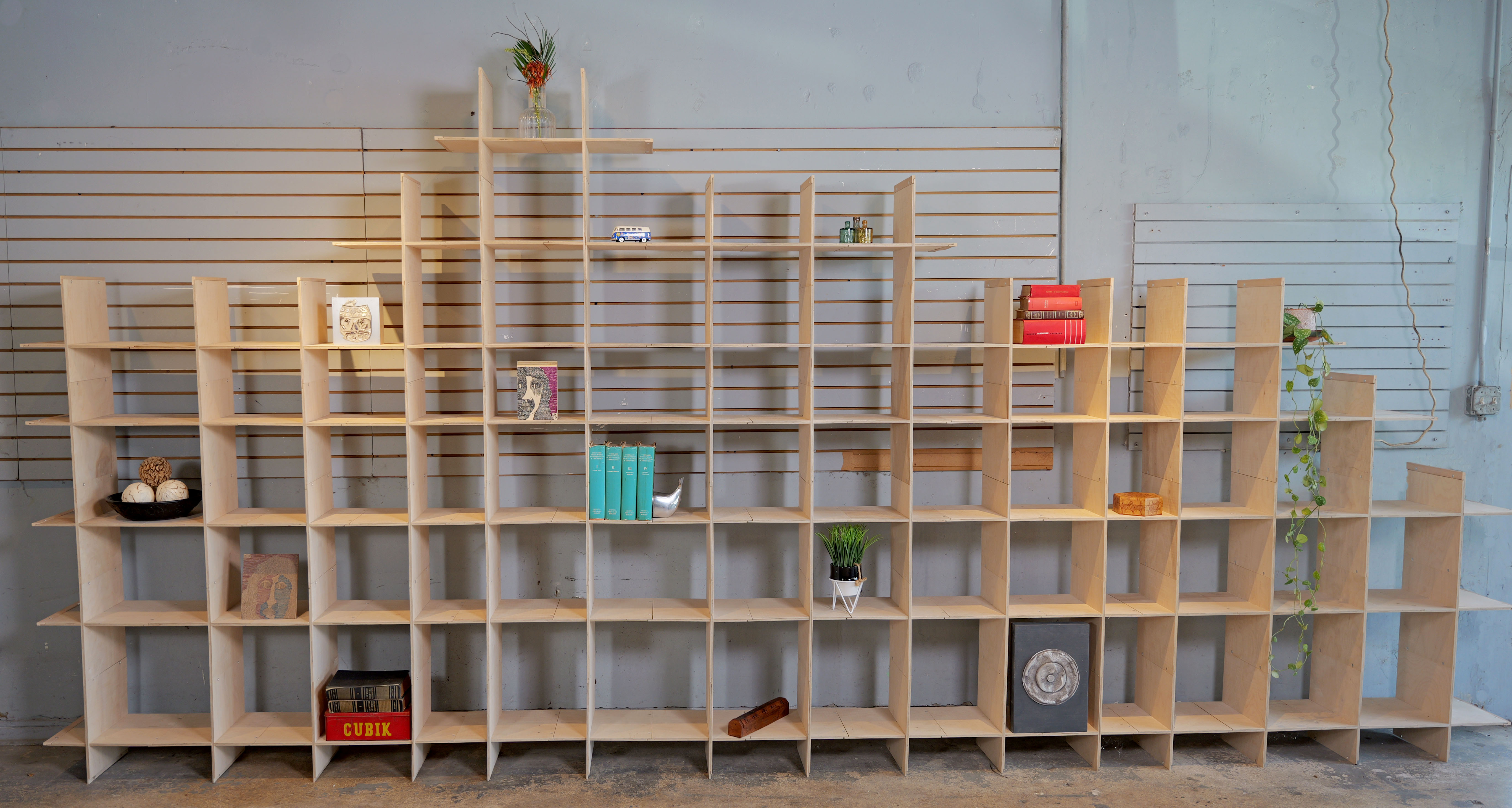 UNEDO harmonizes spaces with its thin linear Baltic Birch Wood square pieces generating an array of shelving options which can be moved easily to construct into distinct configurations. The uniqueness of the design is that it can be expanded almost without limits by combining the single wood piece repeatedly. And the fact that the interlocking slot is offset allows the possibility of having 9 different sizes of cells to accommodate oversize books or smaller items.