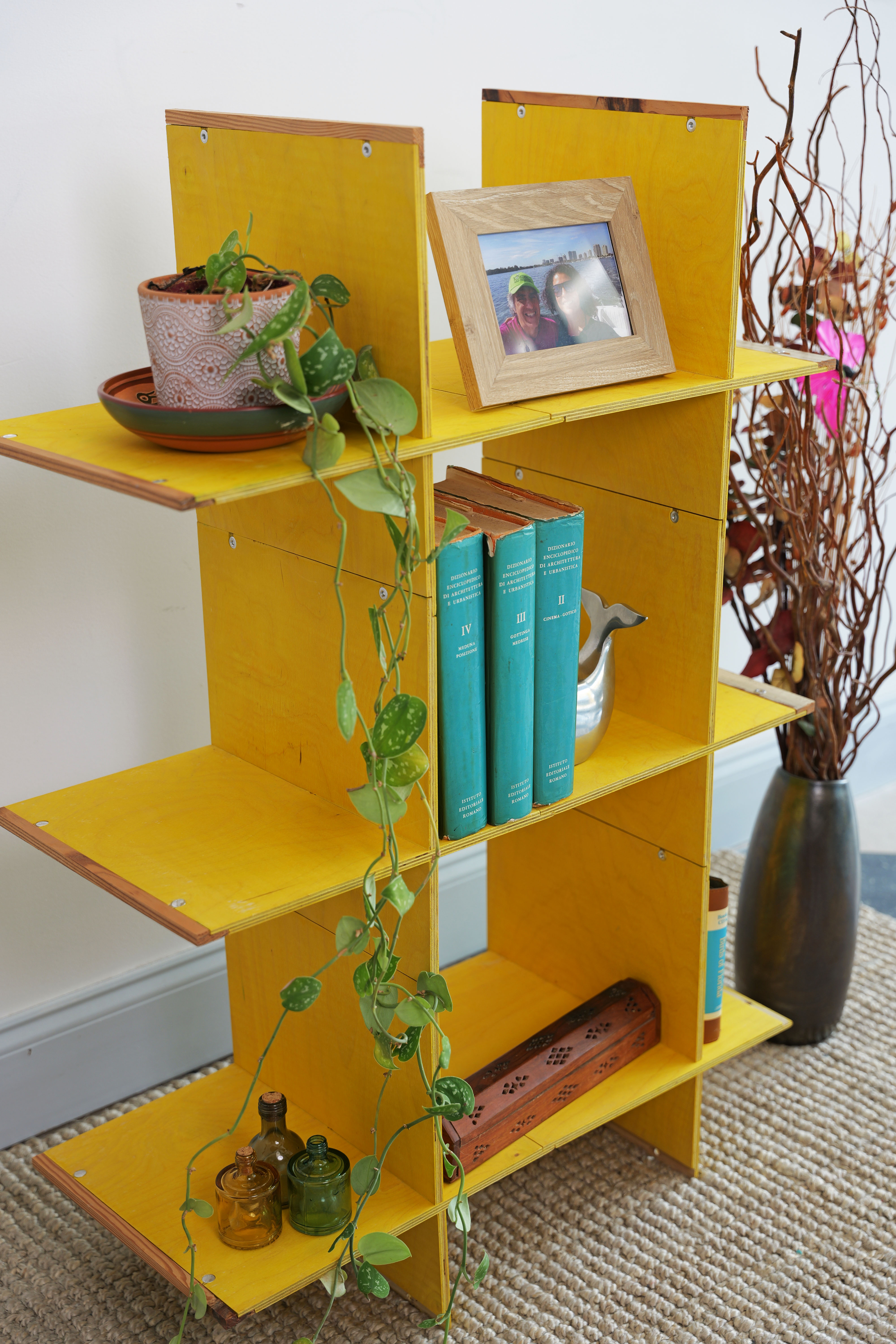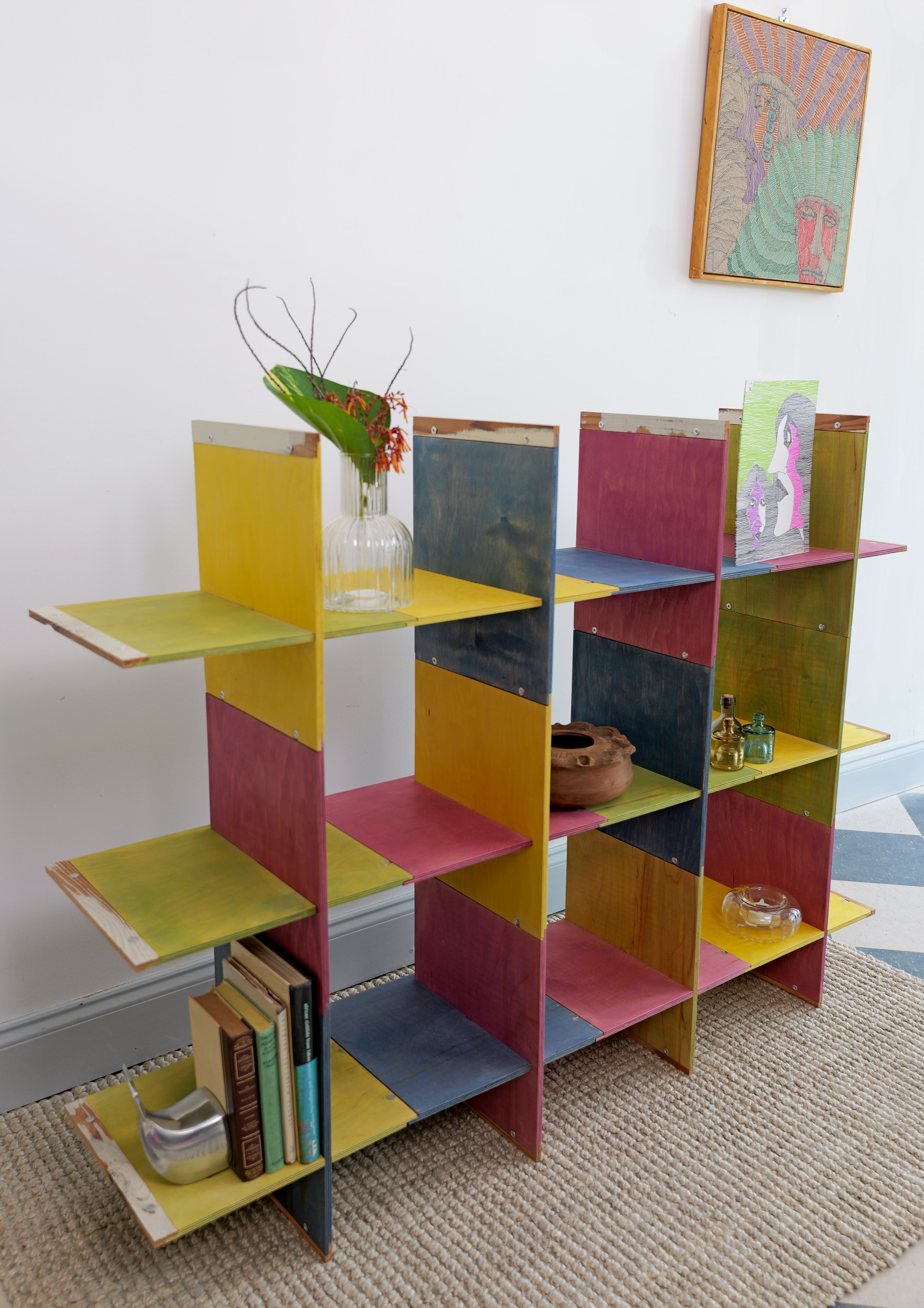 This Modular Shelving Unit can be used as a piece of abstract art against a large wall to further accent the space. Our array of warm colors combined with the right soft lighting delivers the right flow of energy to be the central focus of a home space. An extensive number of practical shelving pieces that can be assembled efficiently and effectively. It can be disassembled quickly, transported and reassembled in different configurations even separated into smaller units