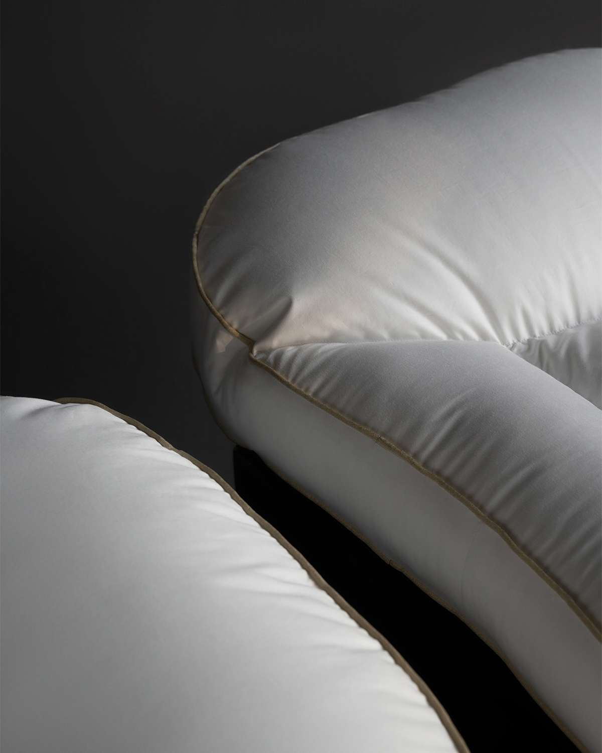 The specific needs of the head, neck and shoulder for pillows would vary in structural differences of the human body and sleeping postures. SIDANDA that infuses a special 3in1-Sup technique means the availability of soft protection, strong support and pressure spreading. Zoning support gives the best support for these body parts. 95% white goose down of SIDANDA pillow is disposed on top to leverage its softness to the extent possible, so that the head is protected. The center area is segmented to make the surface of the pillow slightly sunken, which in turn creates a soft and relaxing space for the head. The neck area is further stuffed with elastic fiber to maintain a curvature for perceived comfort of the neck and provide the necessary support, in order to adequately free up ligaments and joints. The curved pillow edge lines fit to the curve of the shoulder, which means an extra contact area and relieved pressure on the shoulder. In consideration of user’s habits, neck support areas of varying widths are designed on top and bottom of the pillow to provide tailor-made bracing force and different sleeping feelings.