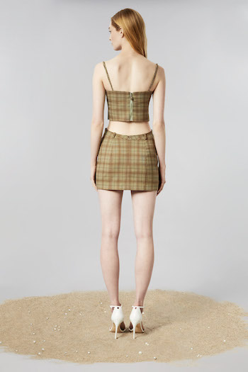 Designed for comfort and aesthetics, the top and skirt of the skirt suit are separated in wearing yet integrated in style, presenting a harmonious unity of elegance and sexy style. 3D tailoring based on ergonomic design principles creates a waist-slimming effect that accentuates the natural curves of a woman's body. Meanwhile, the brand innovatively makes the short top's lining crisp and stylish men's suit fabric, while the cups of the top are adorned with a shirt collar element. These innovative designs offer creative solutions to common issues encountered in traditional skirt design, such as the absence of bust cups and the failure to accentuate the waistline. This adds a sense of liveliness and power to women's clothing and creates a distinctive and unique effect for the brand.