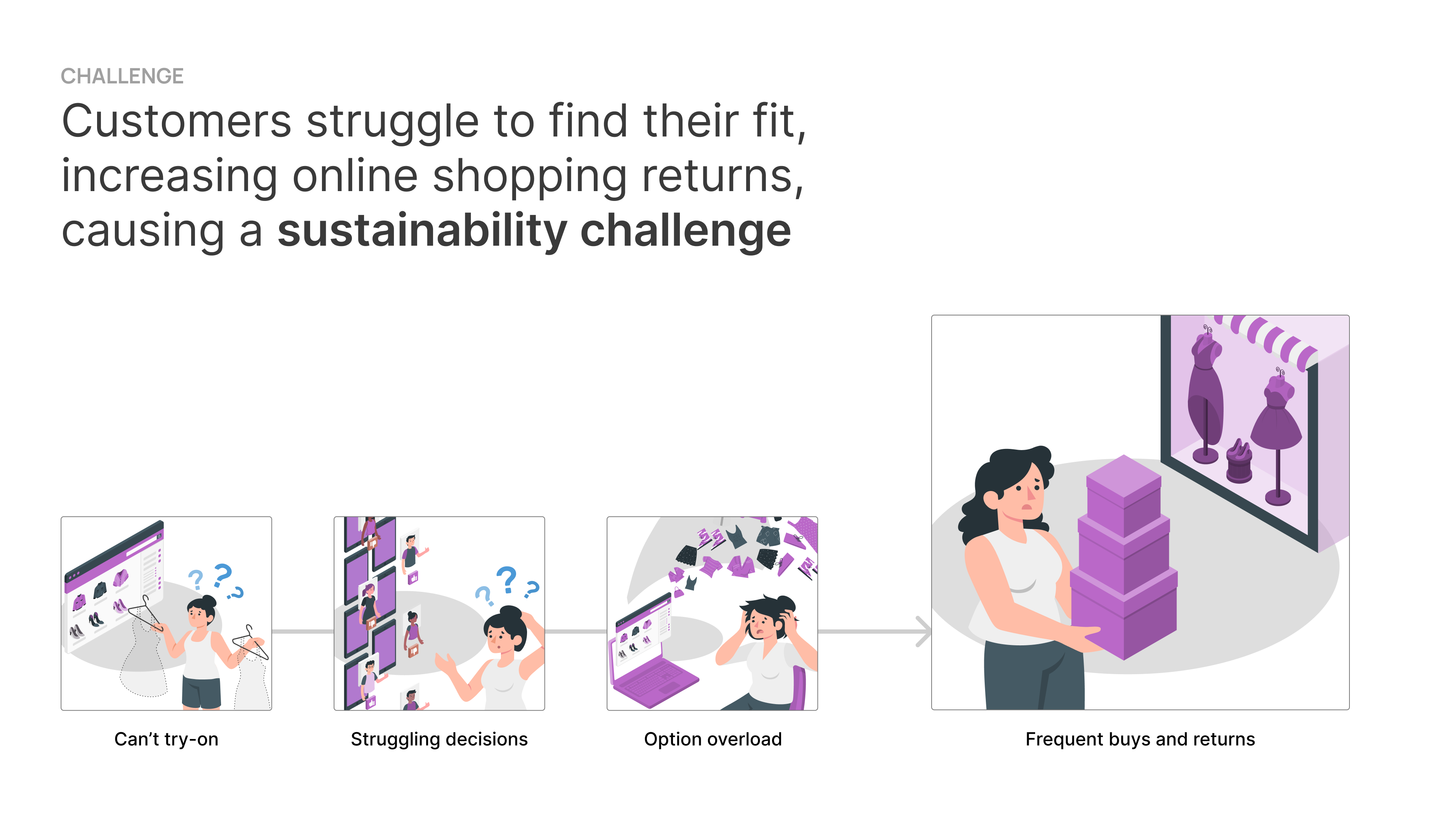 Outfit Club aims to tackle the sustainability challenge caused by frequent, unnecessary shipping and returns in online shopping. This problem often arises due to customer uncertainty regarding fit and style, leading to the purchase of multiple sizes and styles that don't meet their needs. Outfit Club revolutionizes the online shopping experience by addressing the issues customers encounter in visualizing outfits, assessing fit, and making confident purchases. While online shopping offers an abundance of choices and enhanced convenience, the current experience often falls short. Shoppers must imagine how a garment will look on them, resulting in uncertainty and uninformed purchase decisions. This not only inconveniences consumers but also leads to unnecessary returns, increasing costs for businesses and having adverse environmental effects.