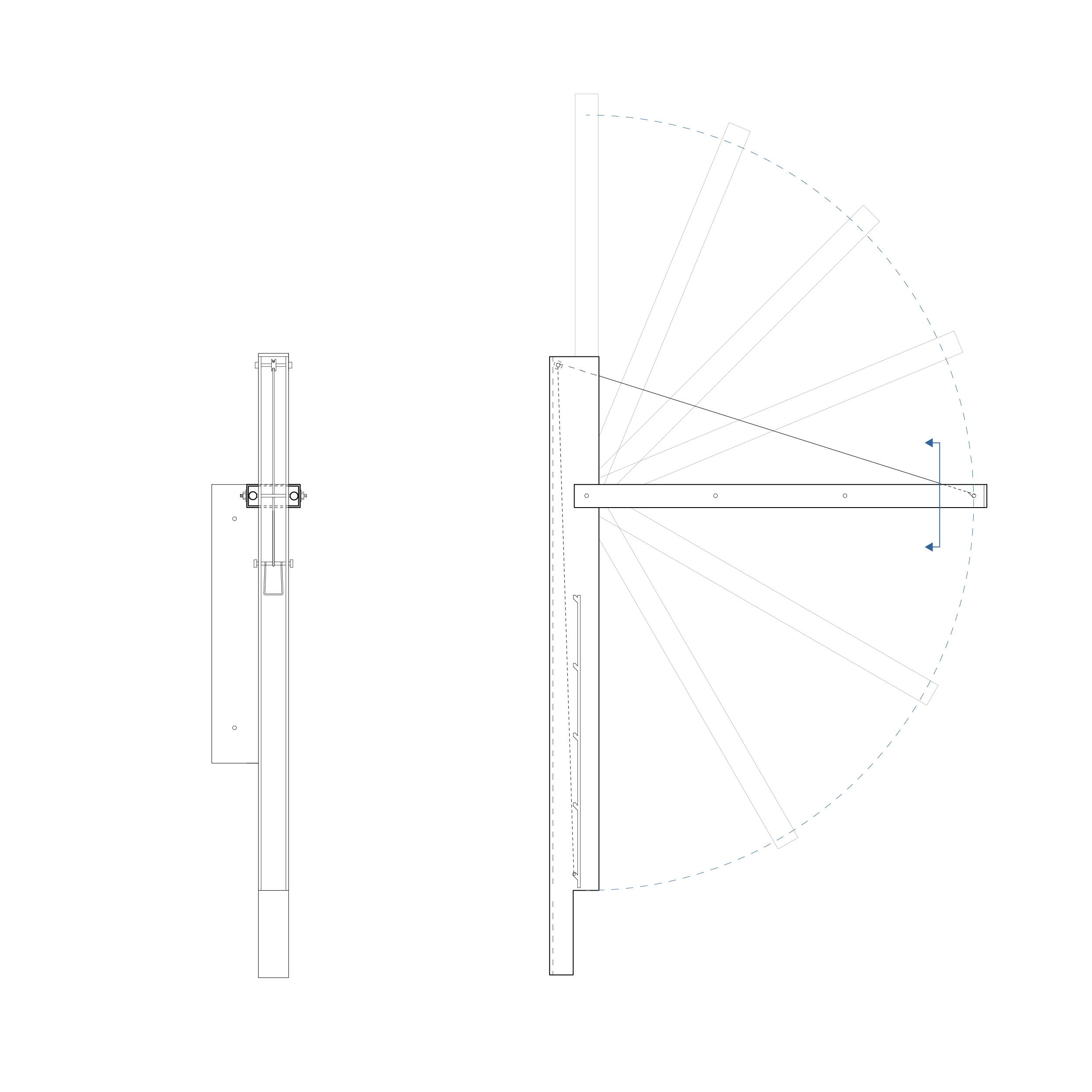 Reaching out from the wall, the armature light glows at any angle and any light-level. It folds flat, and rotates 180 degrees out. From a sconce to a reading lamp, it can transform to the users’ needs. The entire fixture acts as a light switch - with the touch of a finger on any part of the fixture, the light will grow as the touch remains.