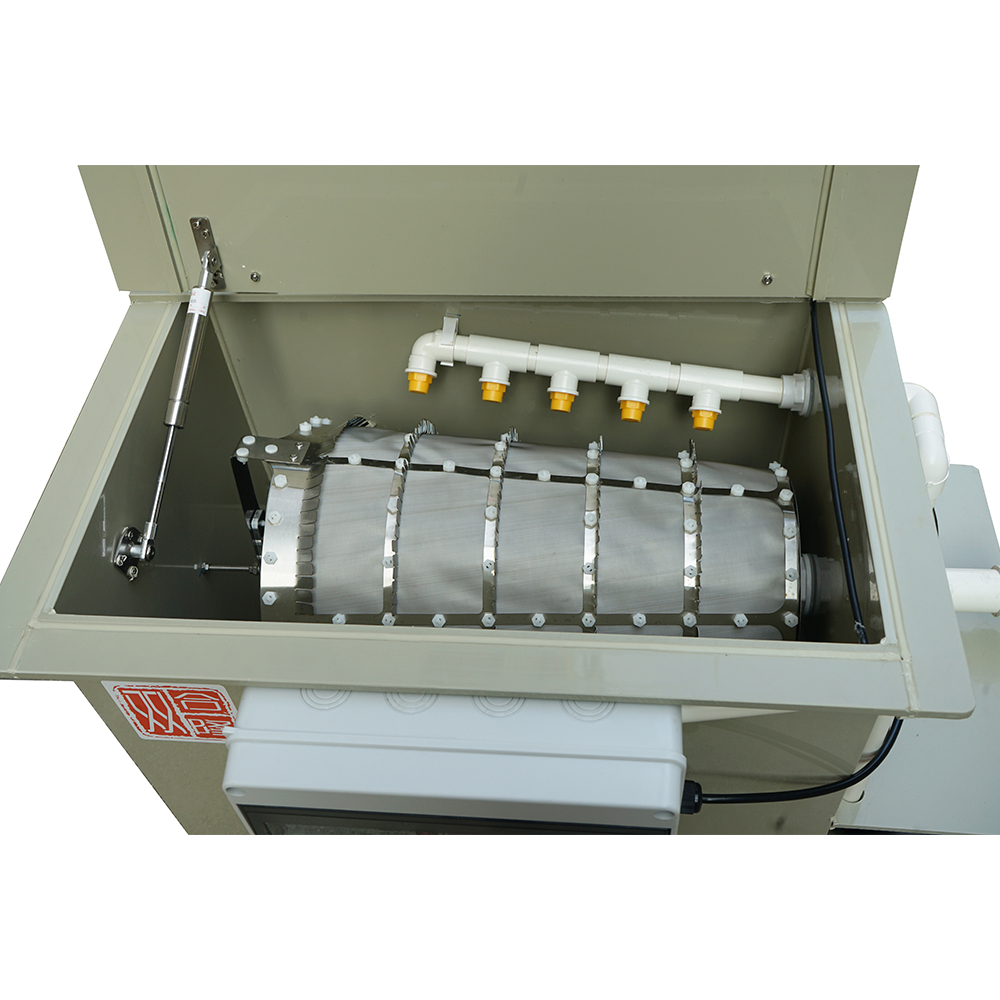 This new type of centrifugal microfilter addresses the pain points right from the source of polluted water quality. It utilizes the kinetic energy of water flow to drive the drum, equipped with an 800-mesh (15-micron) stainless steel filter screen, to rotate at high speed, retaining the dirt within the drum and flinging out the clean water. Paired with an auxiliary sterilization lamp, it can kill bacteria while purifying the water. Water passes through 15-micron small holes and contacts air, significantly increasing the water body's oxygen capacity, creating a more suitable living environment for aquatic life.