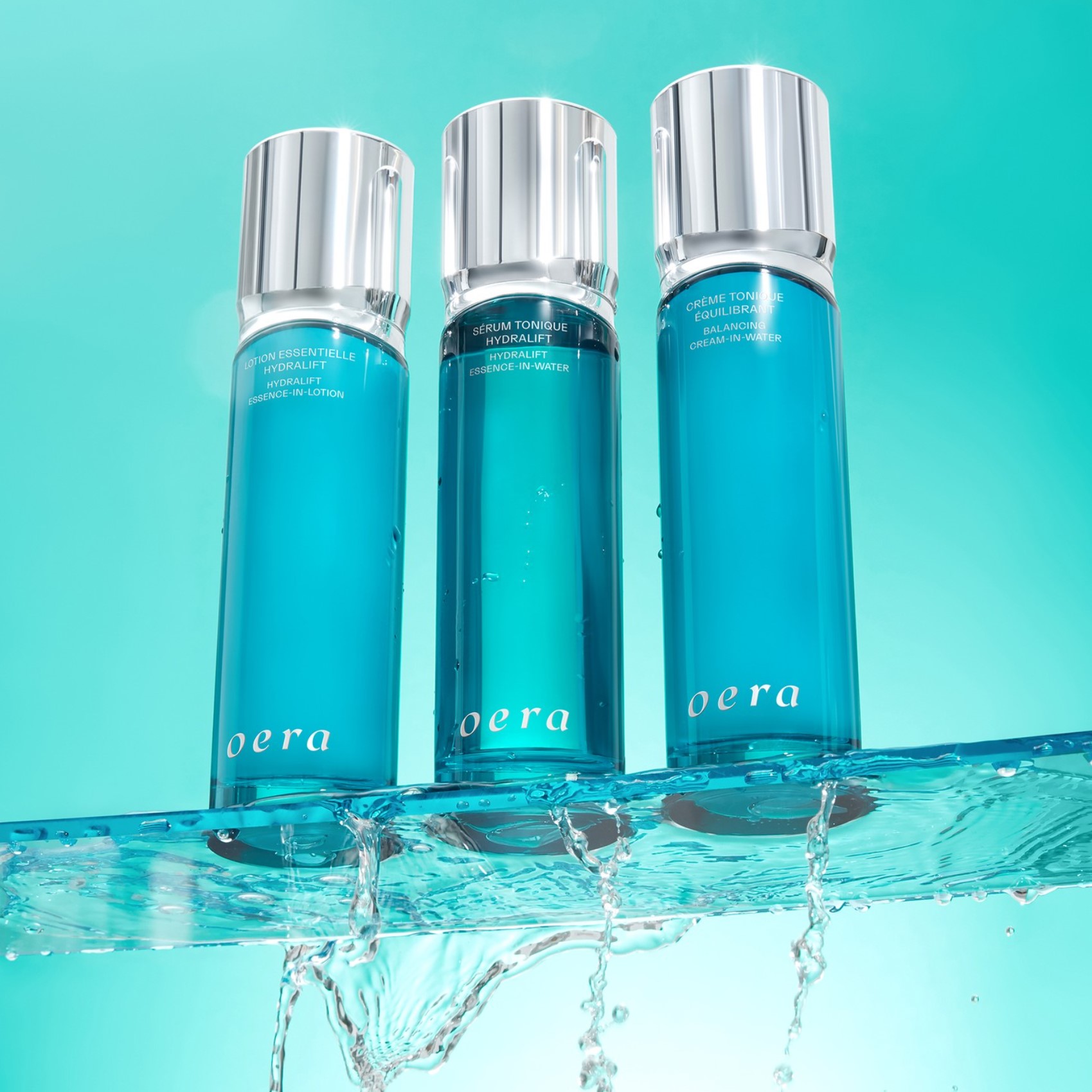 The materials and finishes are meant to complement this quiet balance. The bottles are cool to the touch, with a weight that gives them grounding. The higher-end pieces have soft metallics submerged into glossy capsules, like high-tech vessels for the precious elixirs they contain.