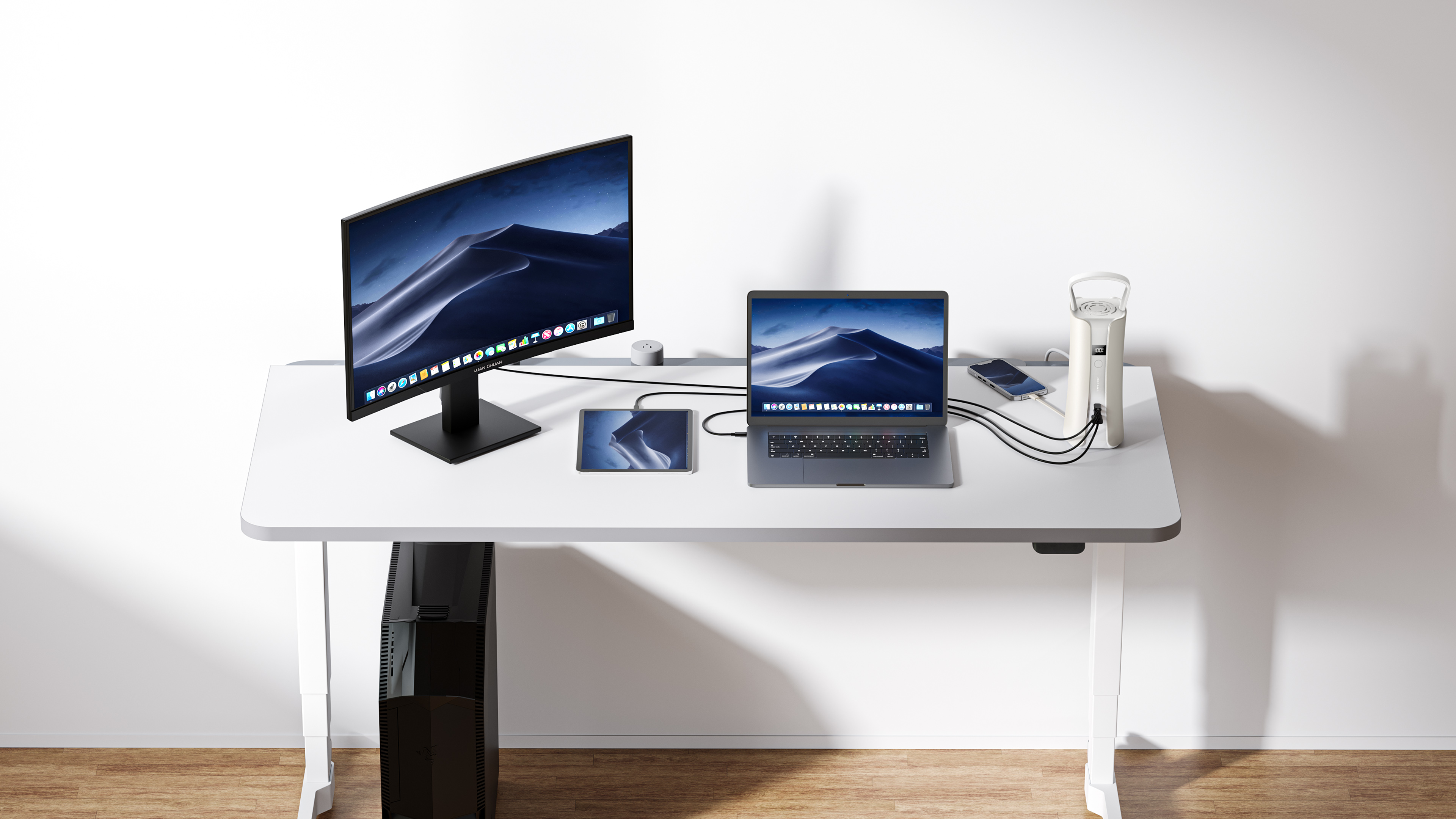 It is compatible with a variety of devices, providing power not only for electrical height adjustable desks in the same series but also for laptops, tablets, smartphones, and other devices. Its multiple charging ports design allows users to charge multiple devices simultaneously, offering convenience and greatly expanding its range of applications.