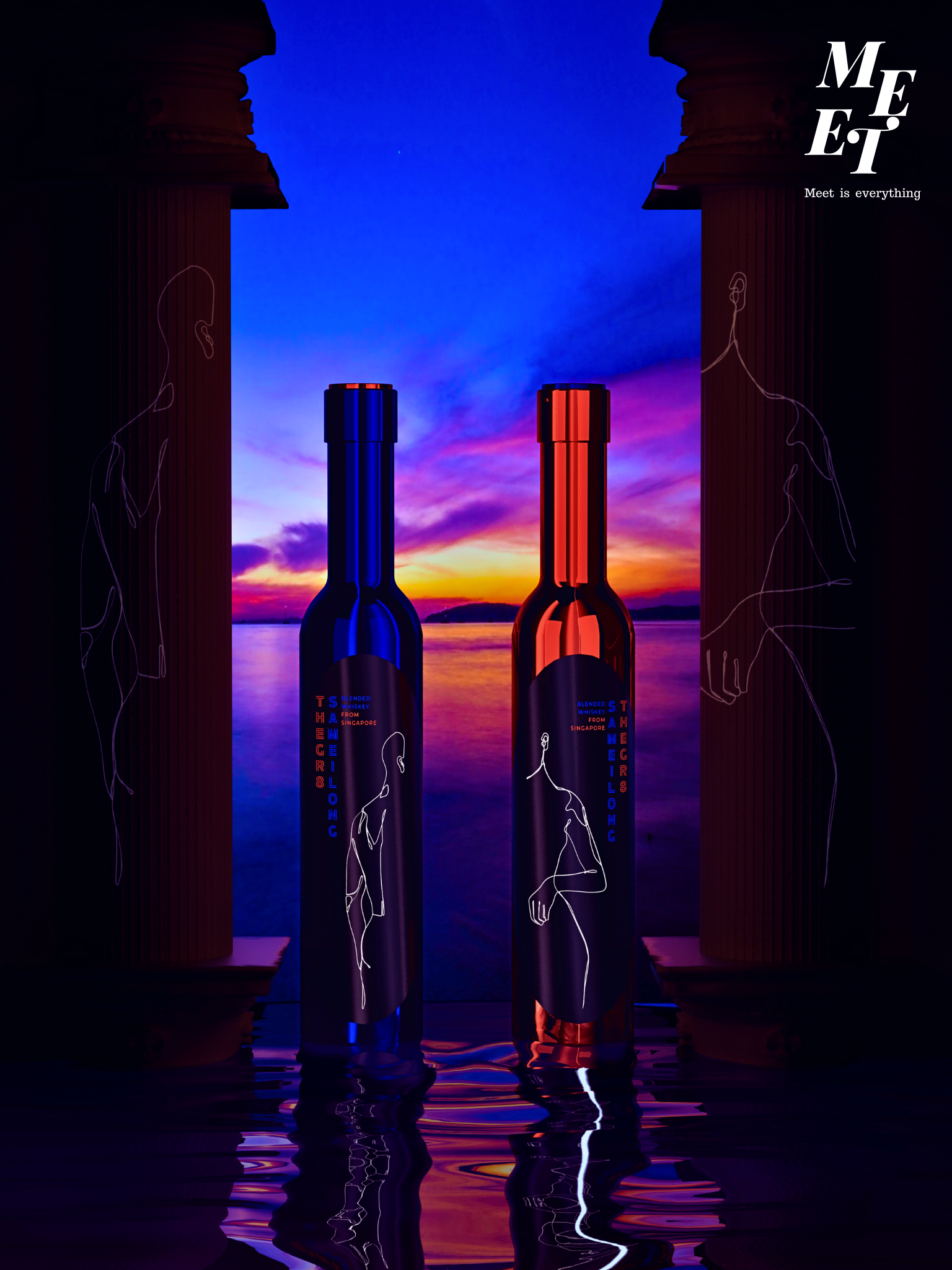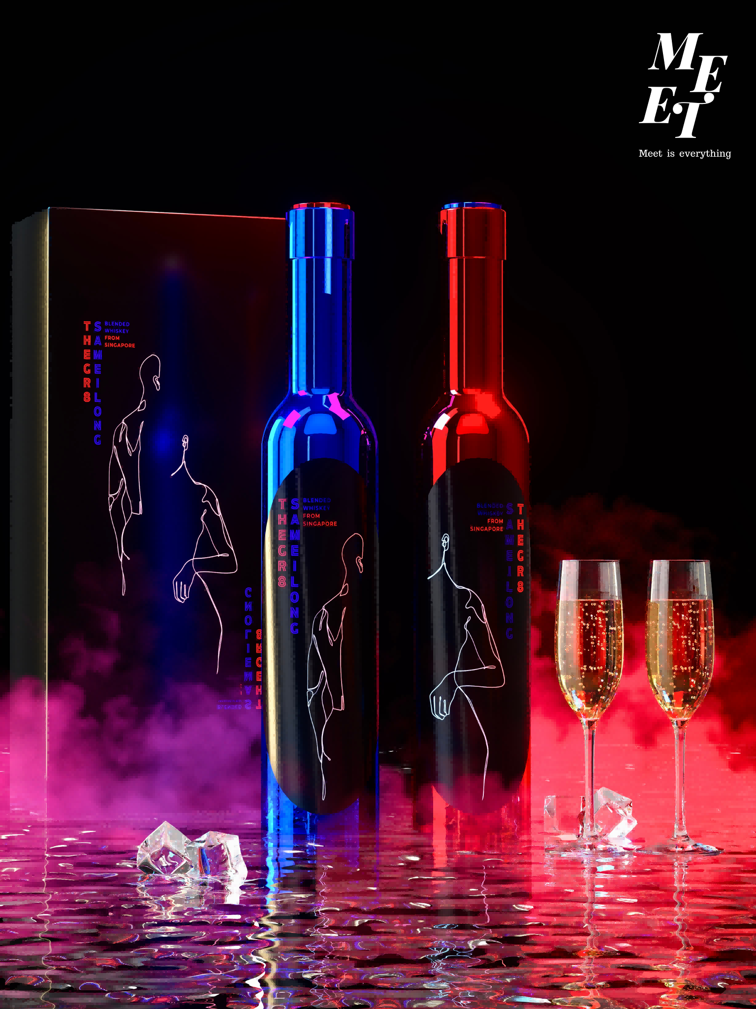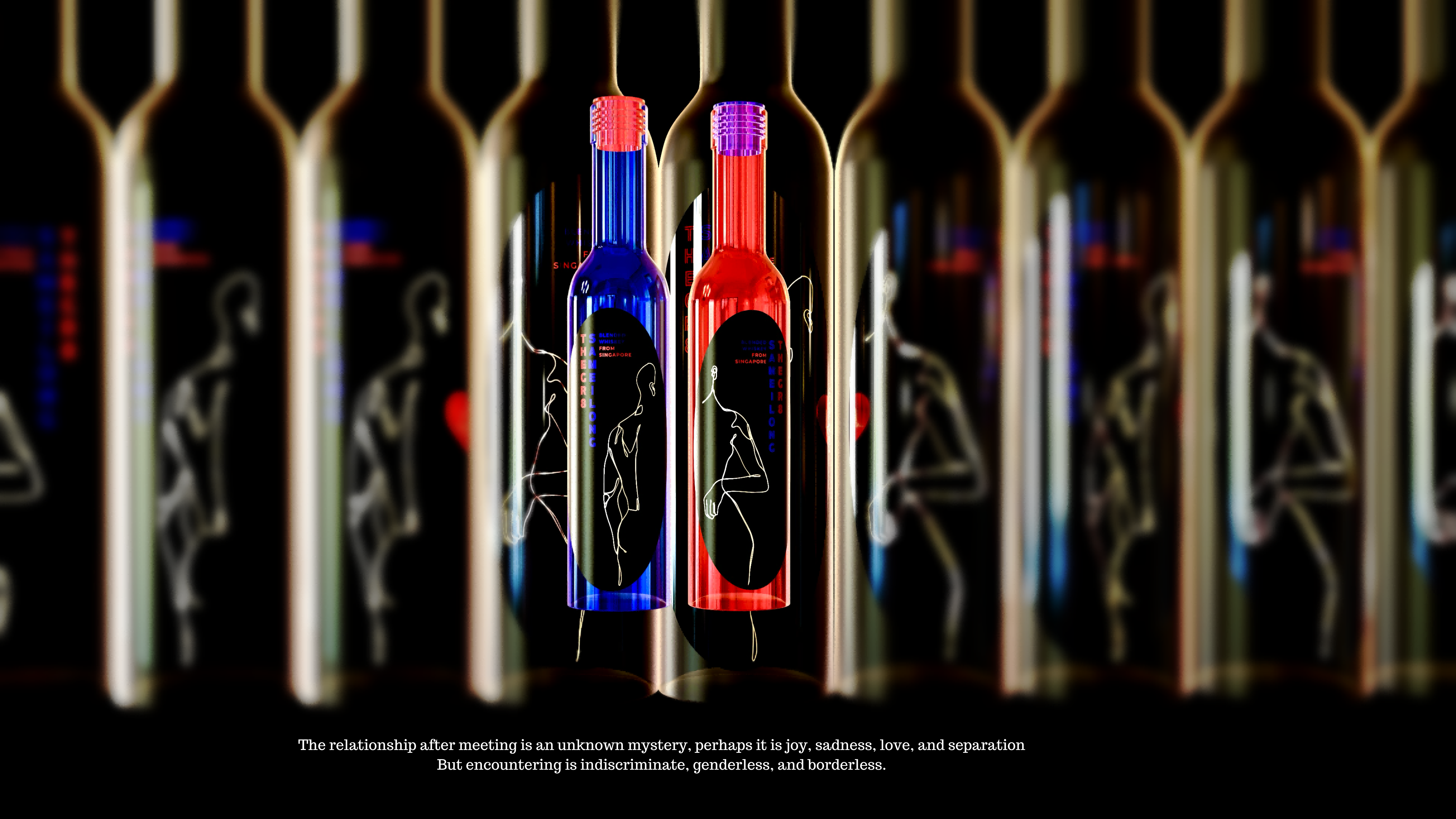 Inspired by urban elements, Meet is designed for modern men and women. The packages are available in two colors, red for women and blue for men, which look so charming like flashing neon lights. The bottle is crafted from modernist electroplating coated glass which keeps a steady level of quality and gives it a stylish look. As shown in the label, a man and a woman are drawn in simple lines. Supported by the heat-sensitive technology, the ECG patterns just come out as temperature rises. This design undoubtedly enhances the interacting and interesting elements of the product, just like a man and a woman are meeting each other in city, which is quite appealing and memorable. Meet is not just a wine, but a string of new intercourse experience. On any occasion, it puts up a bridge for people. The designer portrays the male and female characters as a third person and gets the creative idea started, while user advances the story plot. The special creative idea and intercourse with user create a life story together that delivers a more abundant emotional expression. While enjoying the moment of meeting, we try to identify the close relation and sympathy of different personalities.