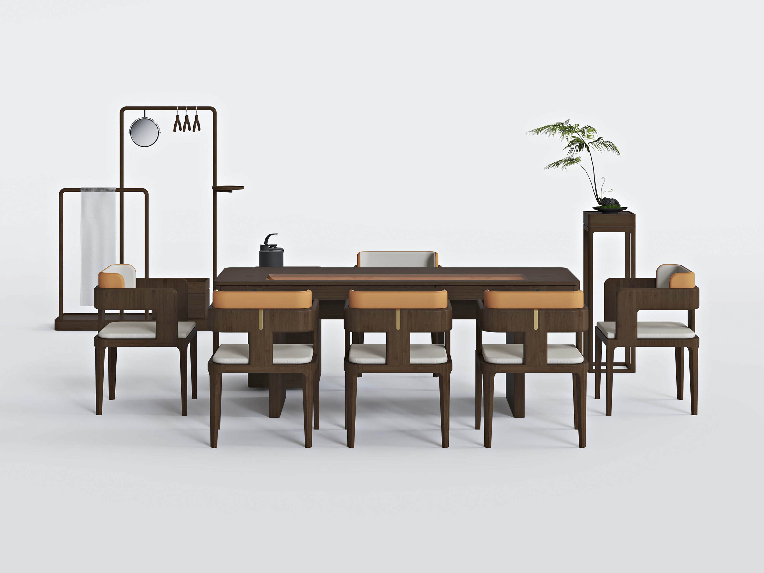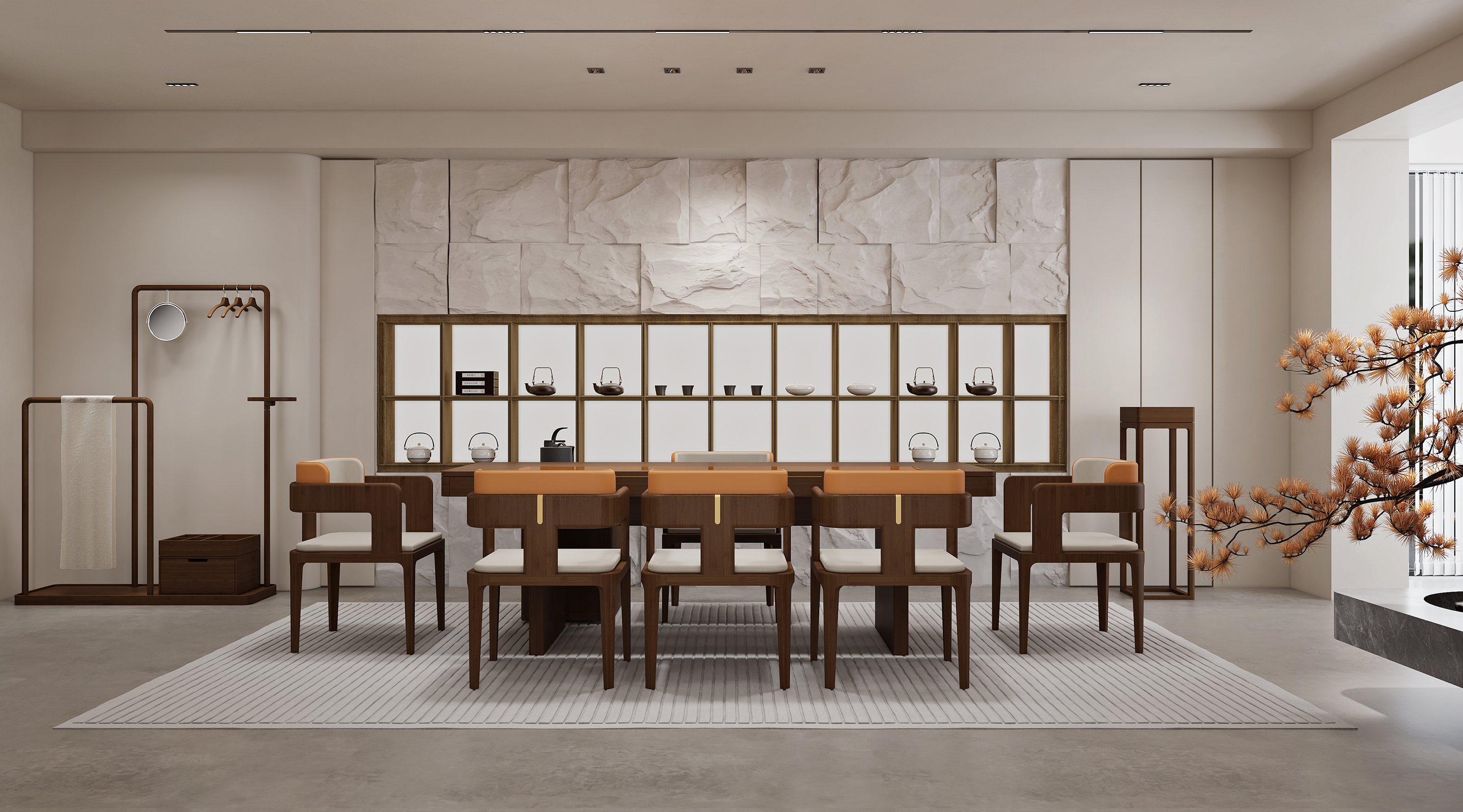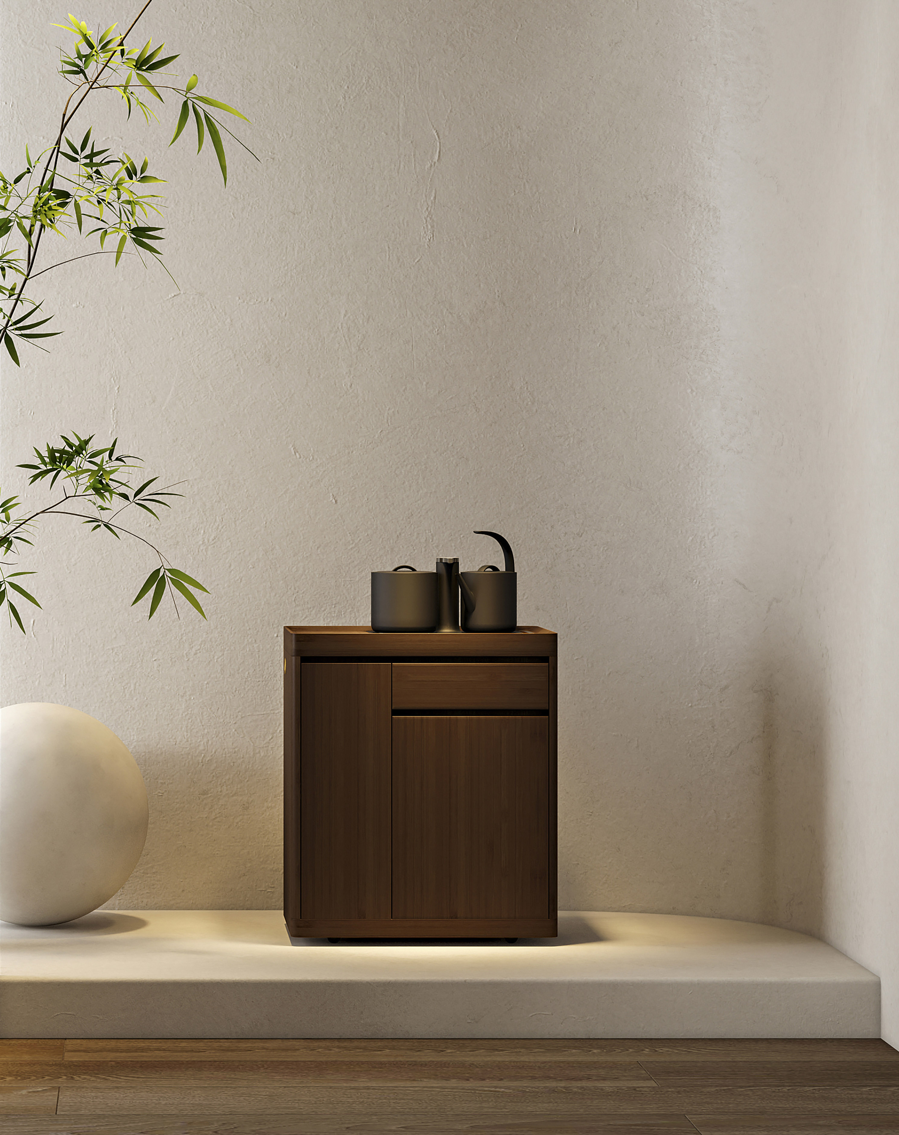 The Zhan Cheng Series is a versatile tea table and chair combination suitable for both commercial spaces and home living. The series includes a tea table, tea chairs, tea cart, coat rack, tea stools, and a flower stand. Crafted from processed by bamboo laminated lumber., the Zhan Cheng Series offers greater stability than solid wood, is easily processed, cost-effective, has stronger regenerative capabilities, and is more environmentally friendly. The products in the Zhan Cheng Series maintain a strict moisture content between 10-12°, employing traditional Chinese mortise and tenon craftsmanship to provide a certain degree of flexibility in the joints for added stability. The series embraces a minimalist aesthetic with ergonomic considerations, featuring a detachable design aimed at creating a tea table and chair combination that transcends any specific style limitations while offering users convenience and comfort. The entire series incorporates features such as drawer storage, concealed tea residue bins, USB interfaces, etc., to keep the tabletop clean and enhance the usability of the products.