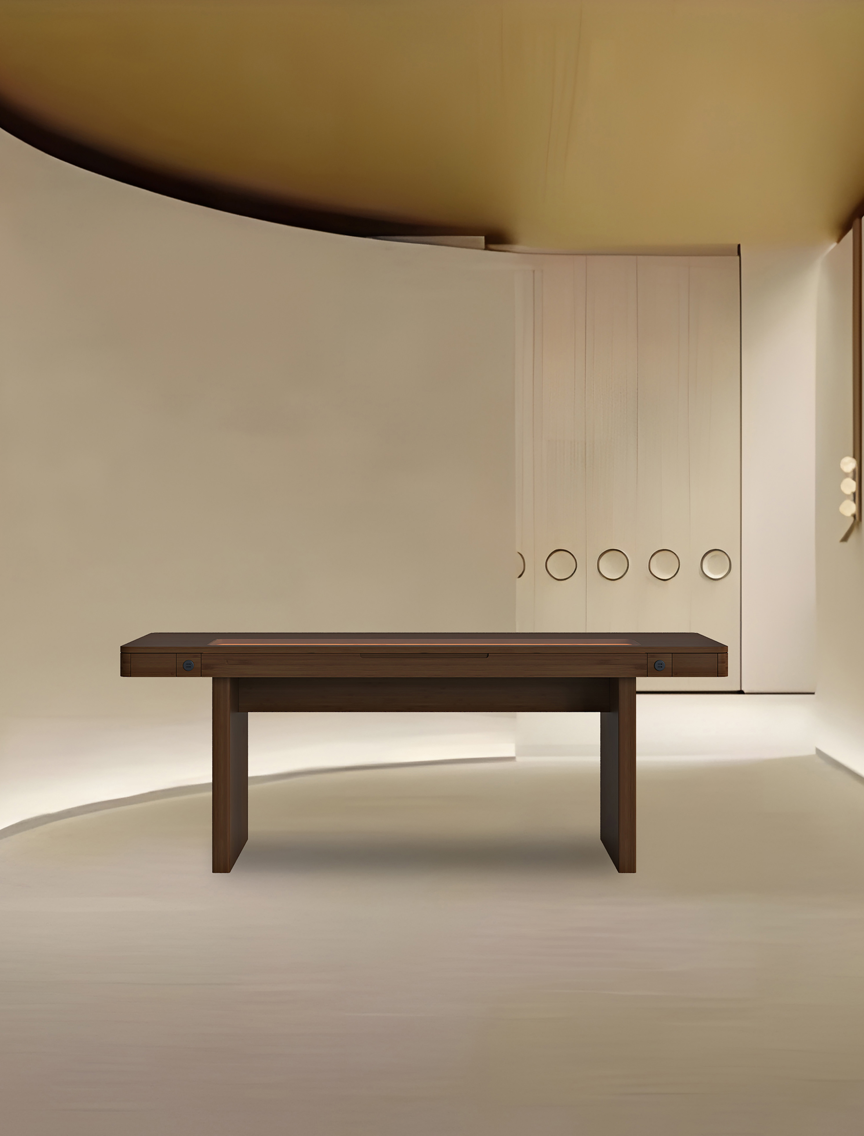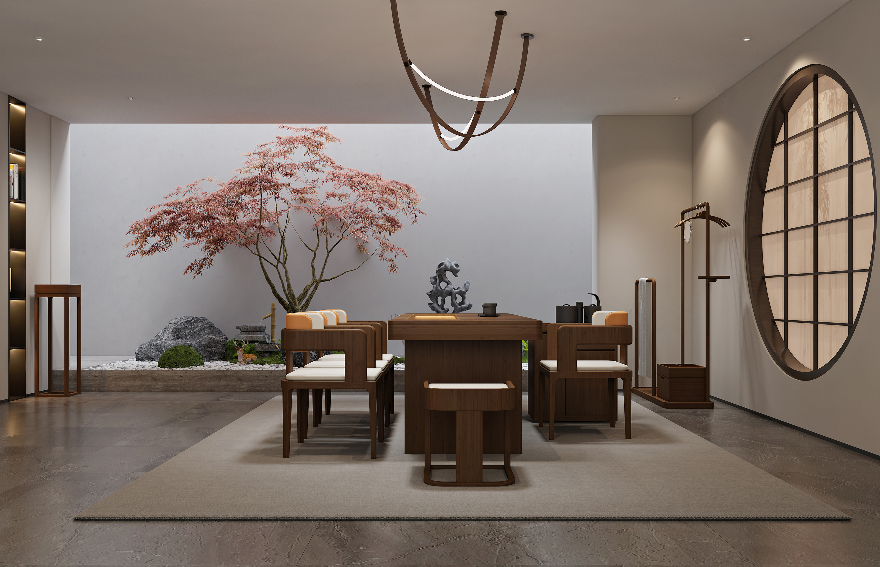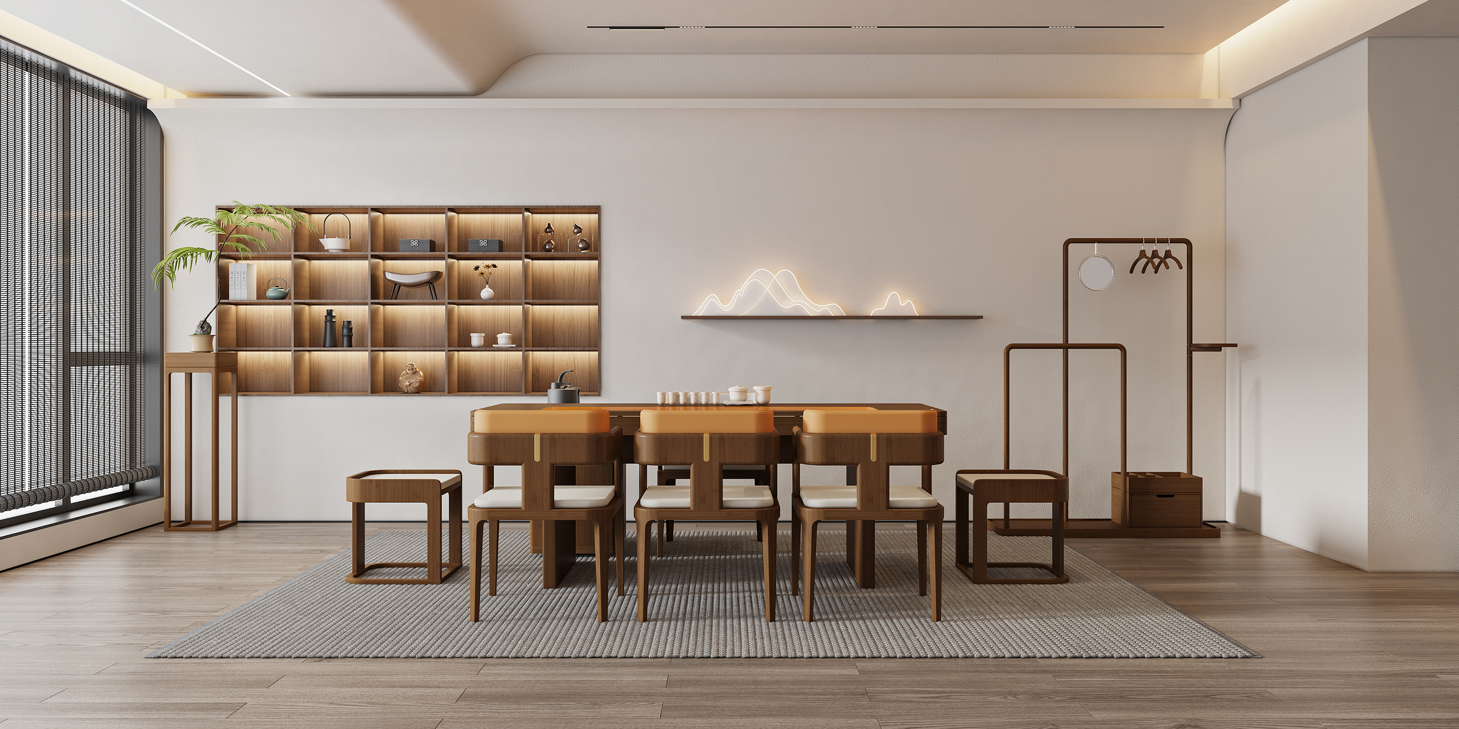 The Zhan Cheng Series is a versatile tea table and chair combination suitable for both commercial spaces and home living. The series includes a tea table, tea chairs, tea cart, coat rack, tea stools, and a flower stand. Crafted from processed by bamboo laminated lumber., the Zhan Cheng Series offers greater stability than solid wood, is easily processed, cost-effective, has stronger regenerative capabilities, and is more environmentally friendly. The products in the Zhan Cheng Series maintain a strict moisture content between 10-12°, employing traditional Chinese mortise and tenon craftsmanship to provide a certain degree of flexibility in the joints for added stability. The series embraces a minimalist aesthetic with ergonomic considerations, featuring a detachable design aimed at creating a tea table and chair combination that transcends any specific style limitations while offering users convenience and comfort. The entire series incorporates features such as drawer storage, concealed tea residue bins, USB interfaces, etc., to keep the tabletop clean and enhance the usability of the products.