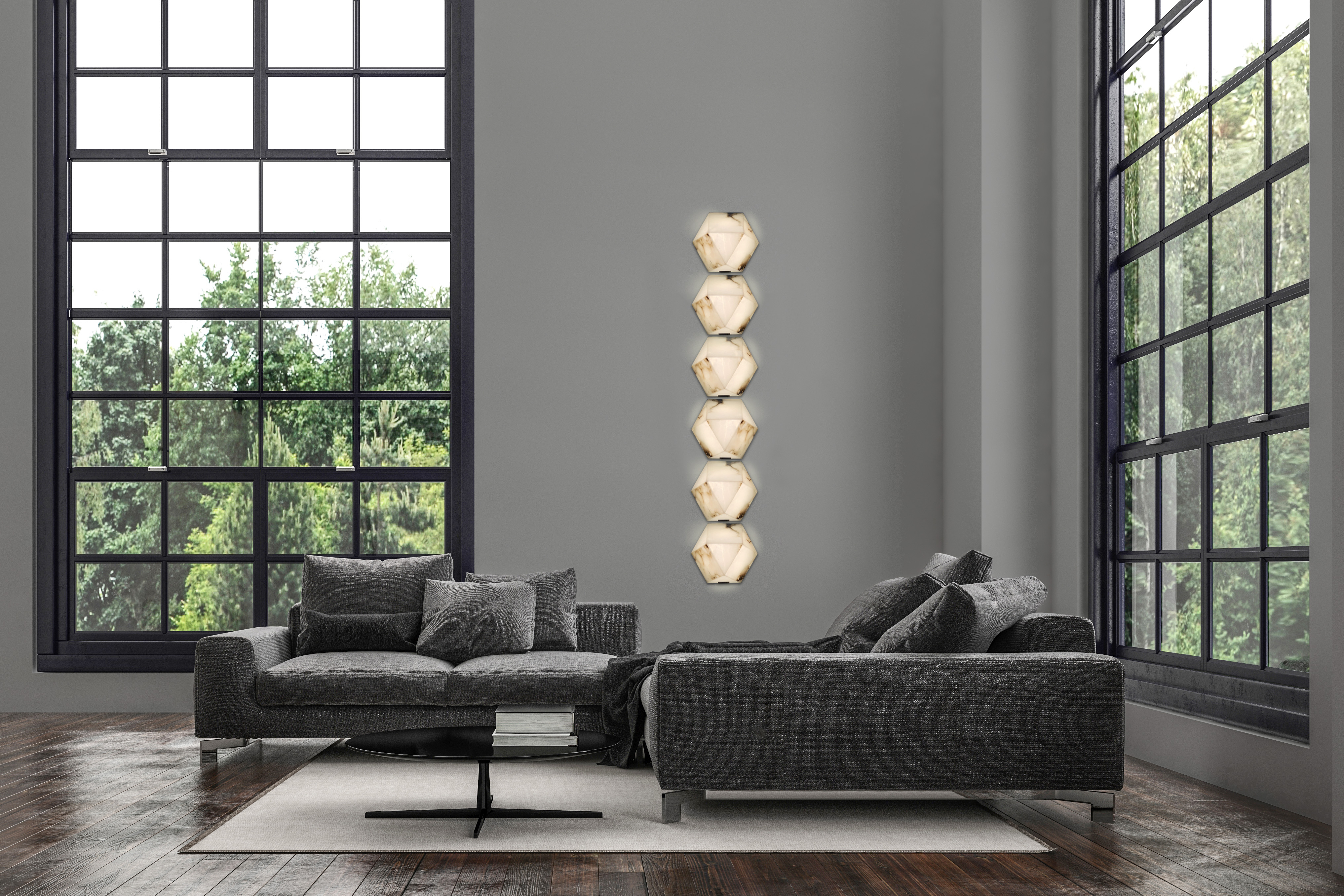Our Étoile light—a masterfully crafted indoor lighting fixture, brings a touch of opulence and sophistication to any space. Carefully constructed out of alabaster, with a blackened steel back-plate, this light transcends the ordinary, creating an ambiance that exudes modern elegance.