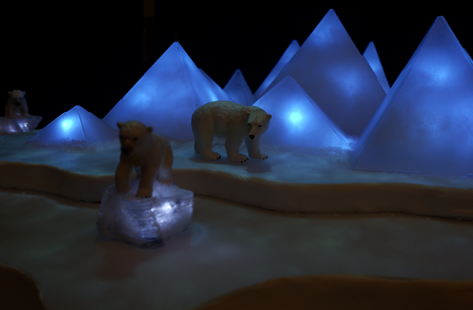 Borealis, an interactive installation, unveils the accelerated melting of glaciers due to global warming. The concept aims to illustrate the environmental impact of thoughtless human actions. It serves as a poignant reminder that individuals must be conscious of the consequences of their destructive behaviors. Borealis prompts reflection and awareness, urging a collective responsibility to address the pressing challenges posed by climate change.