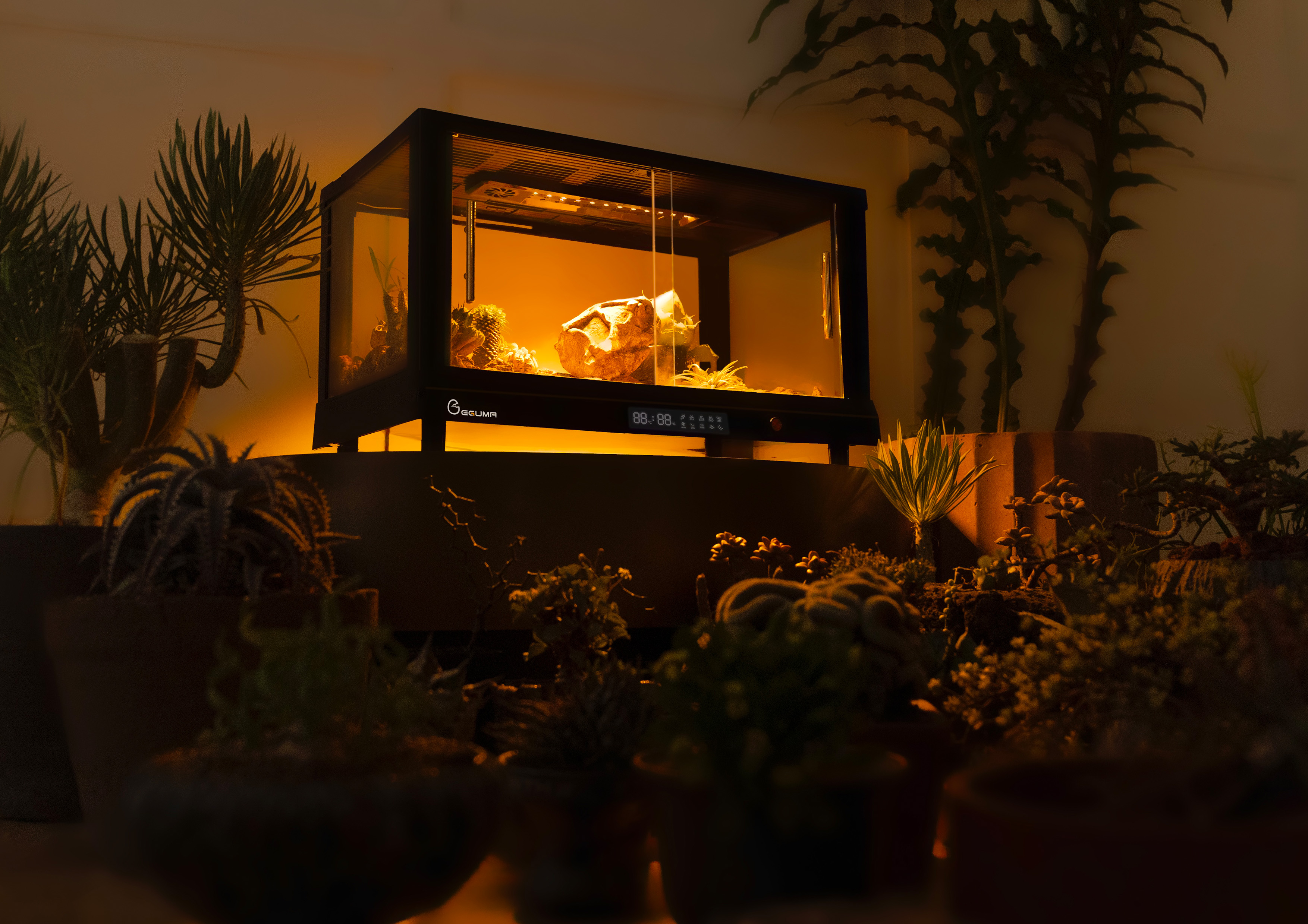The design team has introduced highly flexible Species Care Mode, which enables users to set temperature, light, etc. with one click according to species, maximizing the recreation of the specific natural ecology; users can further adjust each function as needed, to embrace a personalized breeding experience. The advanced LED lighting system offers full spectrum lighting to well satisfy the needs of different species, and the carefully designed airflow system continuously provides gentle fresh air.
